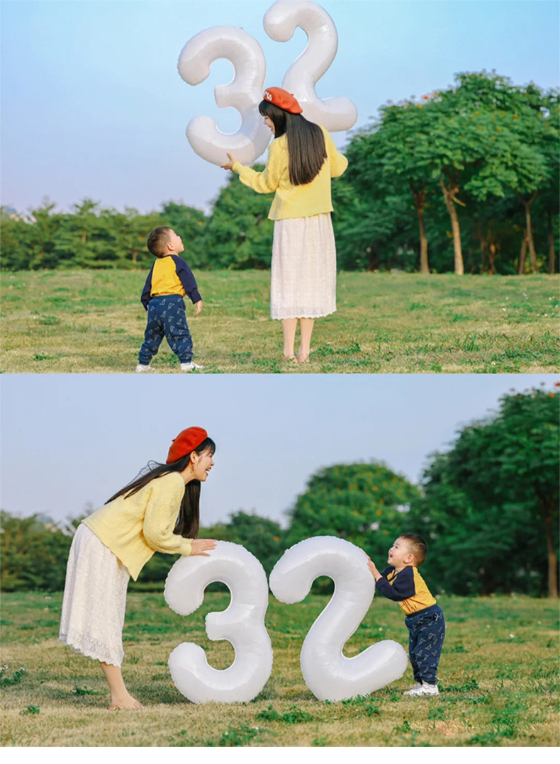 32 인치 화이트 디지털 40 인치 생일 풍선 장식 알루미늄 필름 알루미늄 호일 파티 사진 장면 레이아웃 소품 풍선