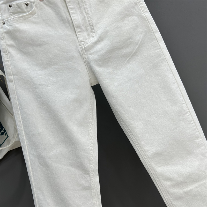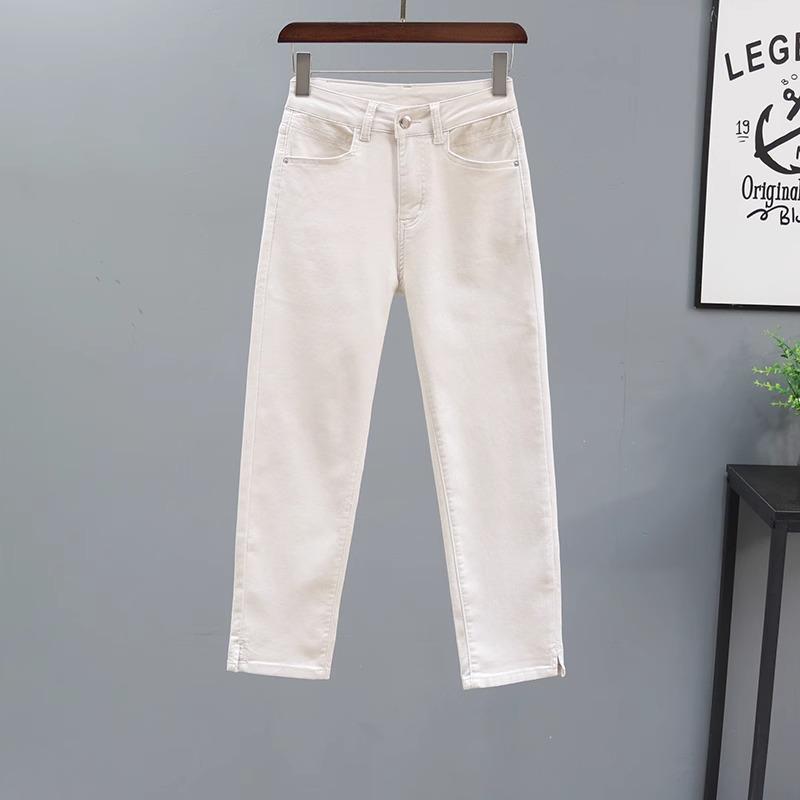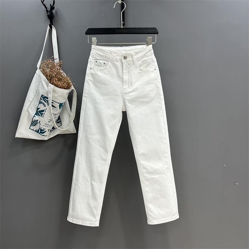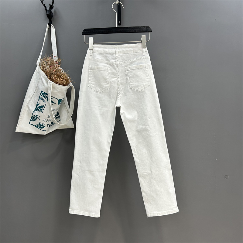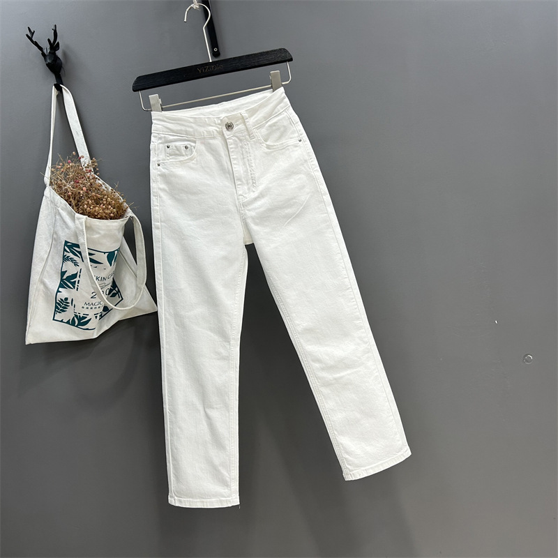 화이트 스트레이트 팬츠 여성용 2026 봄 신상 하이웨이스트 신축성 슬림핏 9부 팬츠 다용도 데님 시가렛 팬츠 여성용스토어 가기