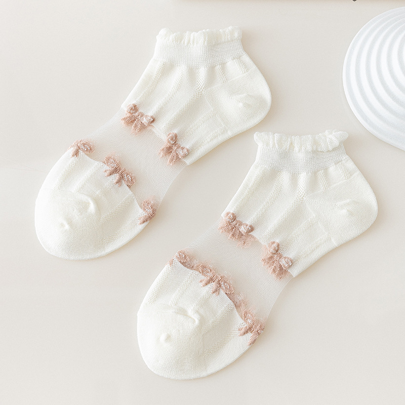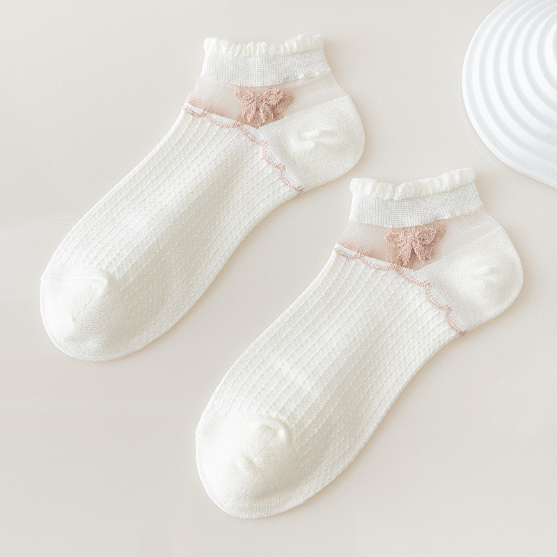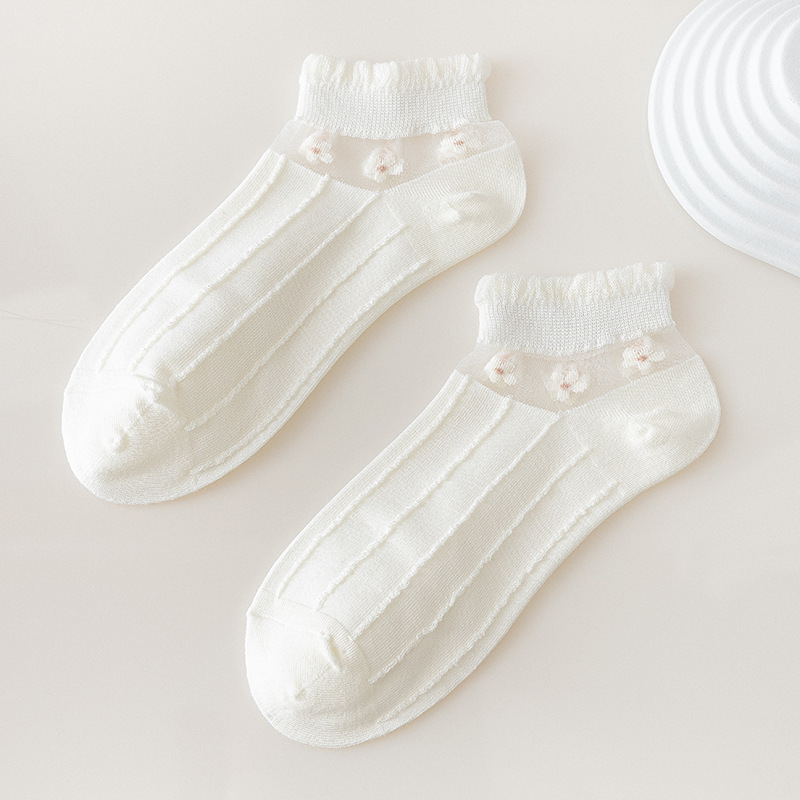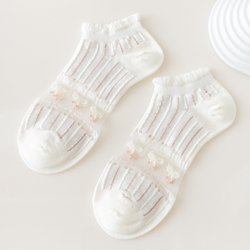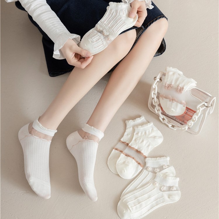 여름 얇은 흰색 양말 여성용 보트 양말 솔리드 컬러 코튼 통기성 얕은 상단 짧은 양말 일본식 버블 입 레이스