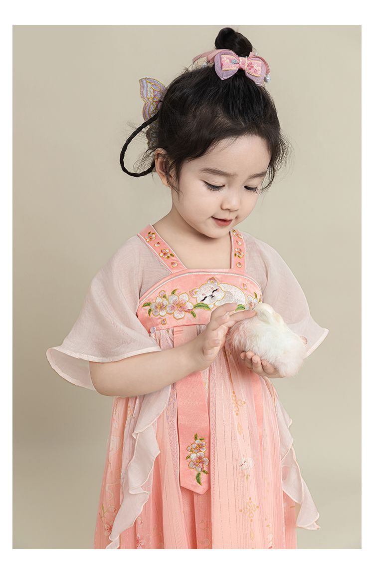 Wuri Boo 소녀 고양이 한푸 원피스 2025 여름 새로운 달콤한 귀여운 텐셀 바느질 국가 스타일 스커트