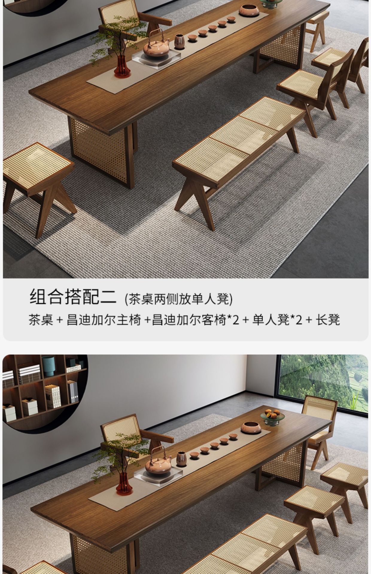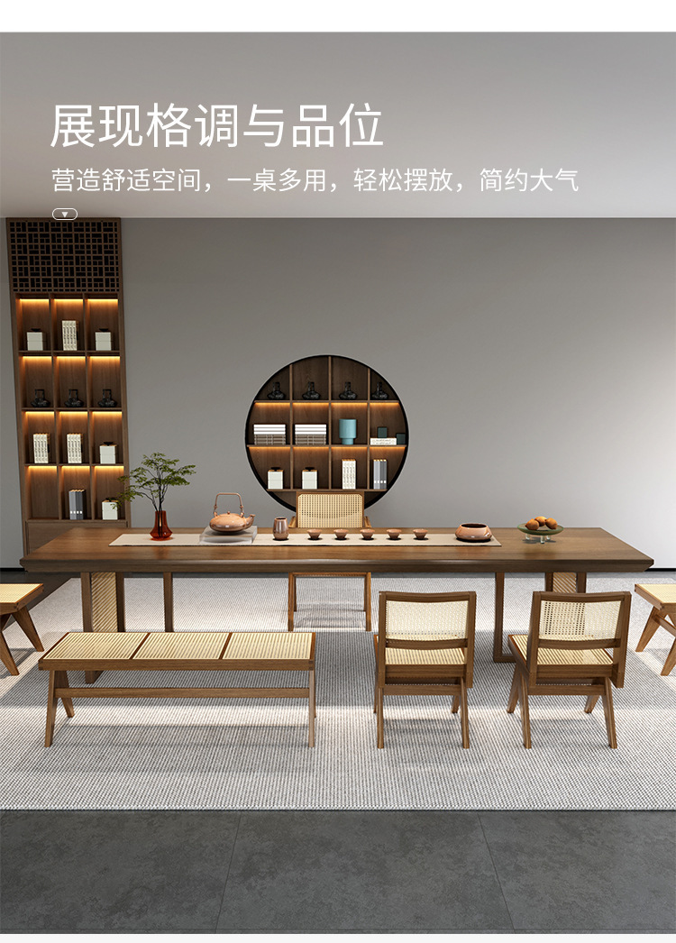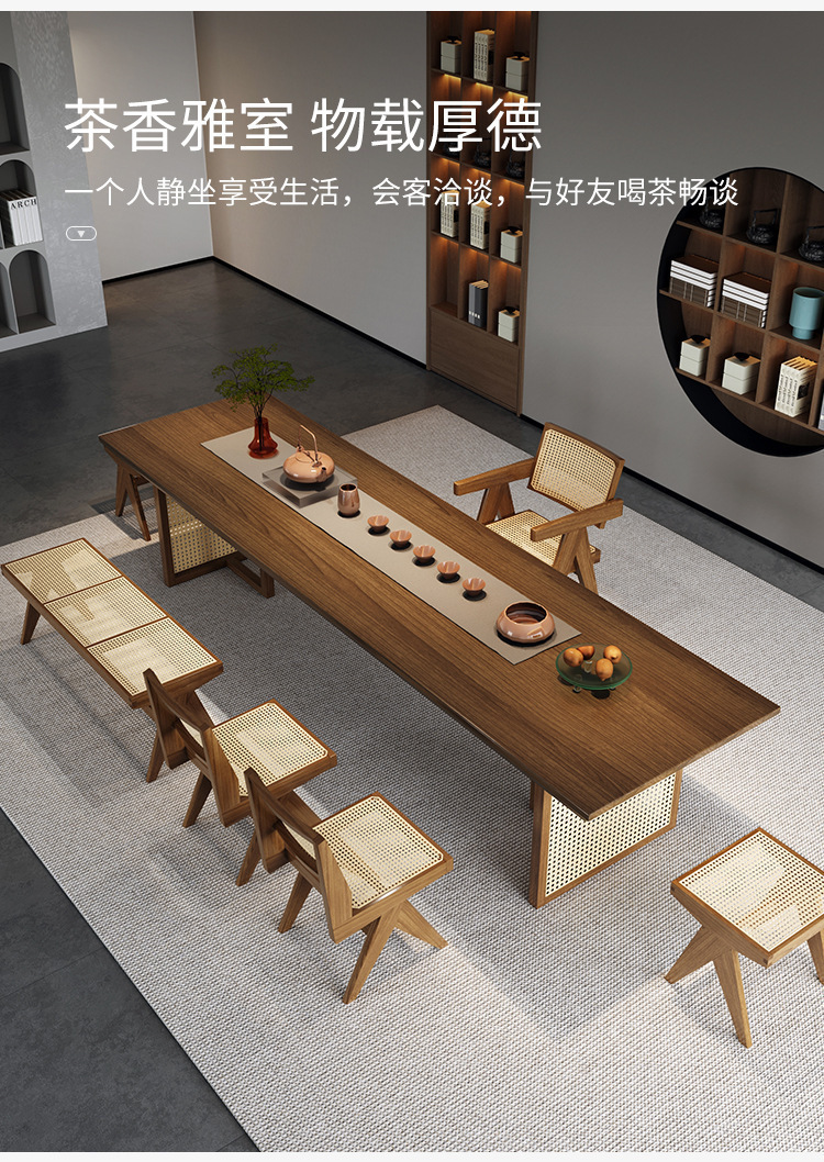 조용한 스타일의 단단한 나무 차 테이블과 의자 조합 새로운 중국 스타일의 큰 접시 차 테이블 간단한 홈 협상 차 테이블 등나무 테이블스토어 가기
