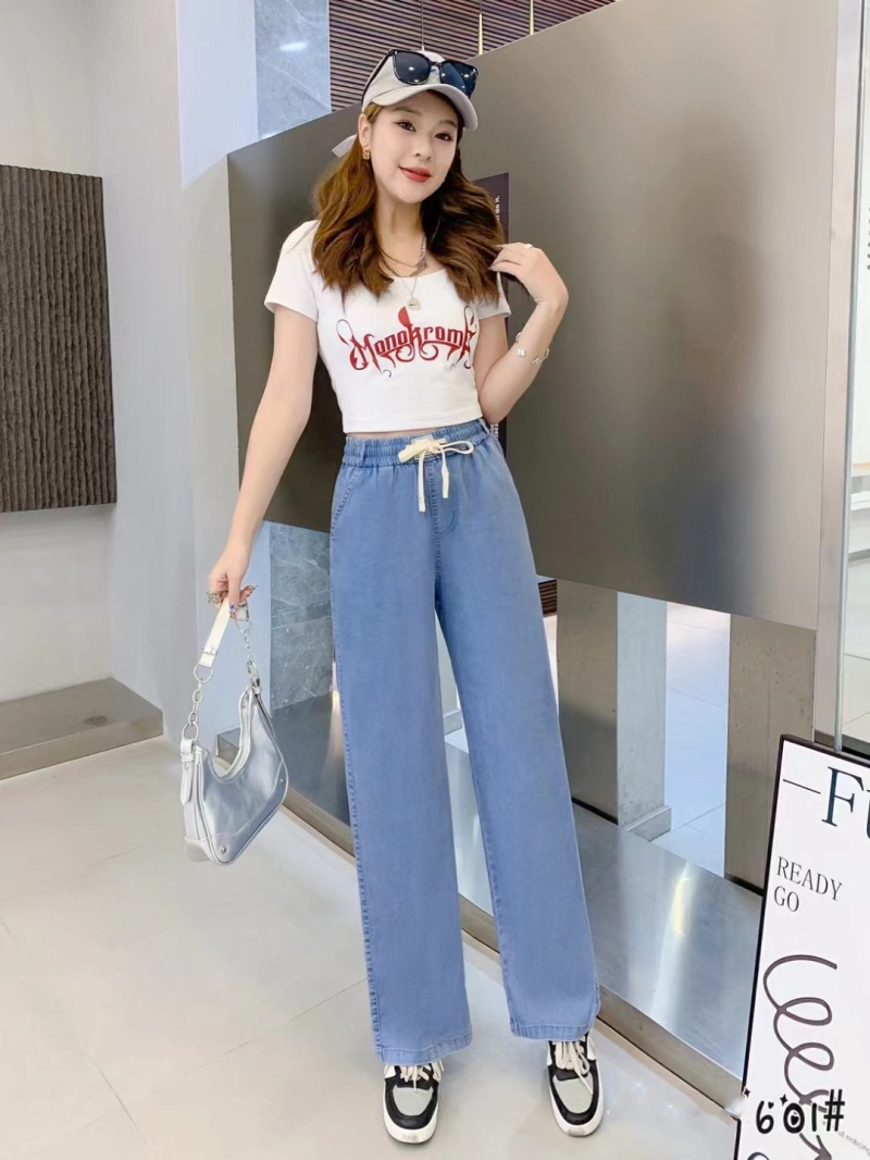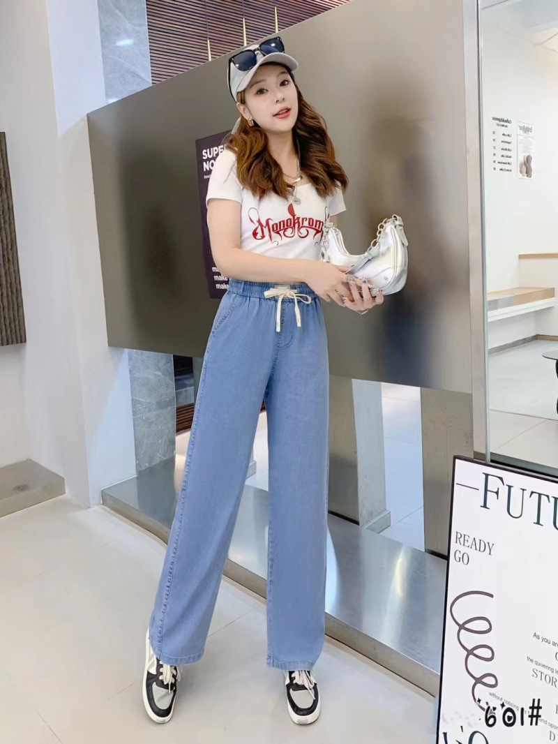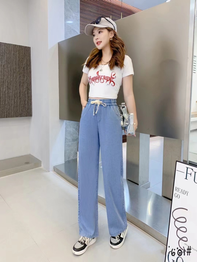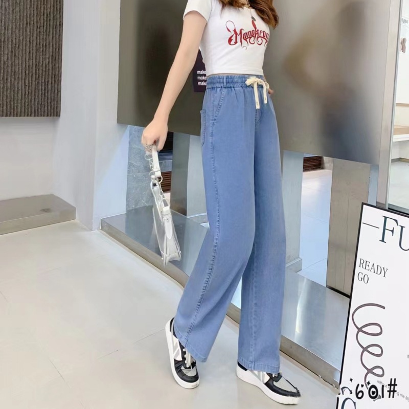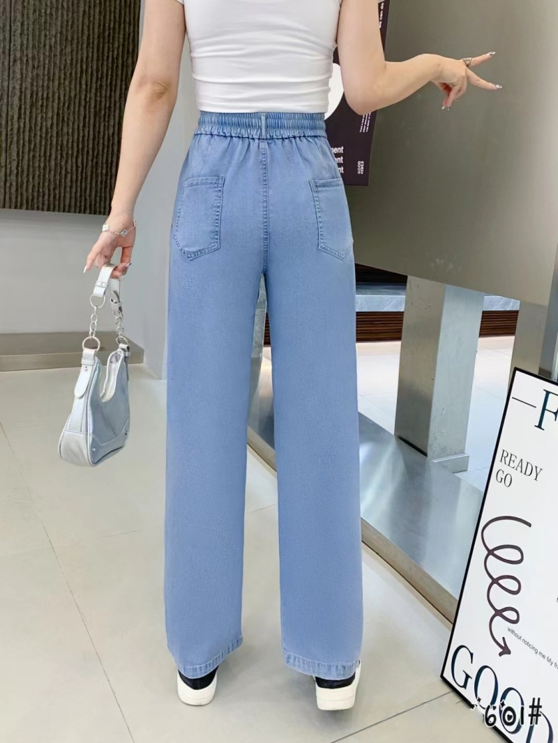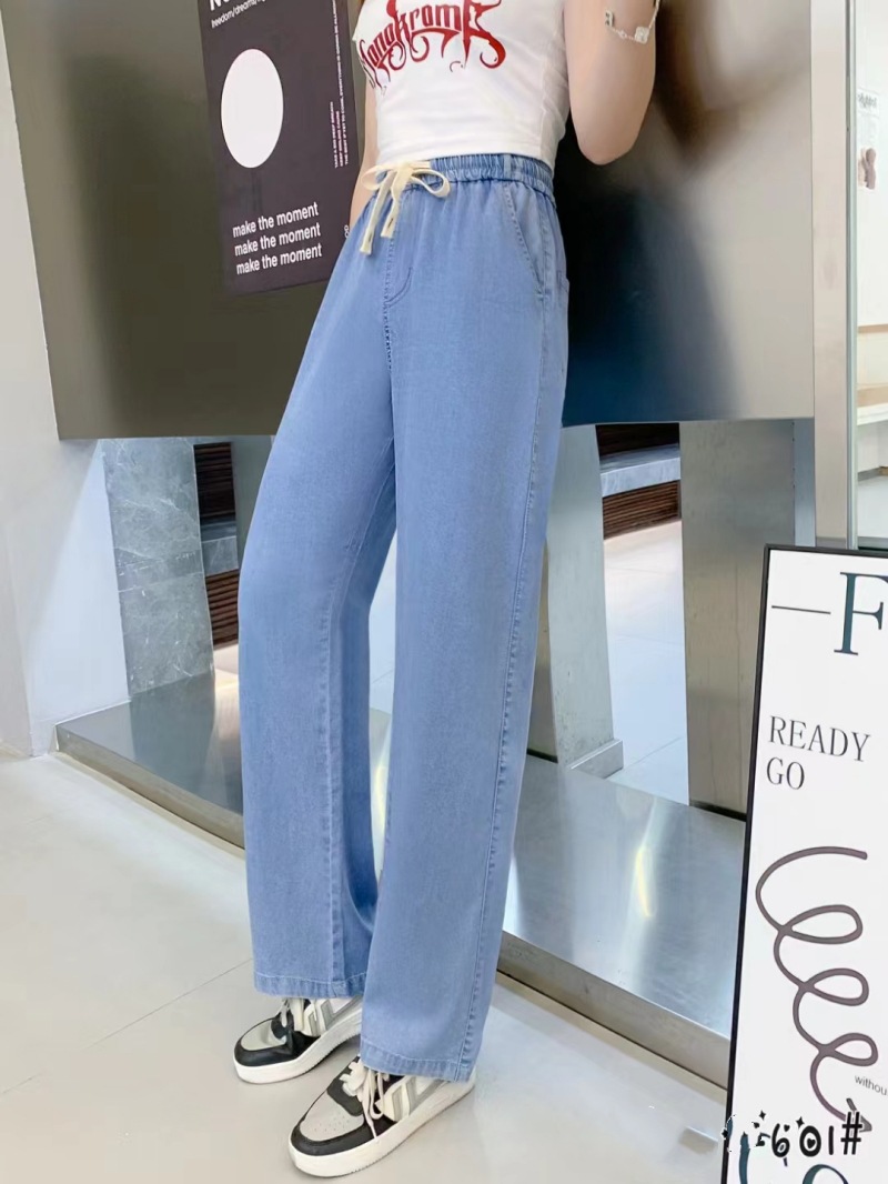 여성용 텐셀 데님 스트레이트 캐주얼 바지 2024 여름 여성용 바지 플러스 사이즈 루즈 슬리밍 드레이프 와이드 레그 팬츠 여성용스토어 가기