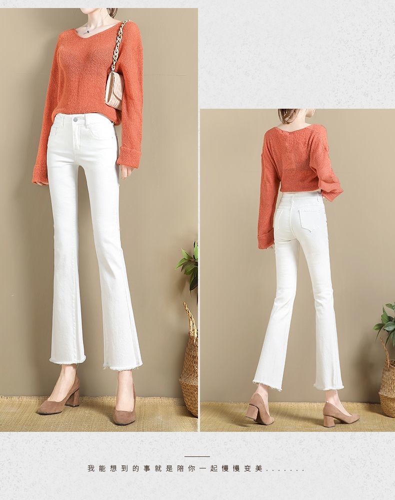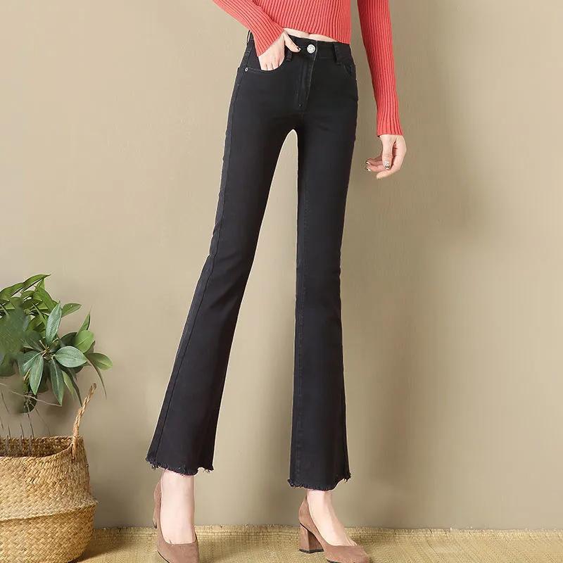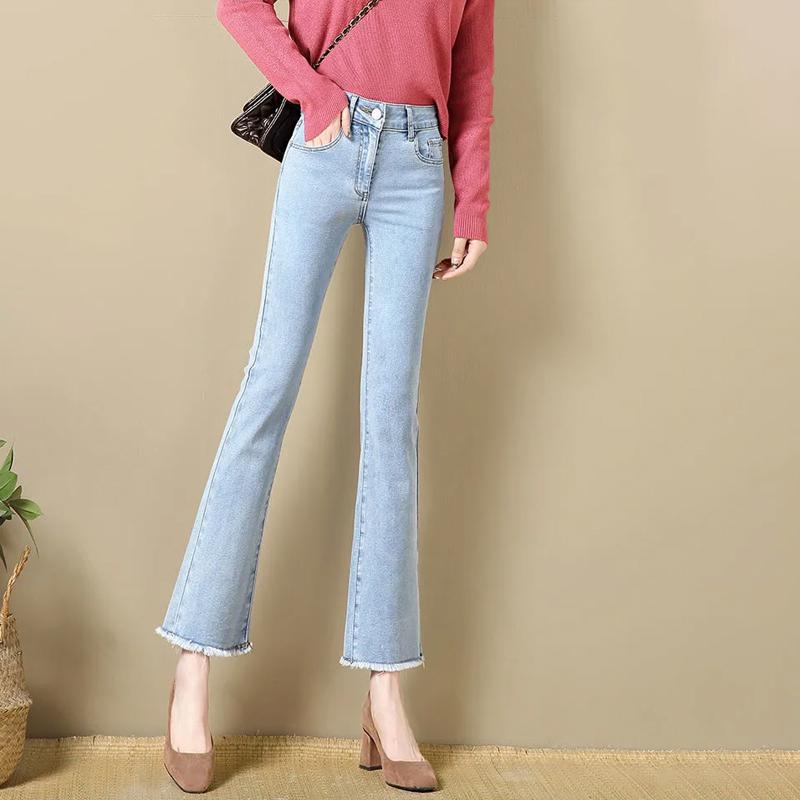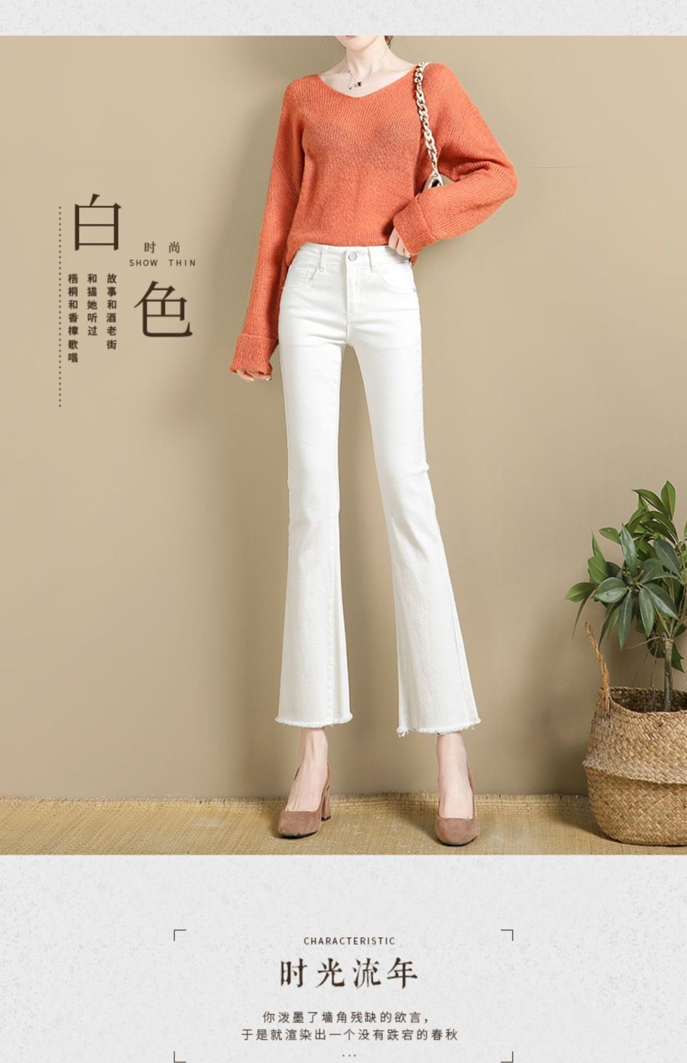 화이트 마이크로 라 청바지 여성의 2024 가을 겨울 기모 높은 허리 높은 슬림 연기 튜브 작은 뿔 청바지스토어 가기