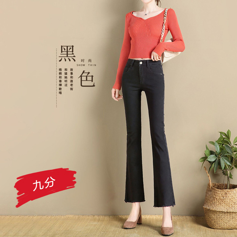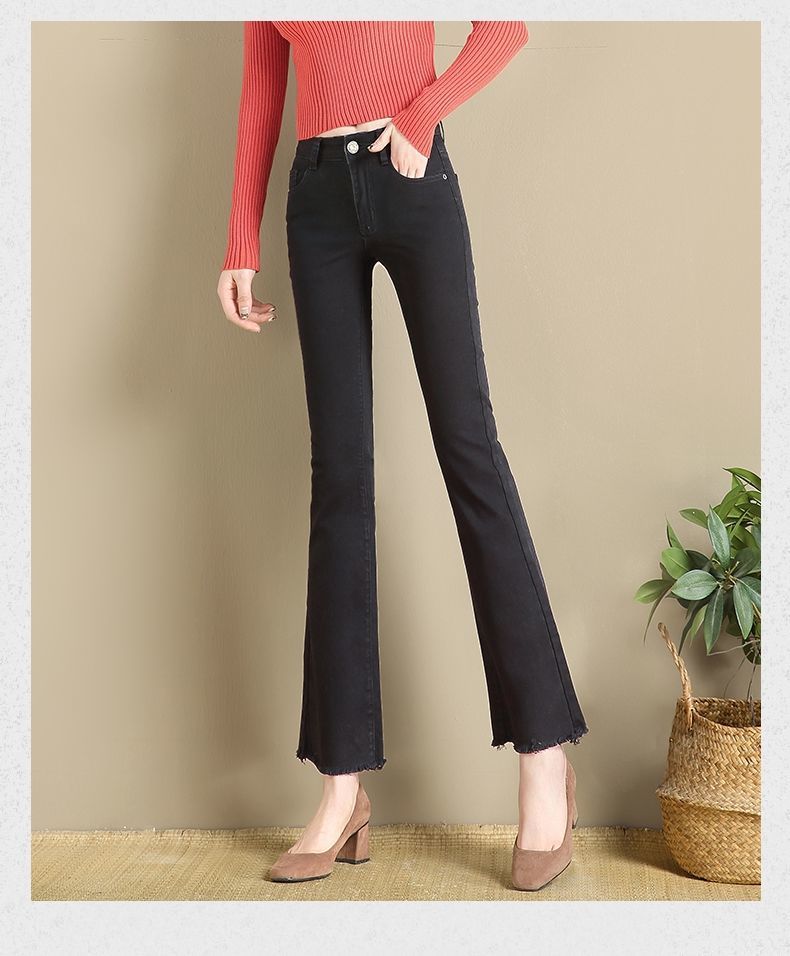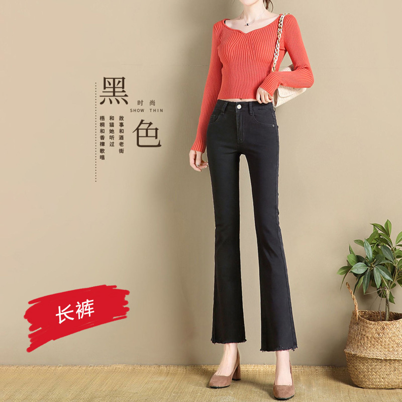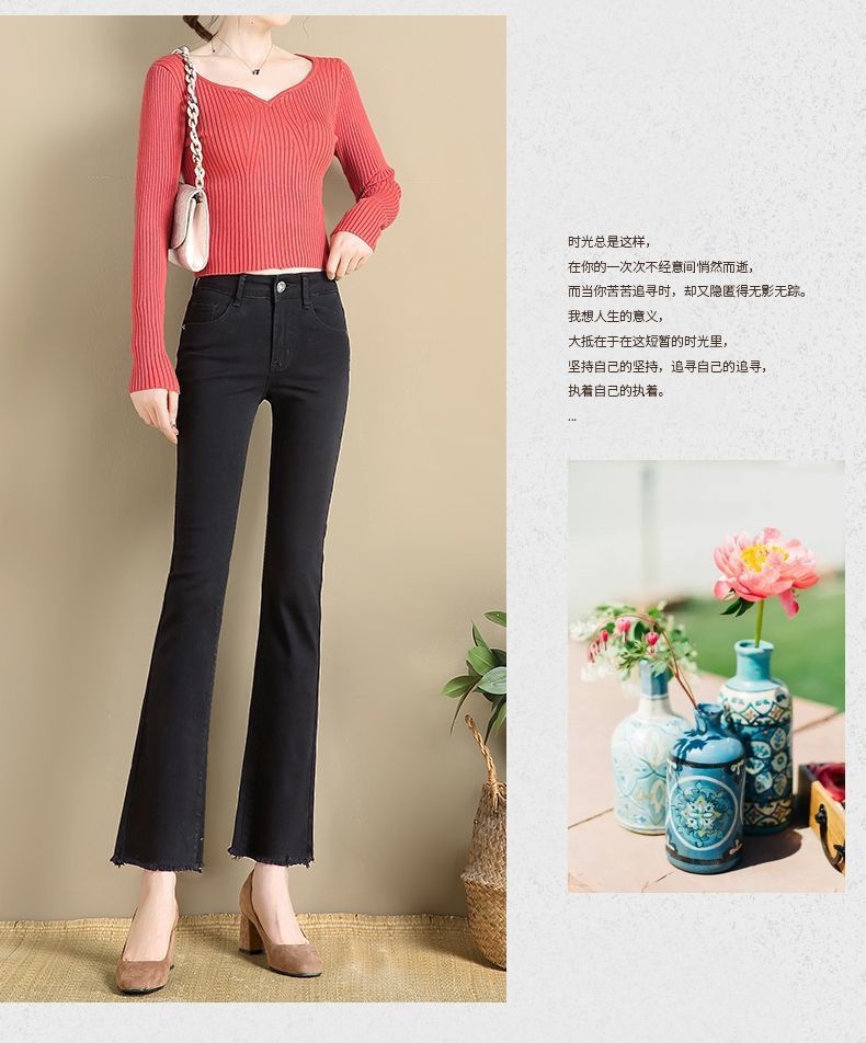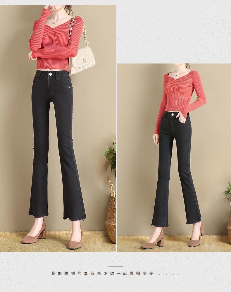 화이트 마이크로 라 청바지 여성의 2024 가을 겨울 기모 높은 허리 높은 슬림 연기 튜브 작은 뿔 청바지스토어 가기