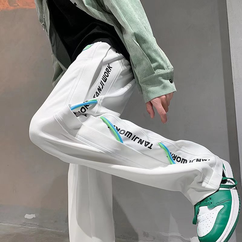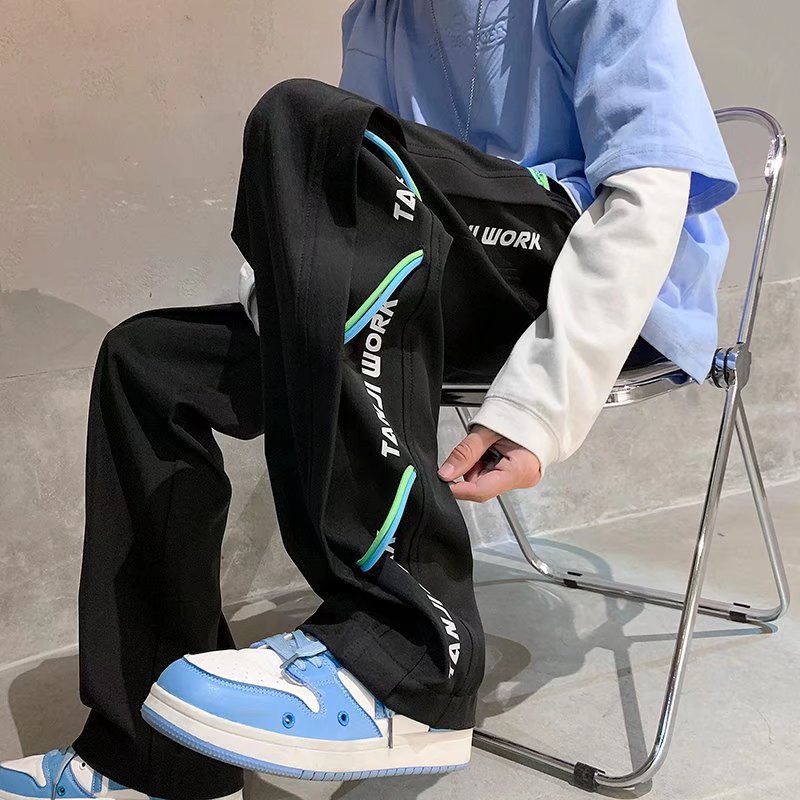 아이스 실크 팬츠 남성용 트렌디 브랜드 2022 여름 얇은 디자인 센스 스트레이트 튜브 루즈 센스 포인트 하이 스트리트 스포츠 바지