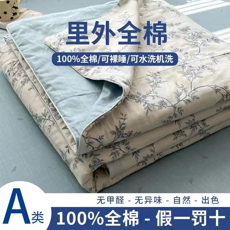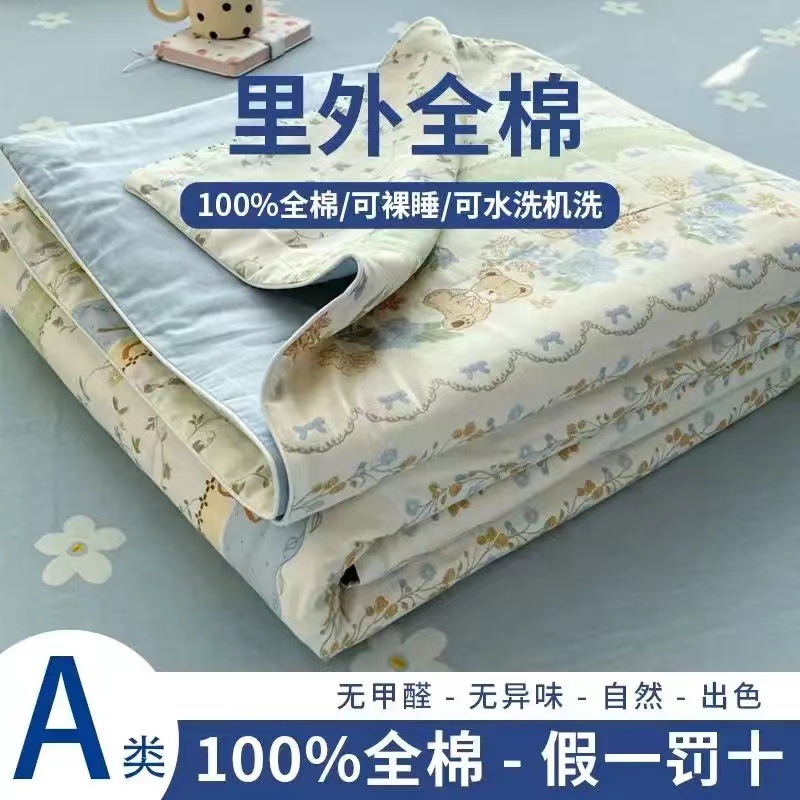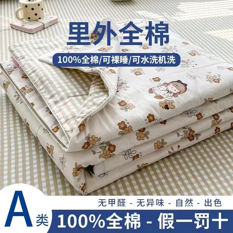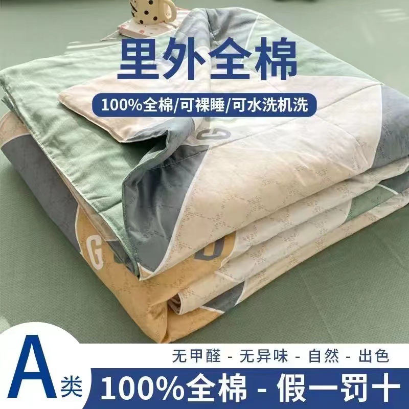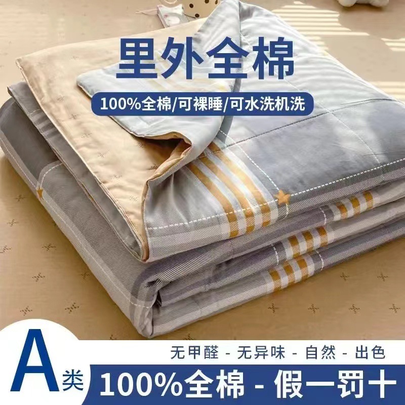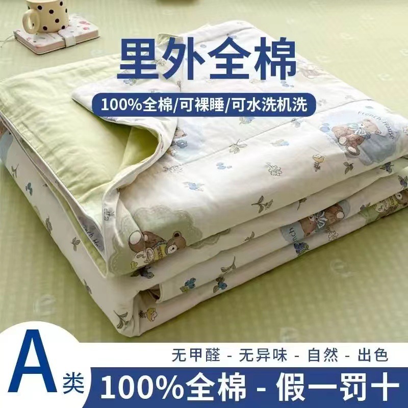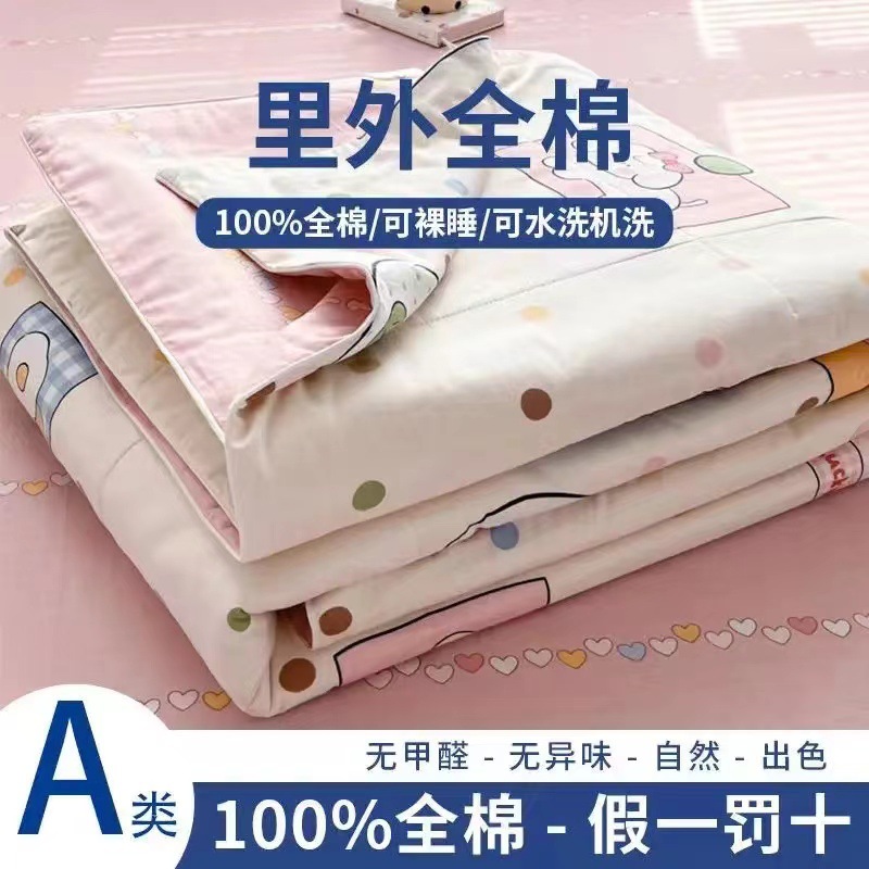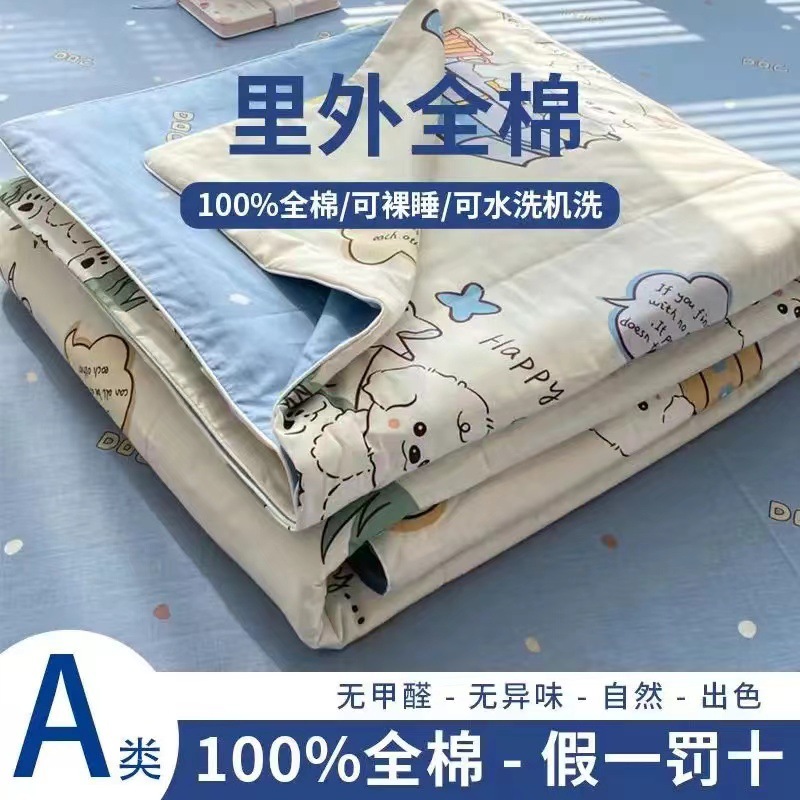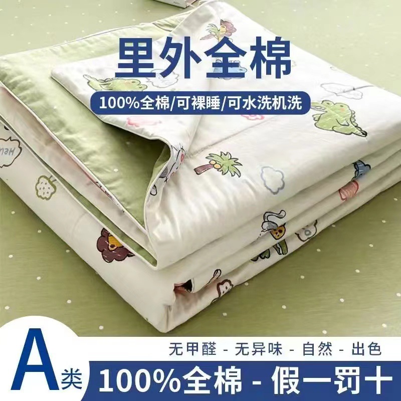 100% 면 신장 면 여름 시원한 이불 순수 면 클래스 에어컨 이불 기계 세탁기 세탁기 세척 가능한 얇은 이불 학생 및 어린이스토어 가기