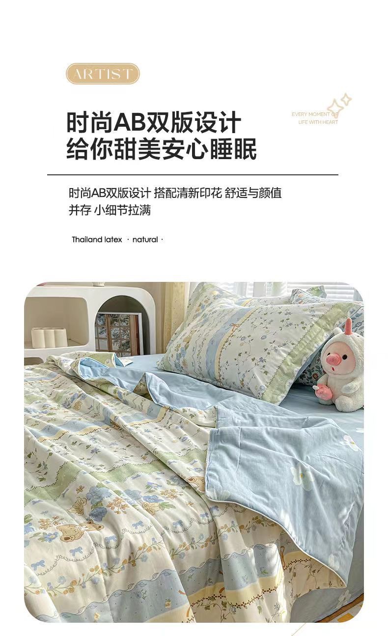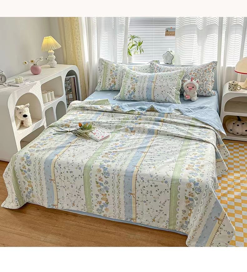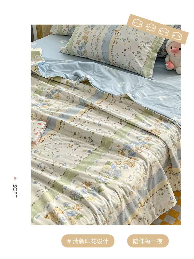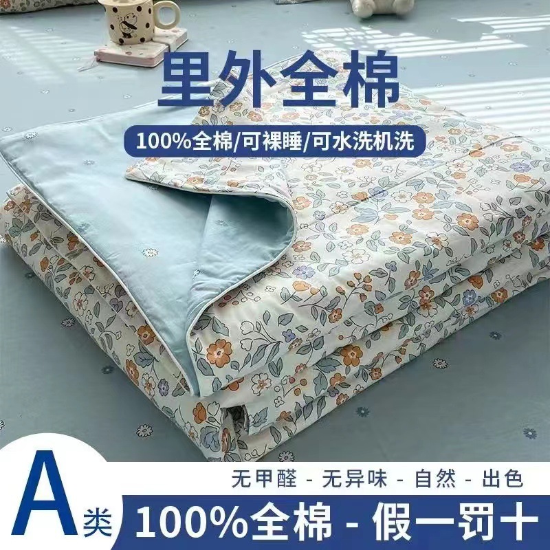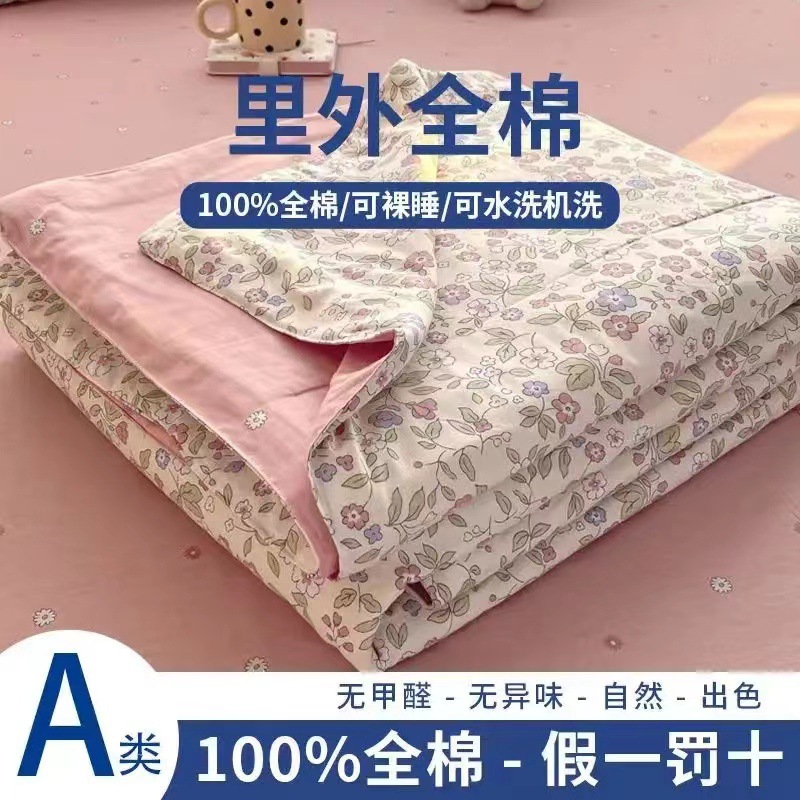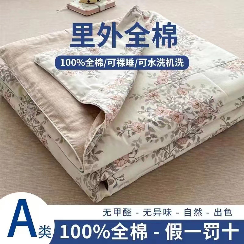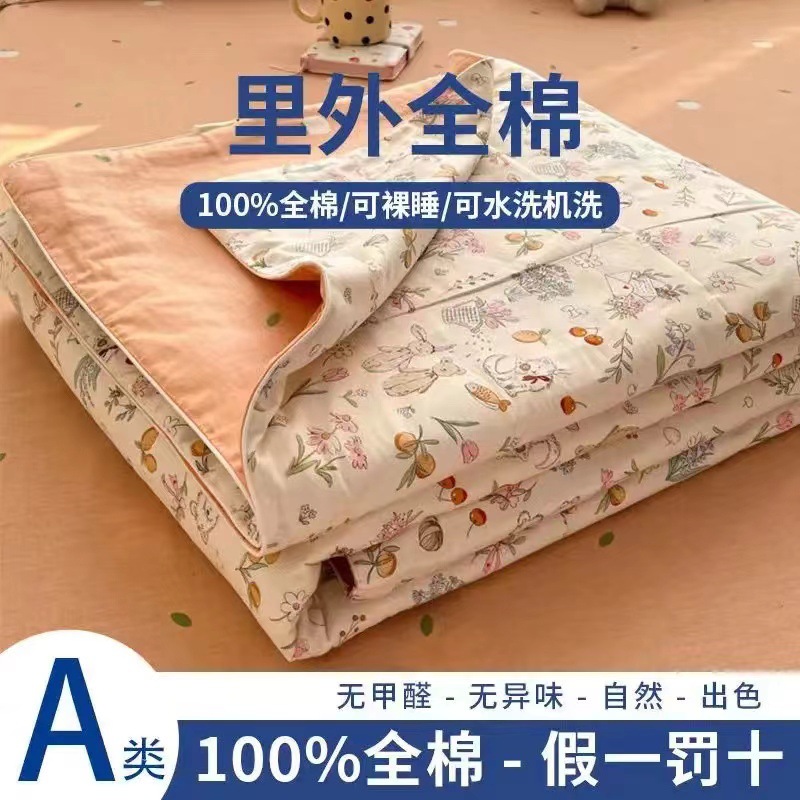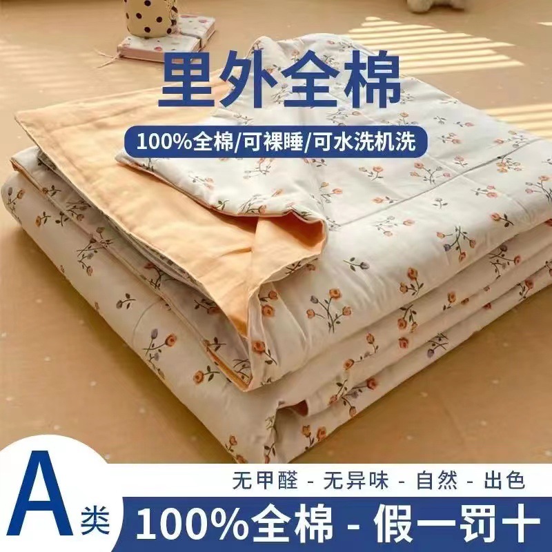 100% 면 신장 면 여름 시원한 이불 순수 면 클래스 에어컨 이불 기계 세탁기 세탁기 세척 가능한 얇은 이불 학생 및 어린이스토어 가기