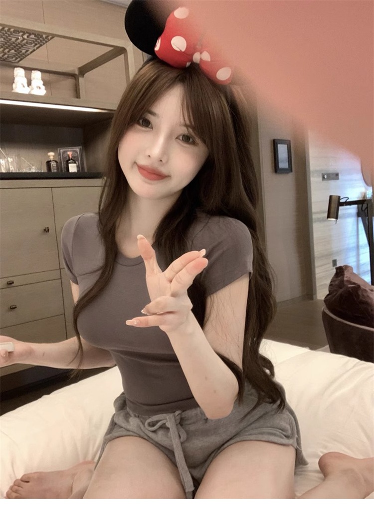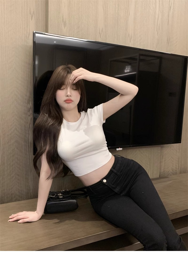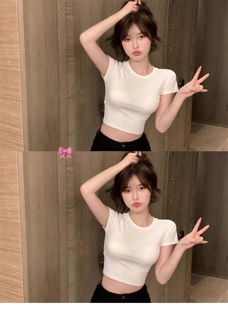 순수한 욕망 스타일 슬림 티셔츠 여성용 달콤한 스파이스 소녀 꽉 어깨 짧은 소매 섹시한 둥근 목 높은 허리 짧은 여름 탑
