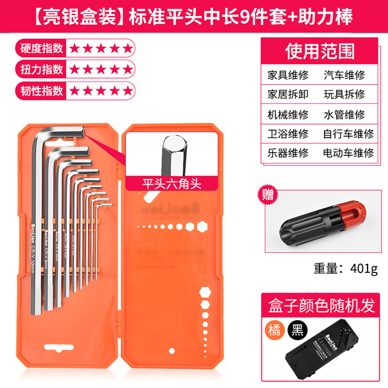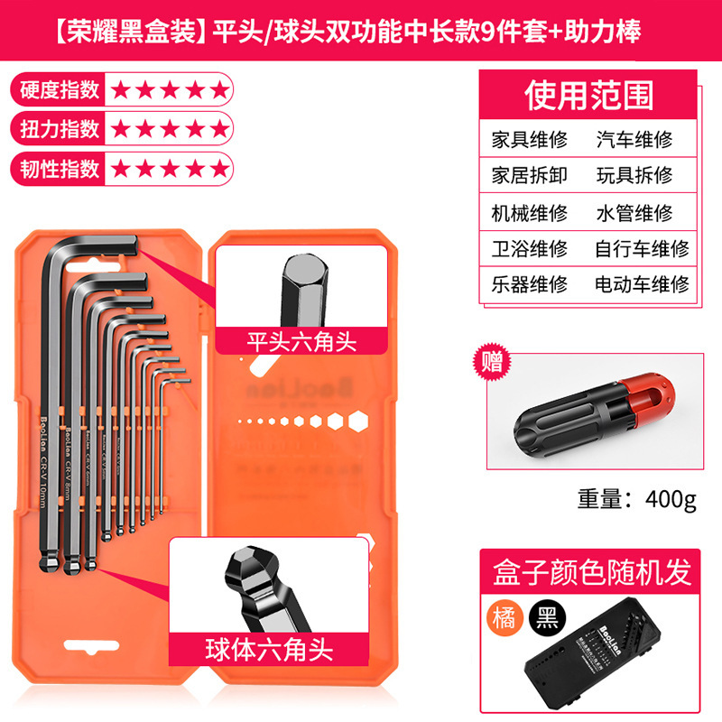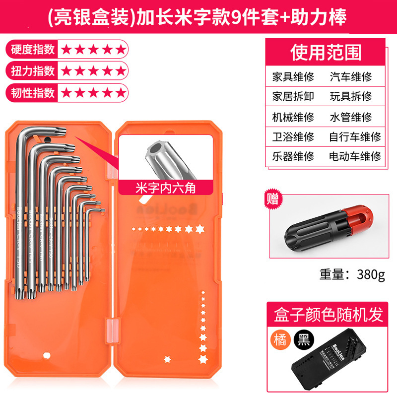 • 크롬 바나듐 강철 플라스틱 상자 9개 세트(특수 길이 볼 헤드)(보조 로드 포함)