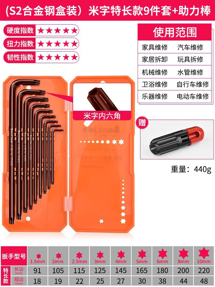 • 크롬 바나듐 강철 플라스틱 상자 9개 세트(특수 길이 쌀 모양)(보조 막대 포함)