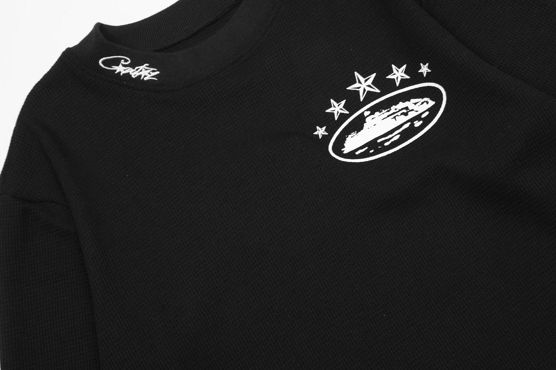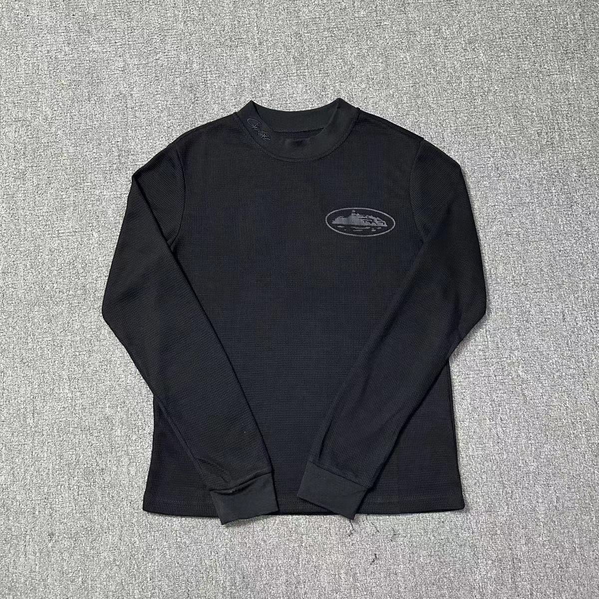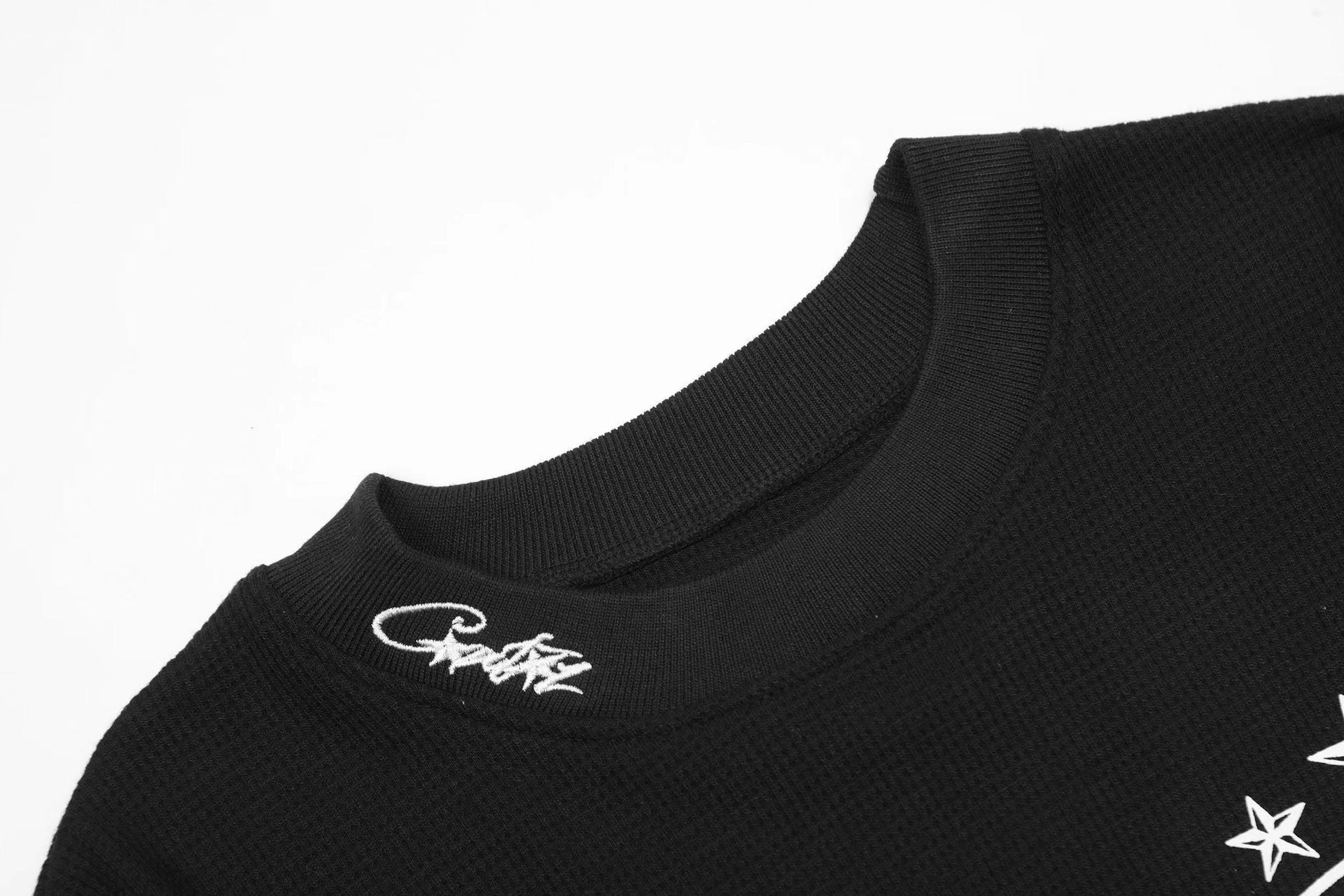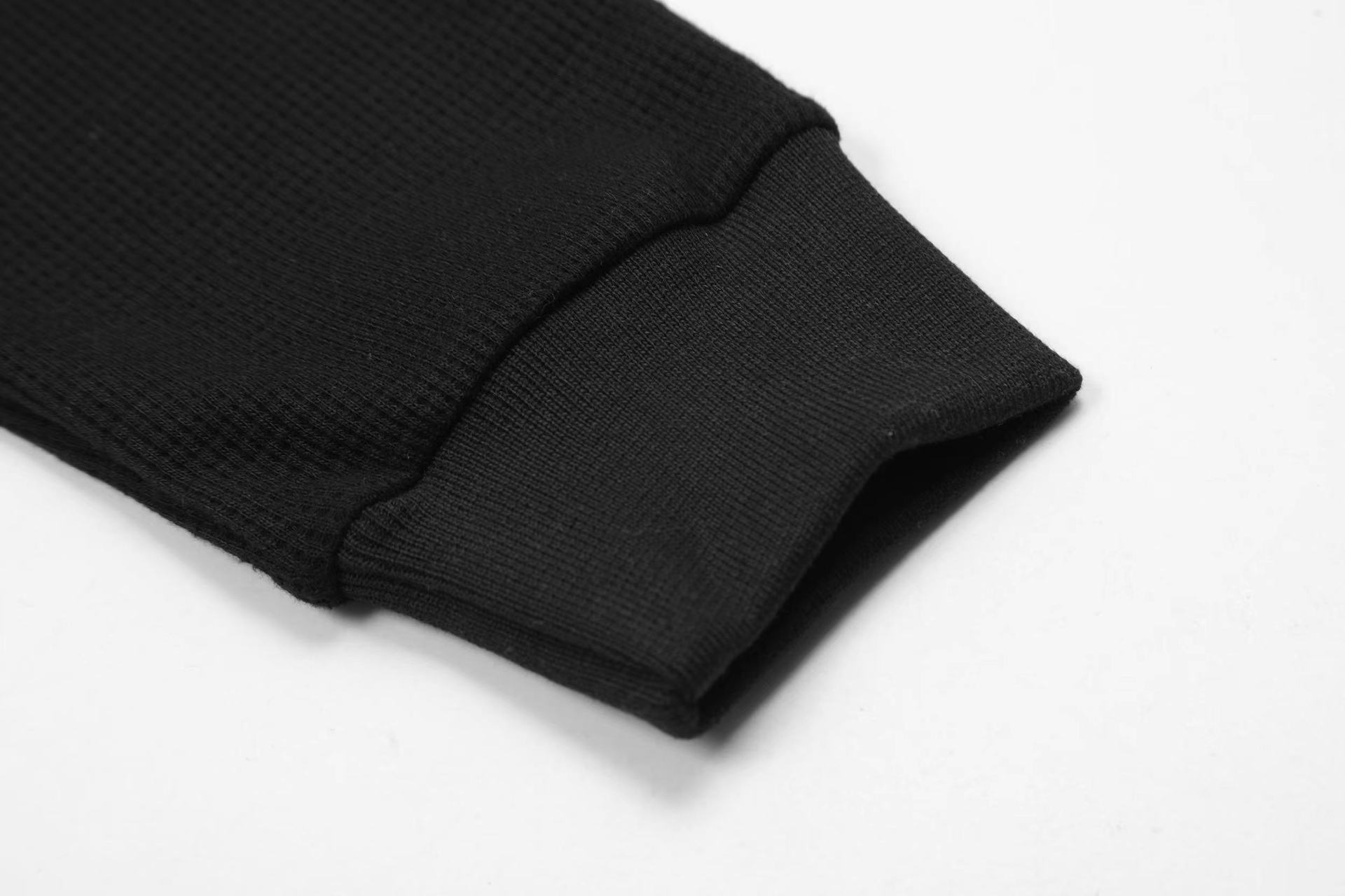 틈새 트렌디 브랜드 Devil Island 클래식 긴팔 티셔츠 루즈 캐주얼 라운드 넥 커플 5성 와플 긴팔 남성