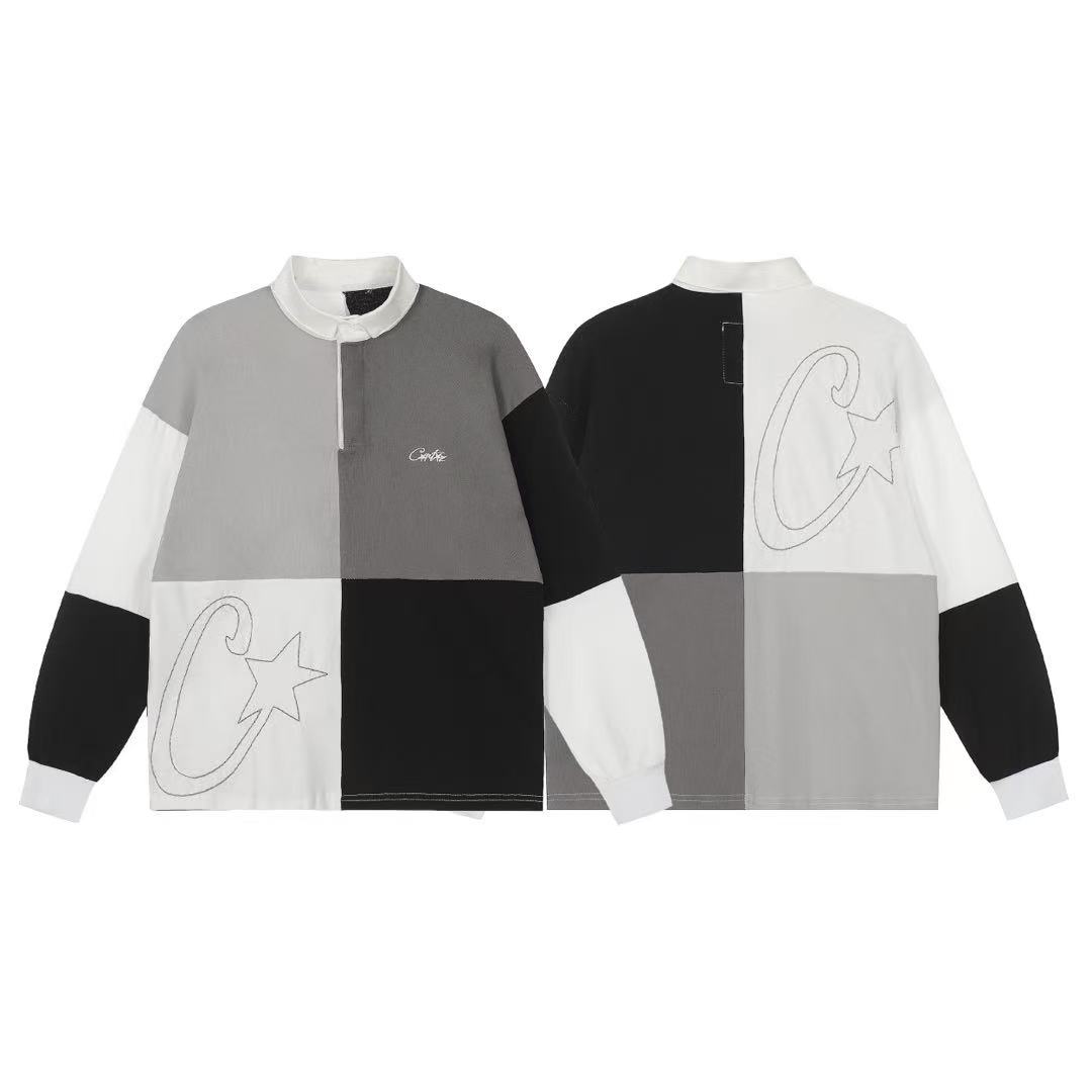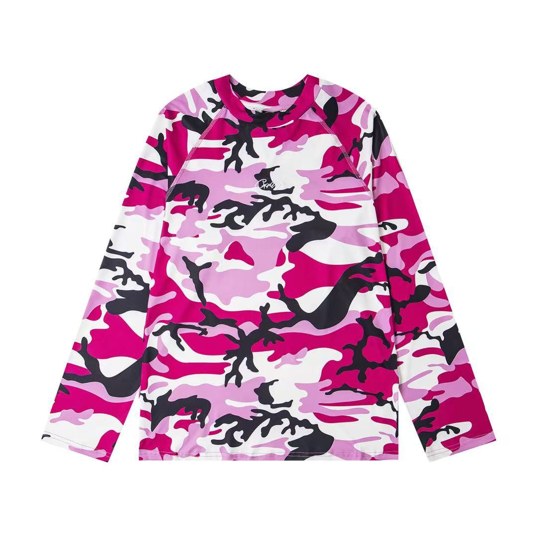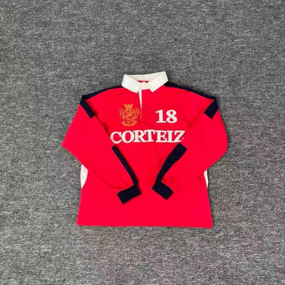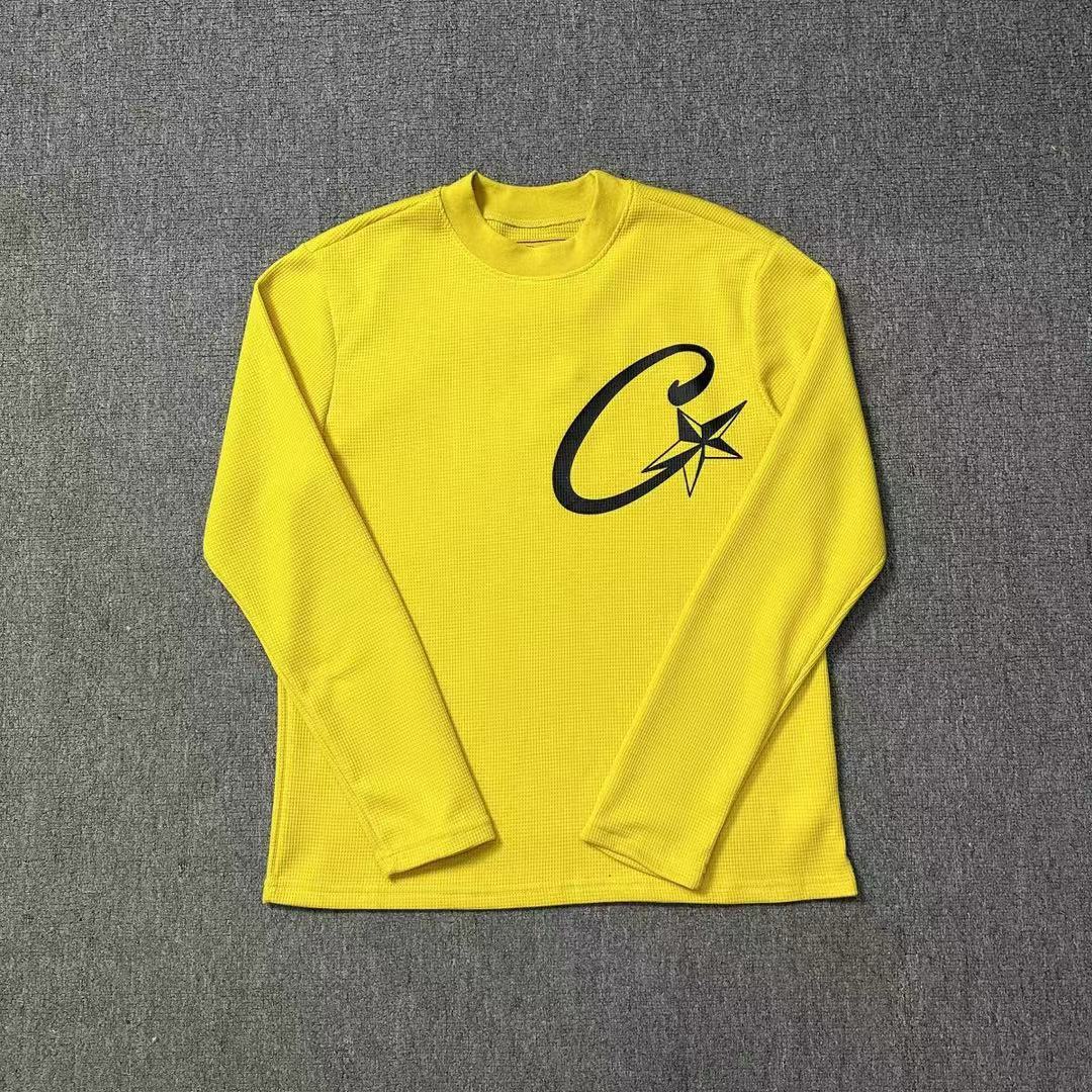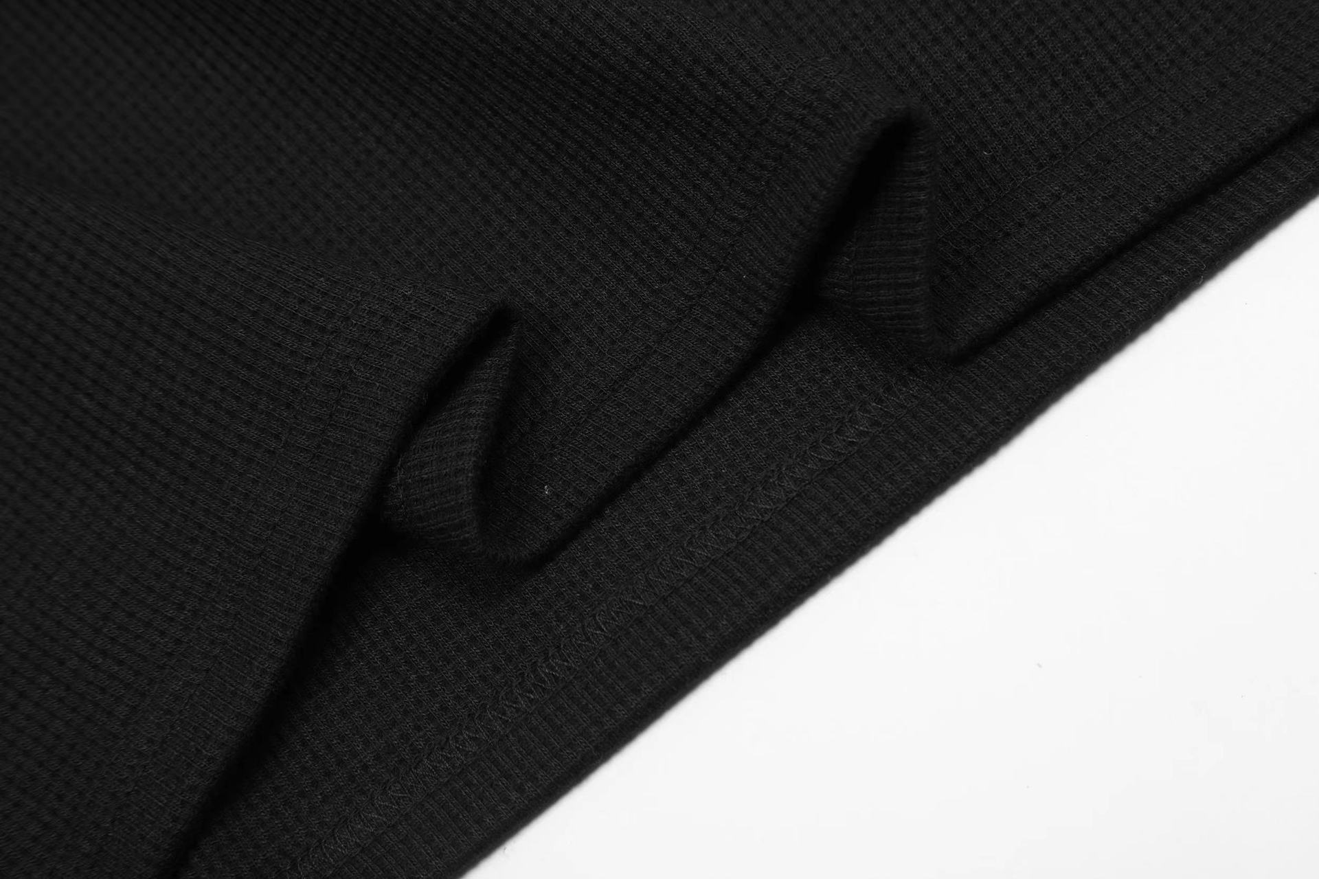 틈새 트렌디 브랜드 Devil Island 클래식 긴팔 티셔츠 루즈 캐주얼 라운드 넥 커플 5성 와플 긴팔 남성