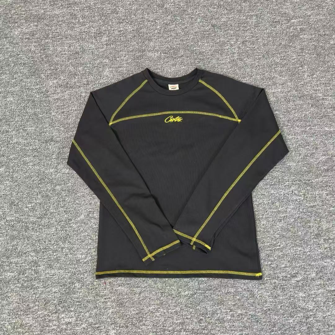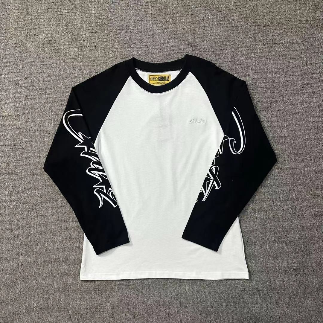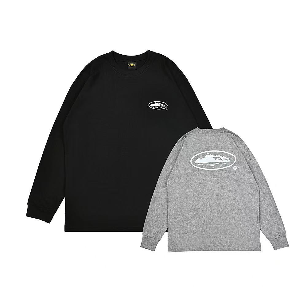 틈새 트렌디 브랜드 Devil Island 클래식 긴팔 티셔츠 루즈 캐주얼 라운드 넥 커플 5성 와플 긴팔 남성스토어 가기