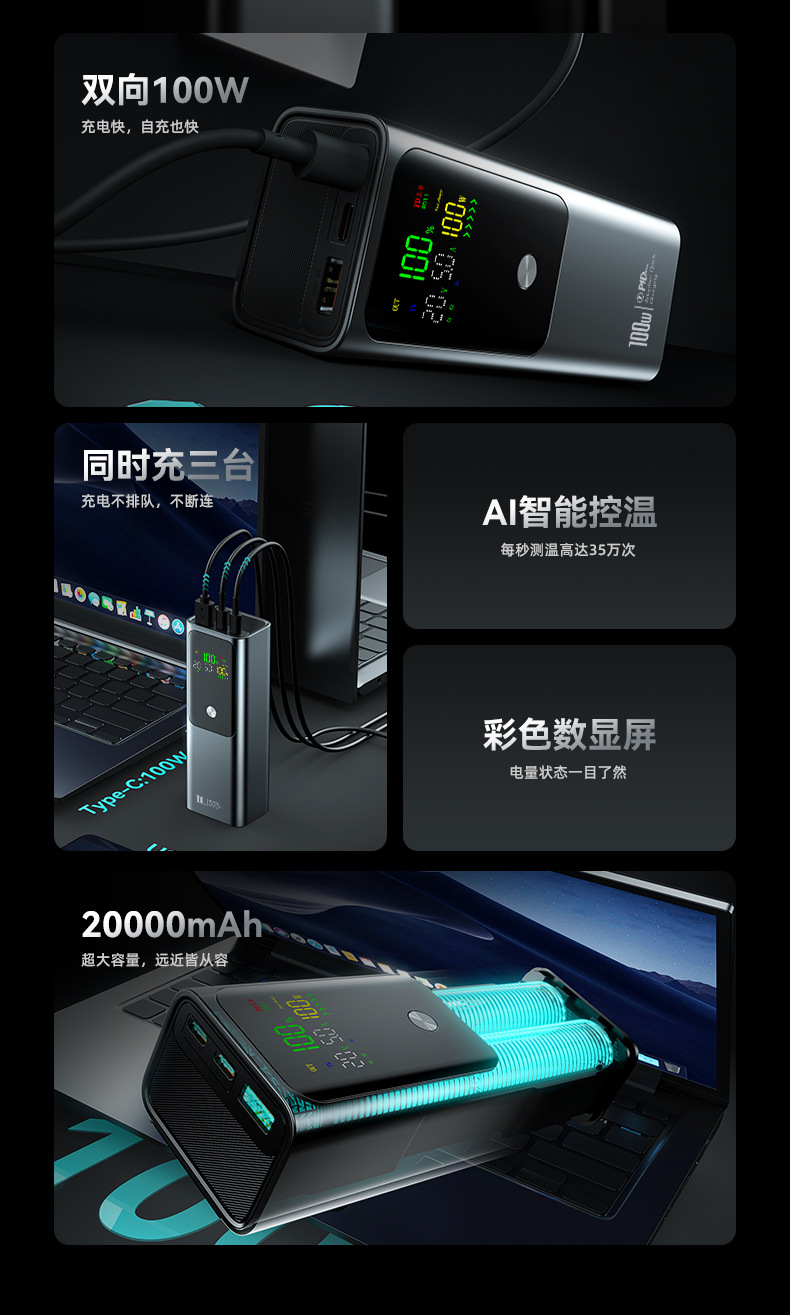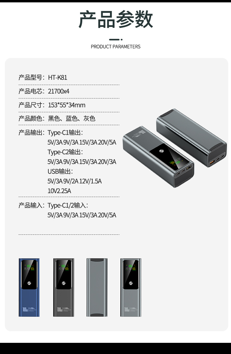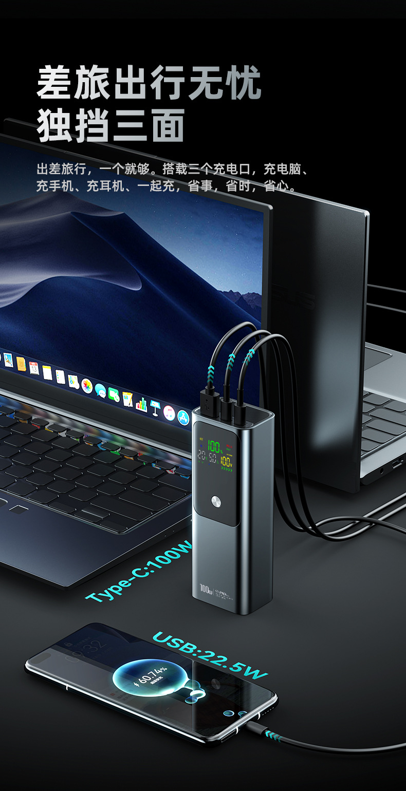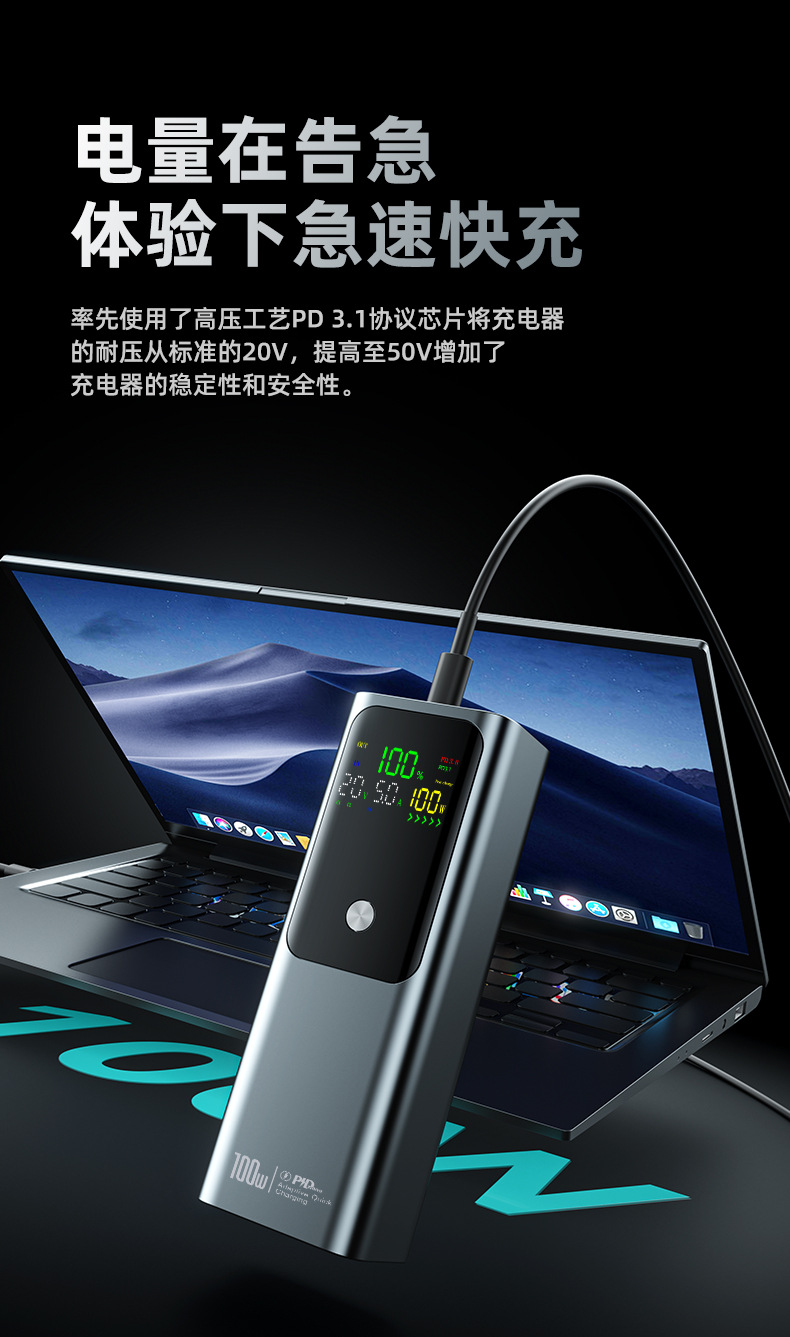 100w 빠른 충전 지원 노트북 태블릿 모바일 전원 대용량 충전 키트 ips 화면 HD 디지털 디스플레이