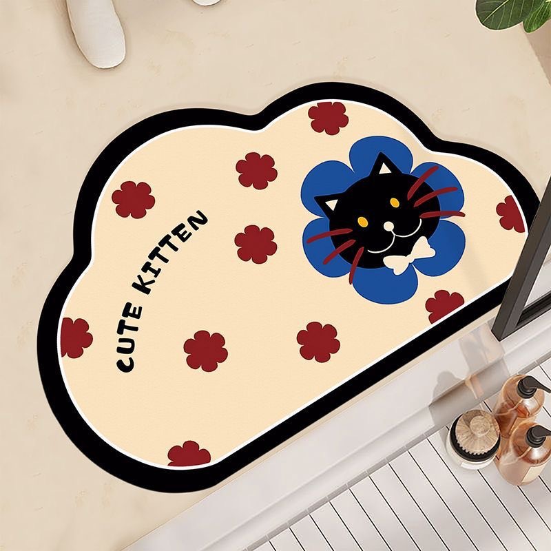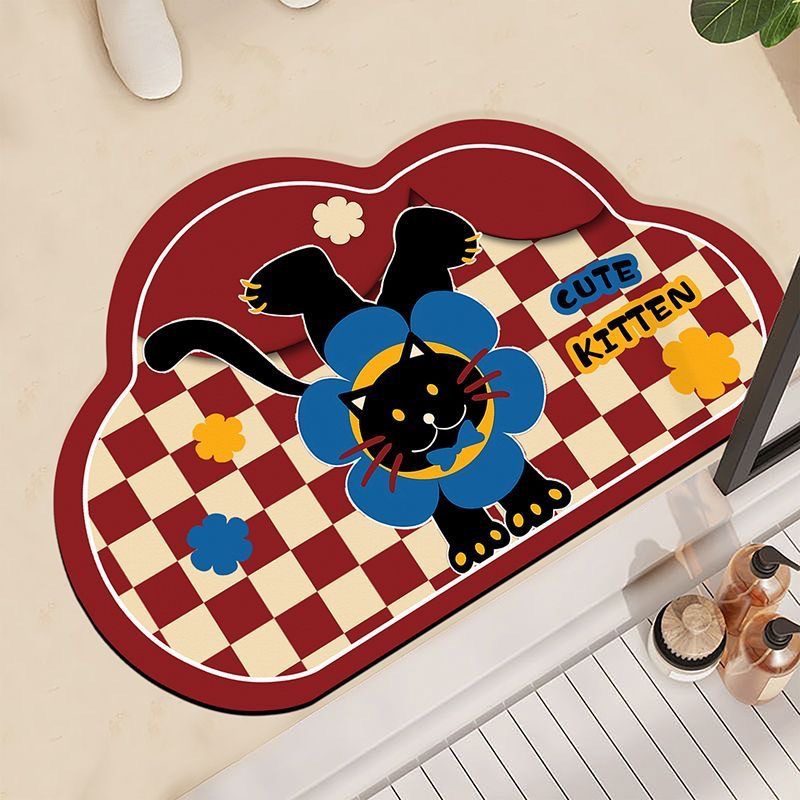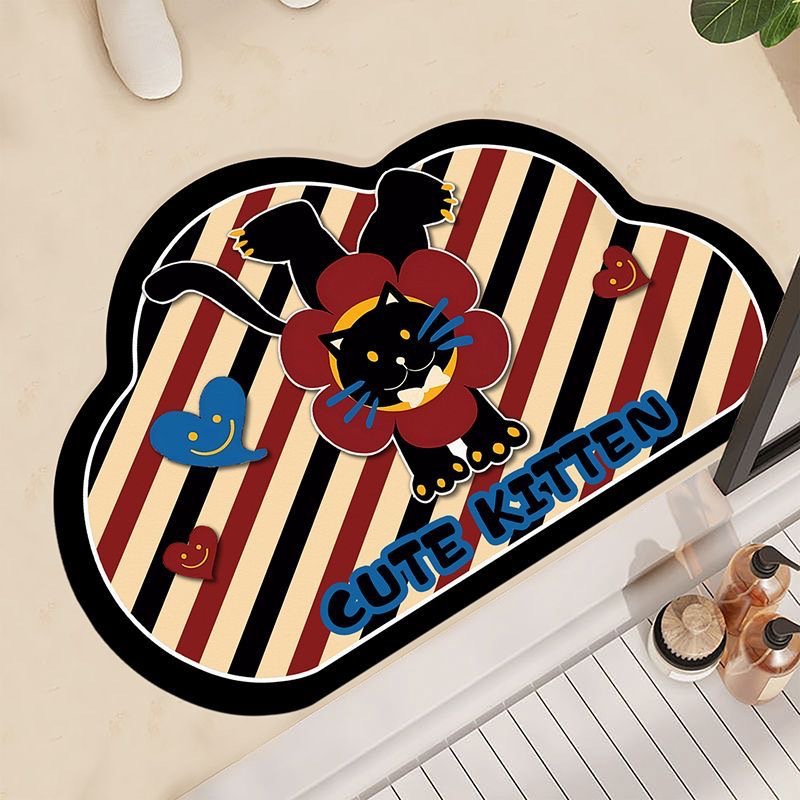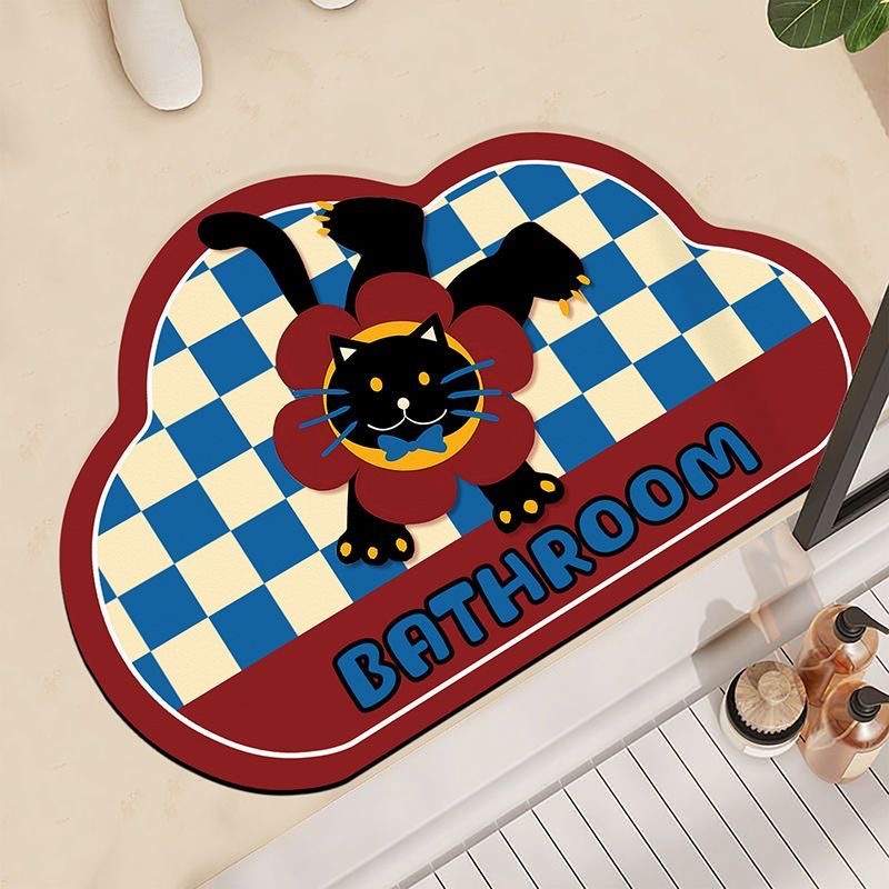 만화 검은 고양이 규조 진흙 매트 흡수성 빠른 건조 욕실 욕실 매트 화장실 미끄럼 방지 매트 도어 매트 도매스토어 가기