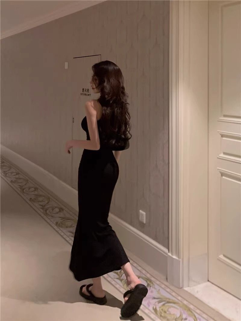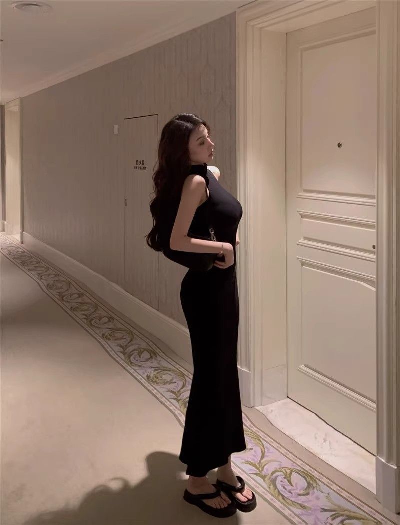 원피스 여성 한국식 여름 틈새 새로운 순수 하이 엔드 민소매 디자인 타이트한 피규어 아첨하는 긴 원피스스토어 가기