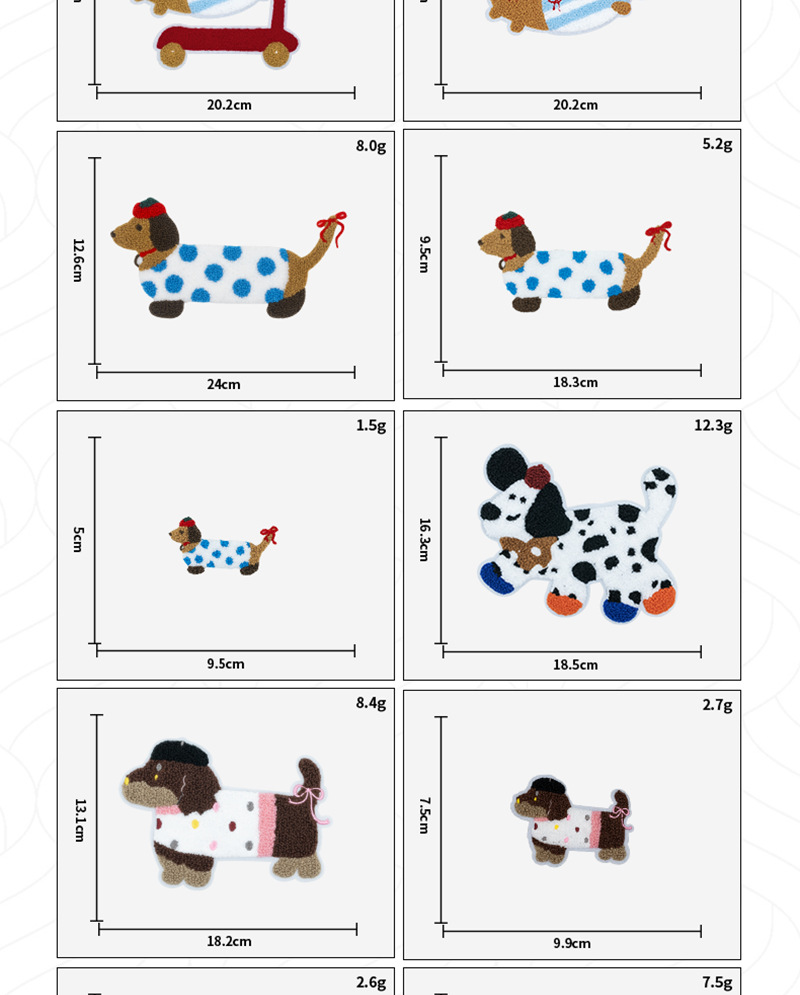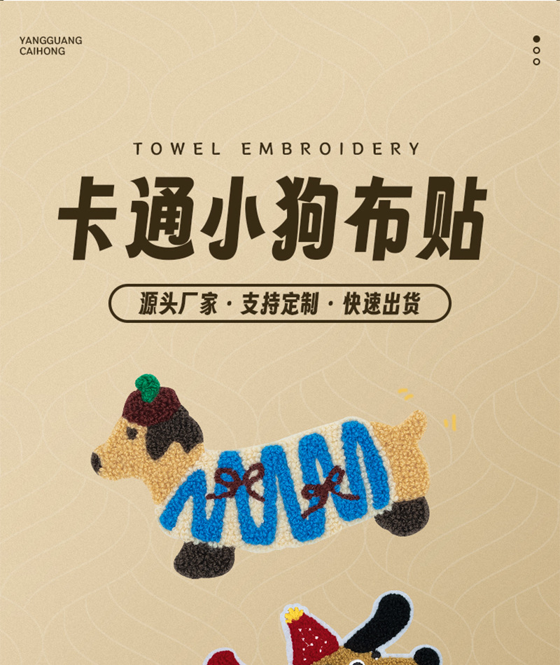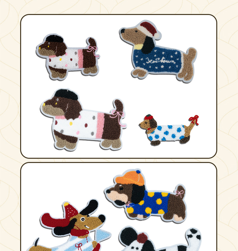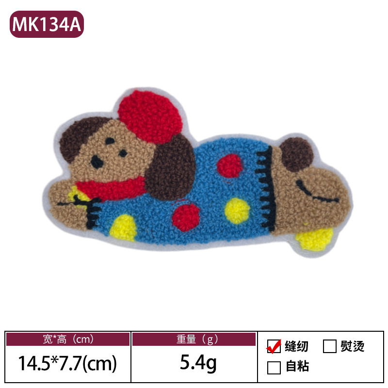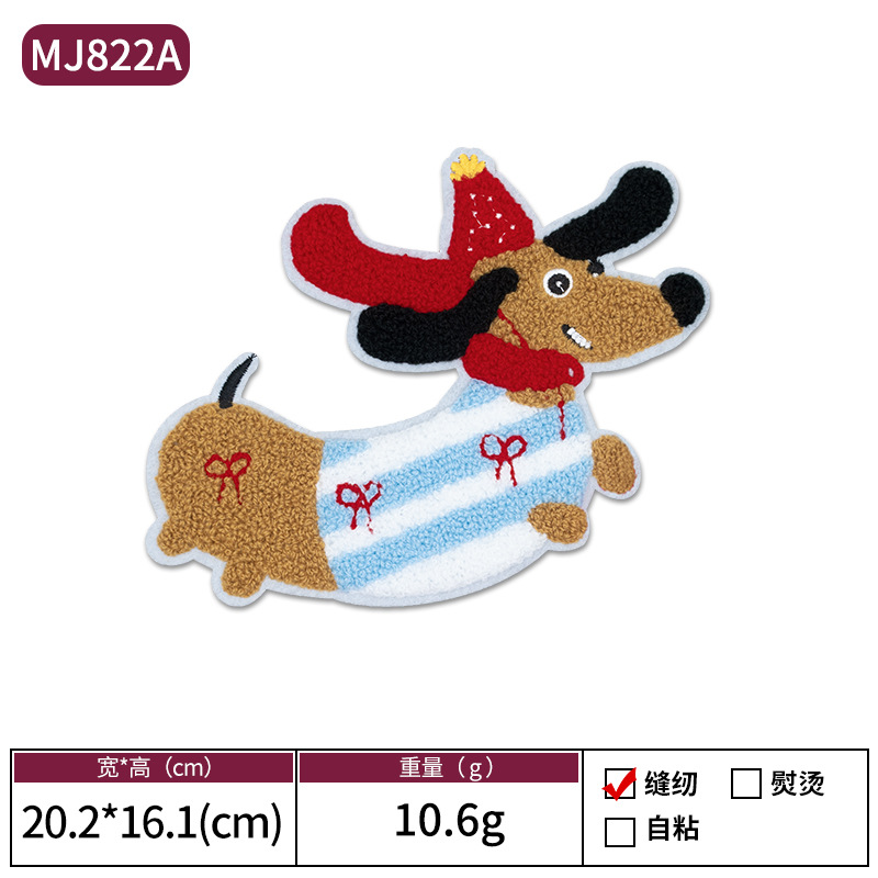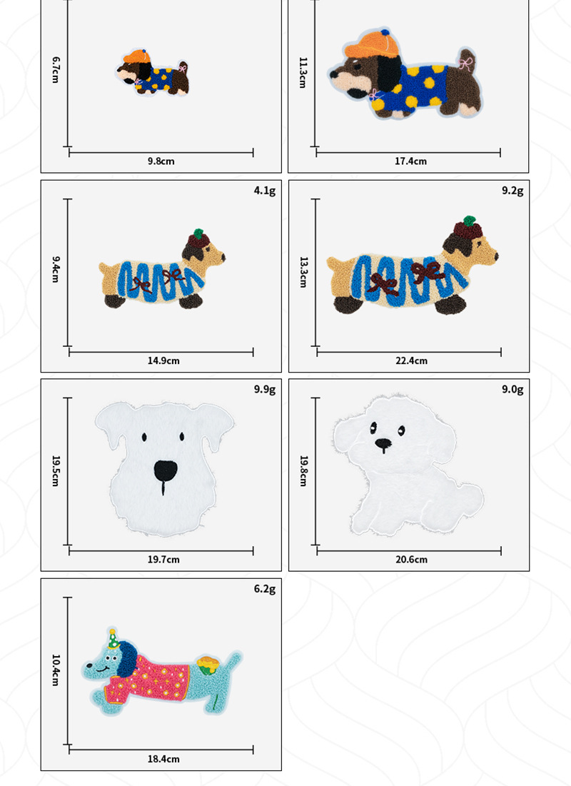 만화 강아지 수건 자수 헝겊 패치 체닐 패치 컴퓨터 자수 라벨 의류 장식 동물 패치