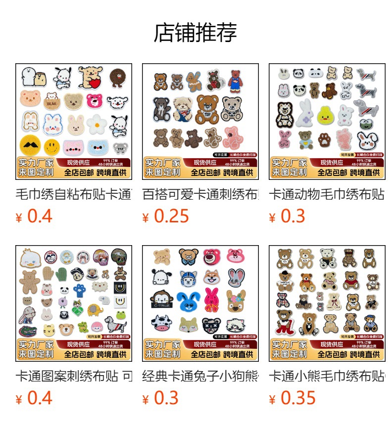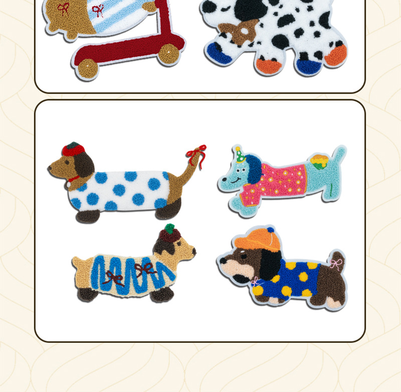만화 강아지 수건 자수 헝겊 패치 체닐 패치 컴퓨터 자수 라벨 의류 장식 동물 패치스토어 가기