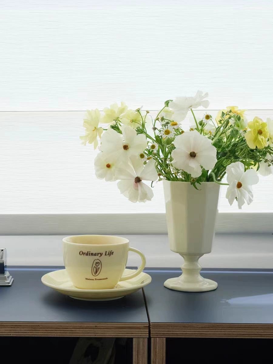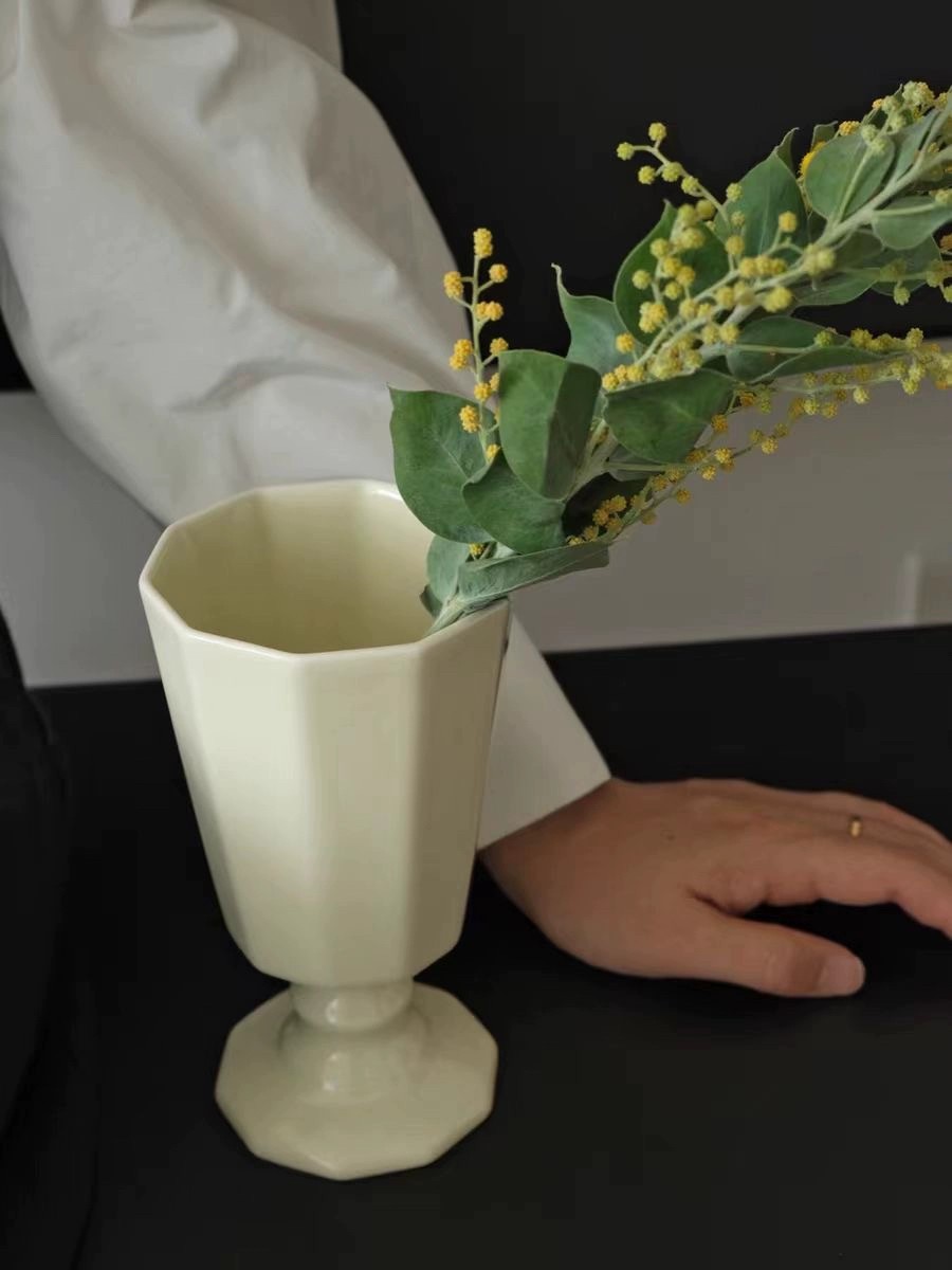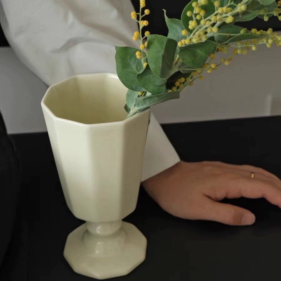 수출 잔 꽃꽂이 꽃병 유백색 세라믹 꽃 복고풍 크림 컬러 하이 엔드 거실 프랑스 장식스토어 가기