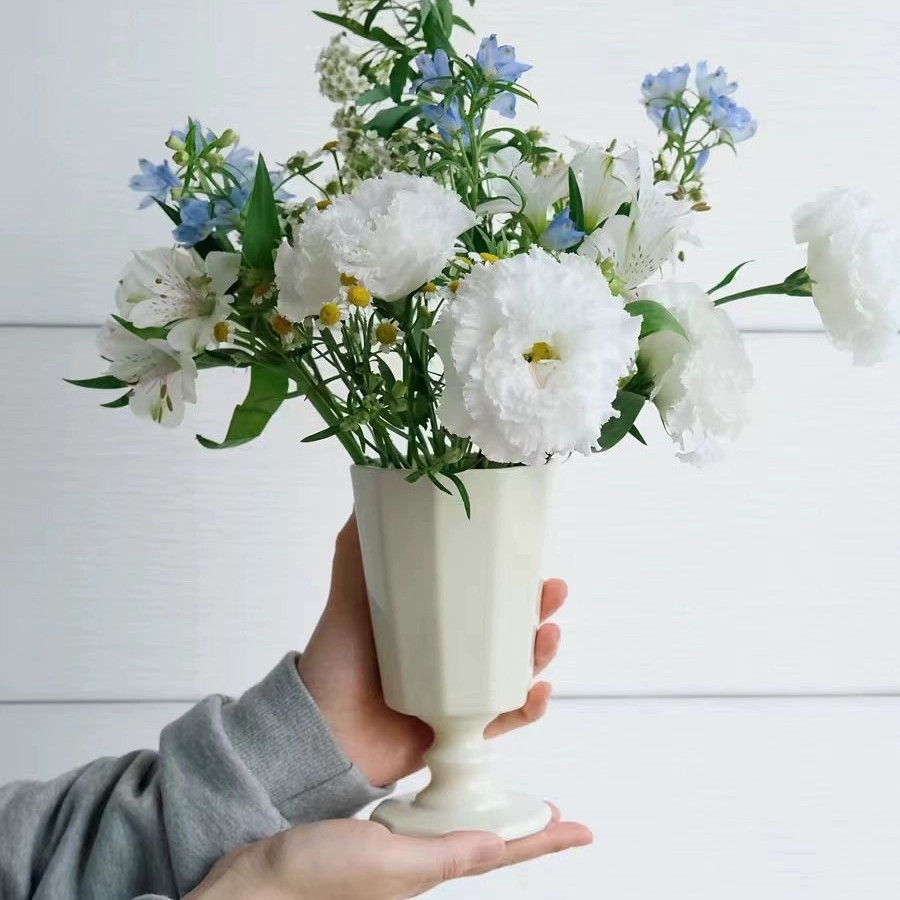 수출 잔 꽃꽂이 꽃병 유백색 세라믹 꽃 복고풍 크림 컬러 하이 엔드 거실 프랑스 장식
