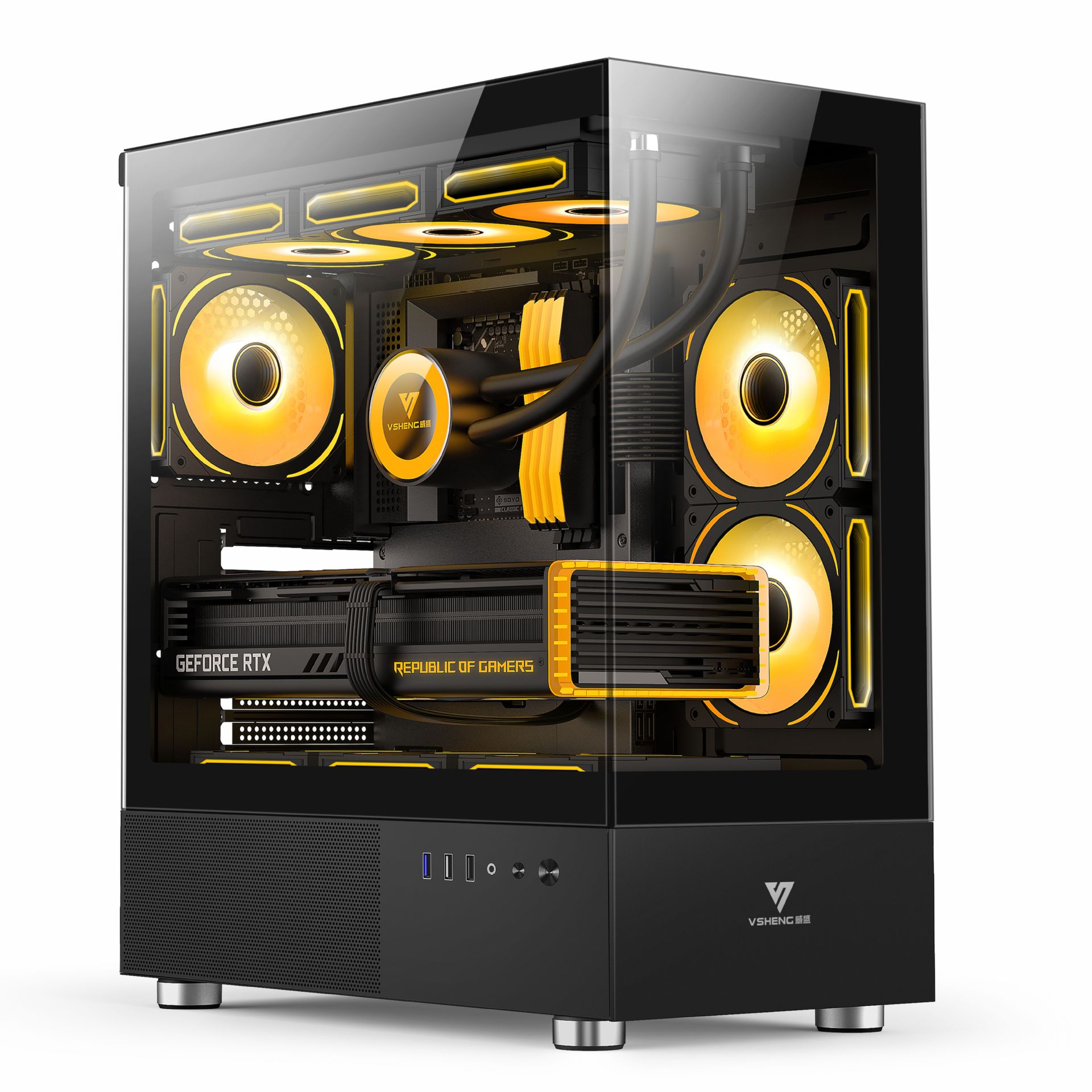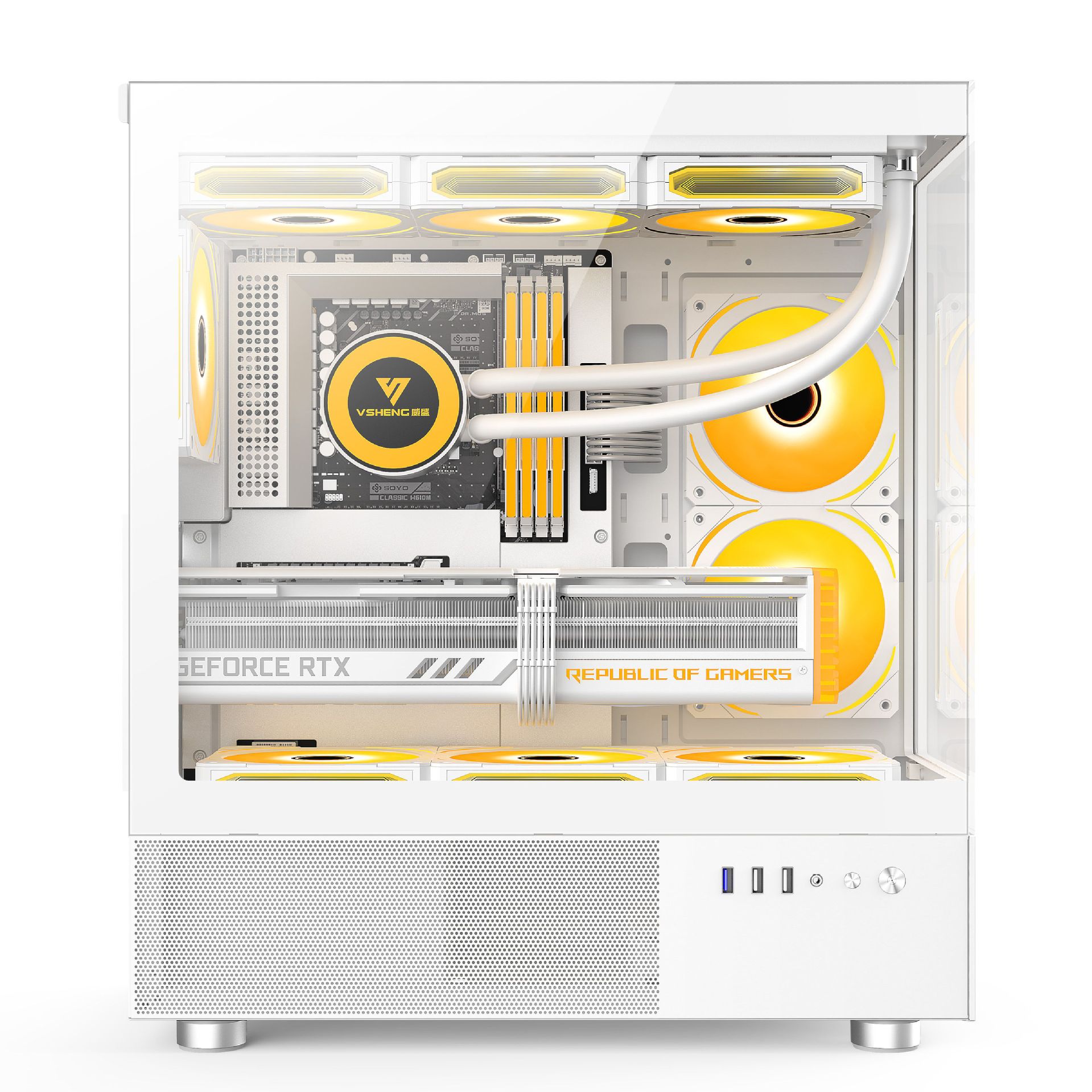 A-포스트가 없는 WEISHENG 순수 미러 컴퓨터 케이스 EATX/ATX 화이트 바다 전망 룸 360 수냉식 케이스 데스크탑스토어 가기