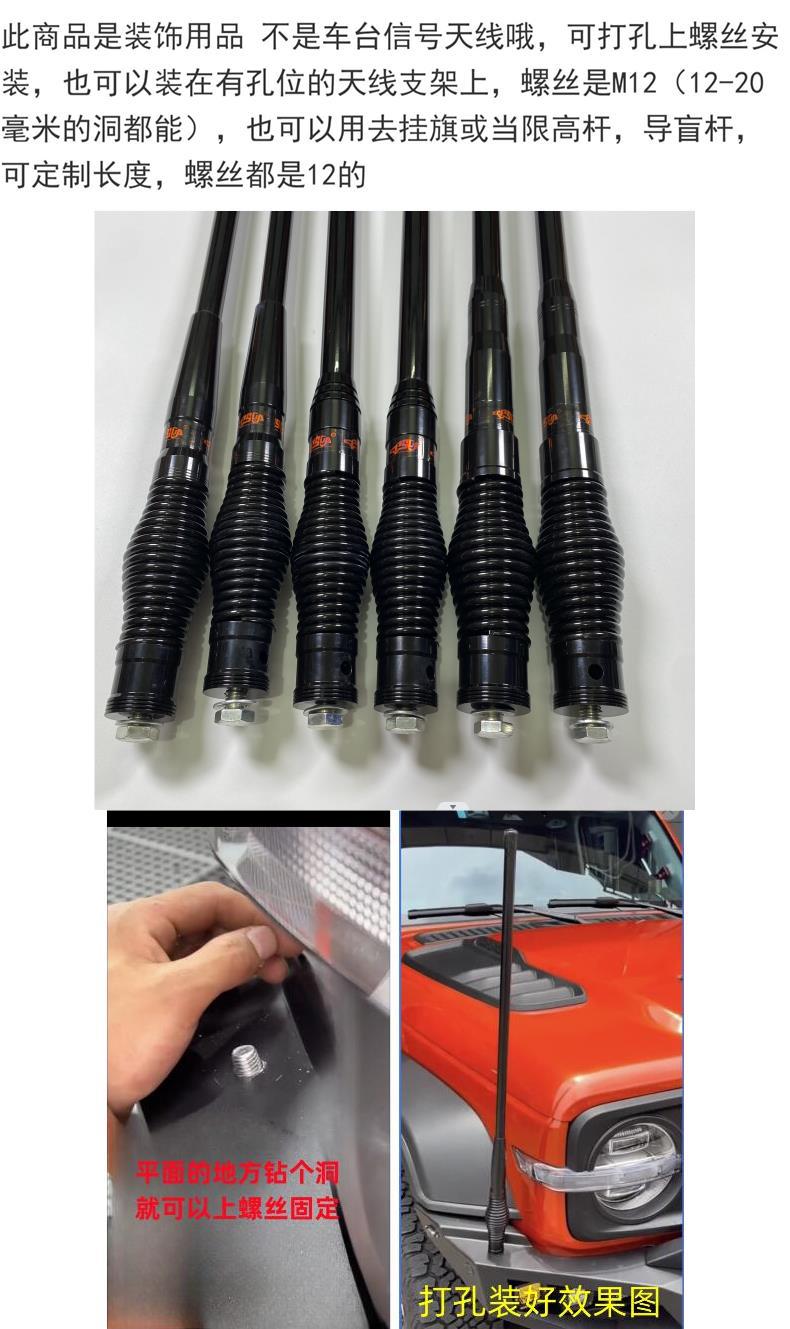 전면 및 후면 범퍼 불펜 바 대담한 자동차 장식 안테나 오프로드 차량 SUV 수정 자동차 안테나 깃대