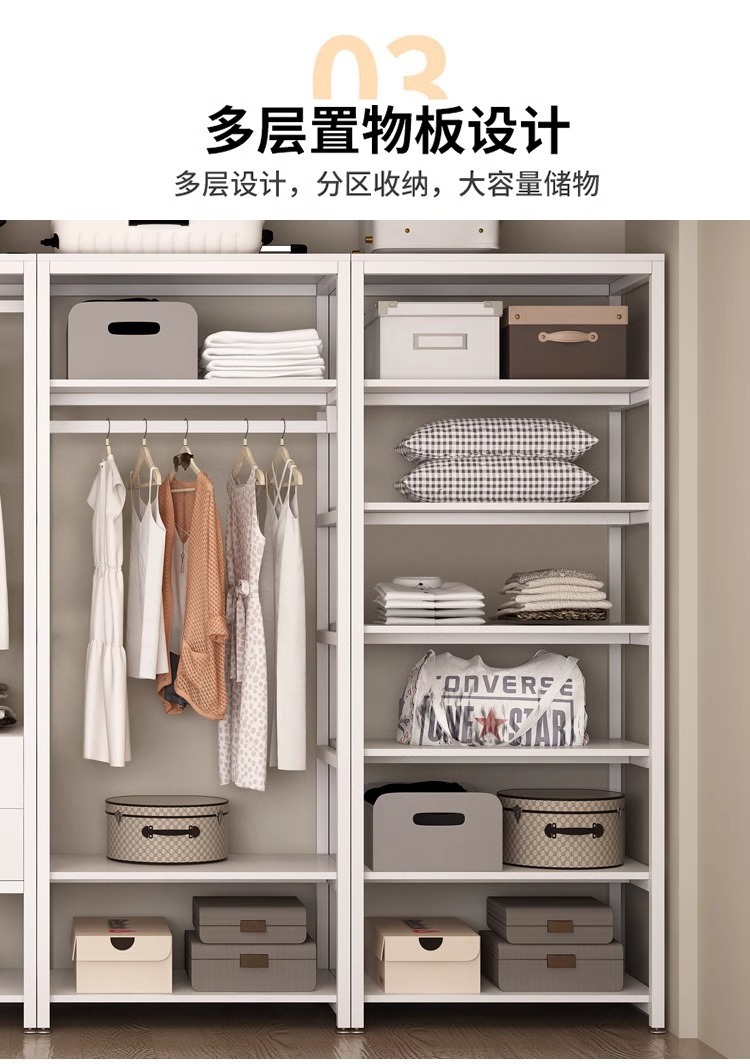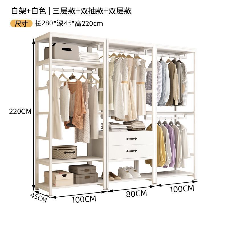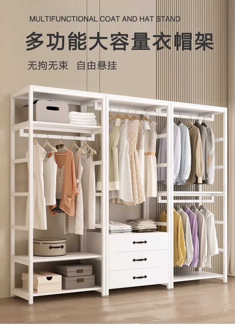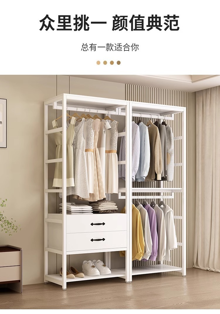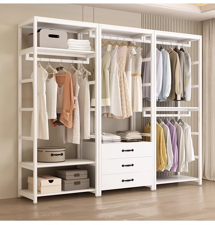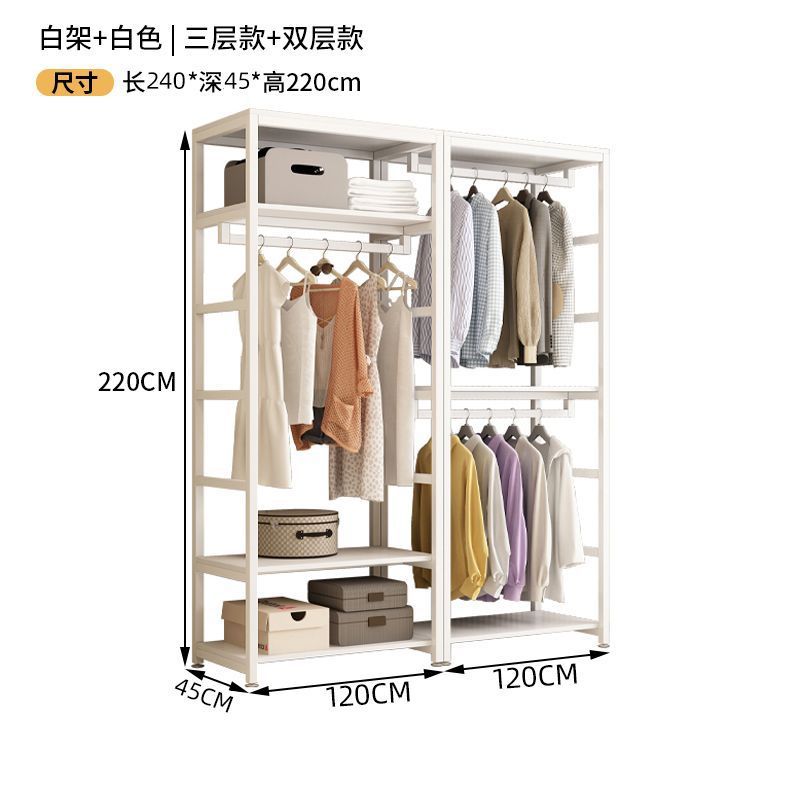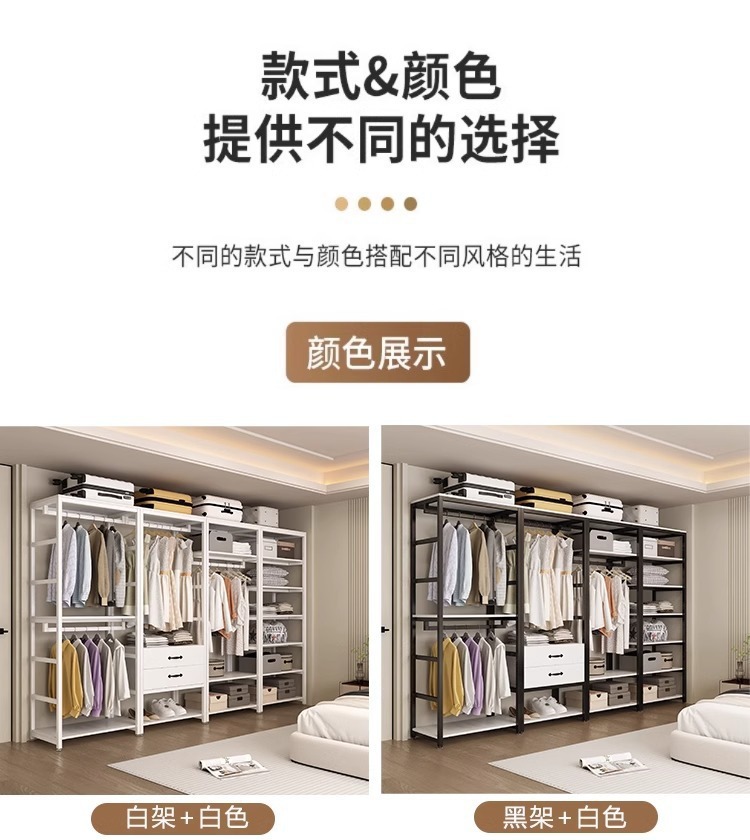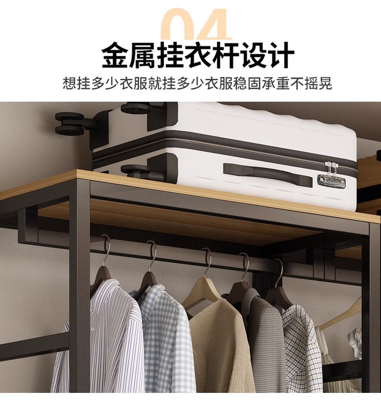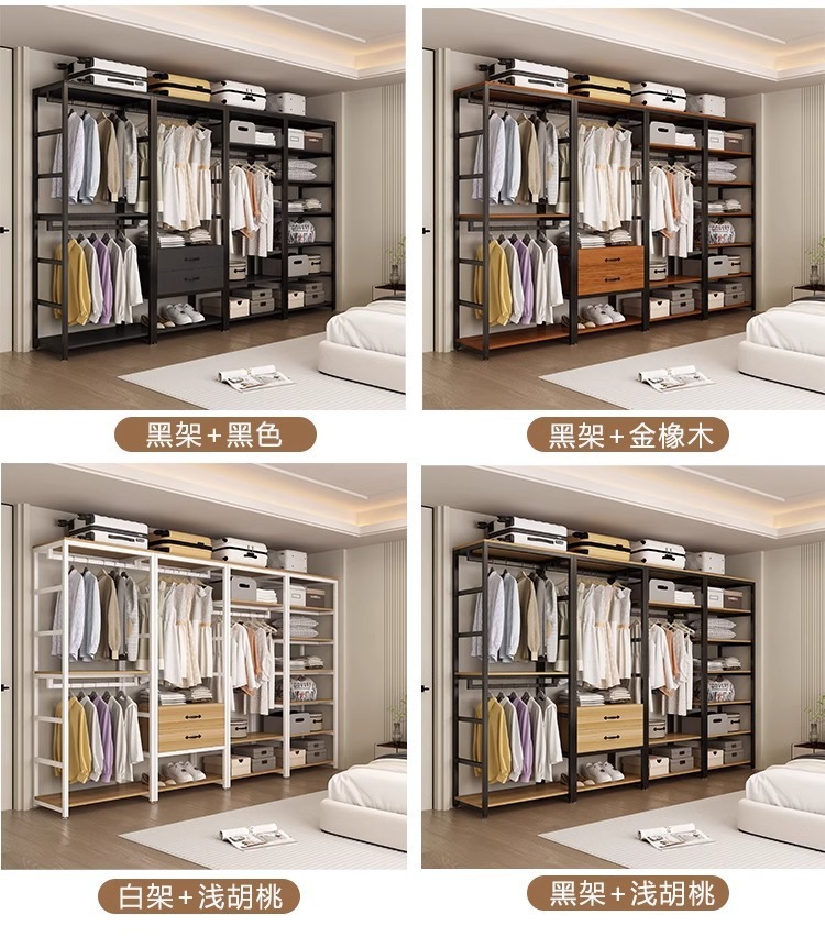 간단한 옷장 가정용 침실 옷장 옷걸이 선반 바닥형 조합 현대적이고 간단한 금속 수납장스토어 가기