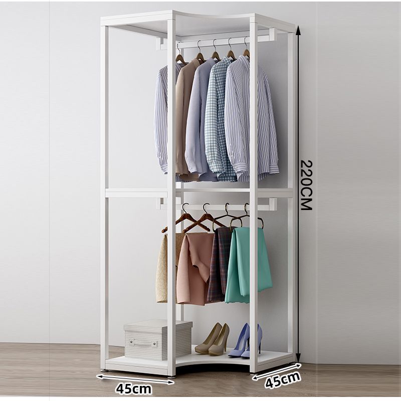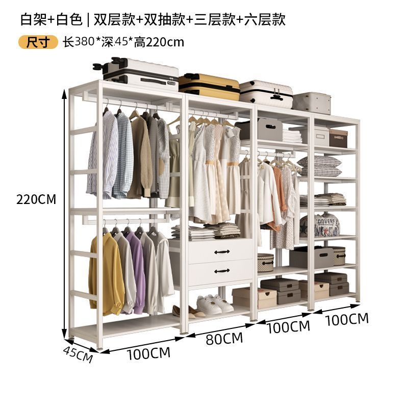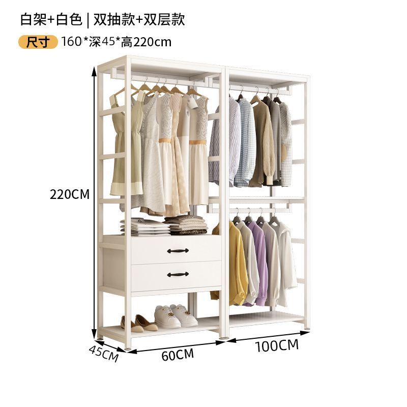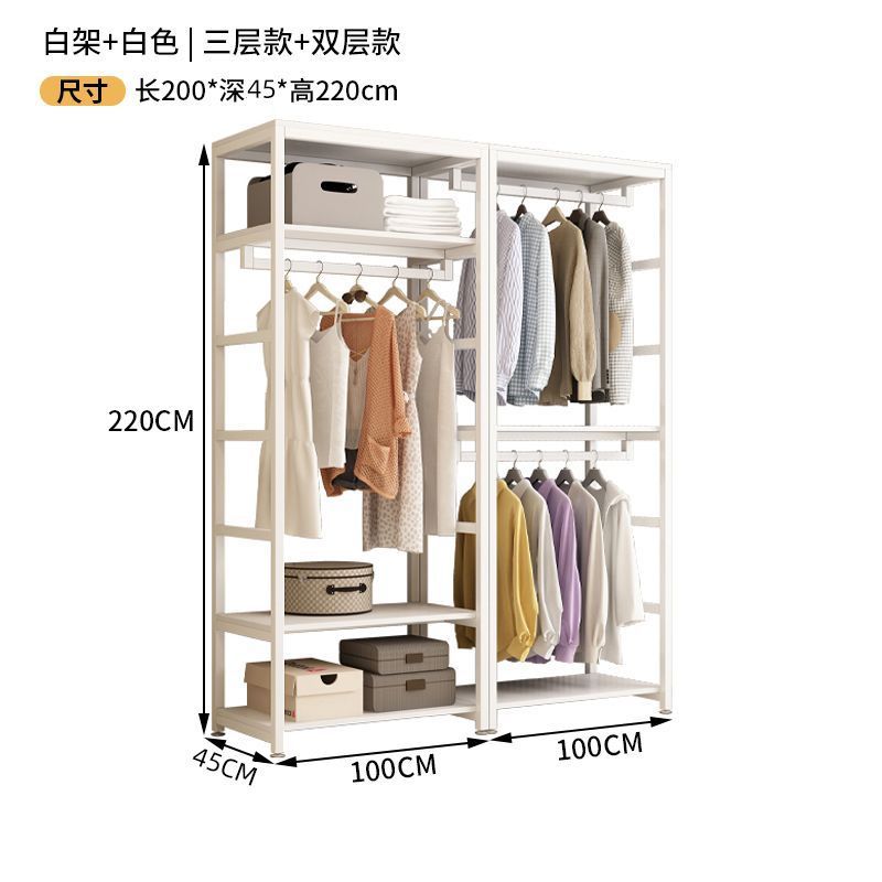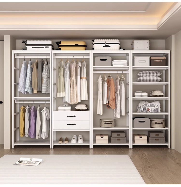 간단한 옷장 가정용 침실 옷장 옷걸이 선반 바닥형 조합 현대적이고 간단한 금속 수납장