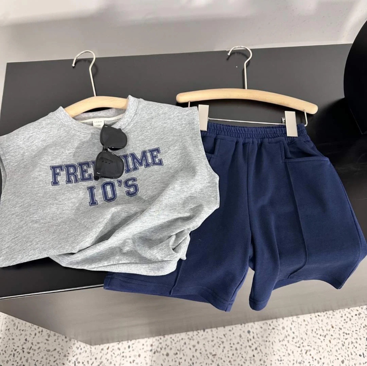 어린이 스타 라운드 여아 정장 2025 여름 신상 한국 스타일 아동 스포츠 캐주얼 레터 여아 패션 여름 의류 트렌드