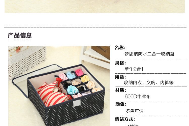 옥스포드 천 속옷 저장 상자 브래지어 속옷 양말 주최자 2 대 1 서랍 저장 상자 접이식 저장 상자스토어 가기