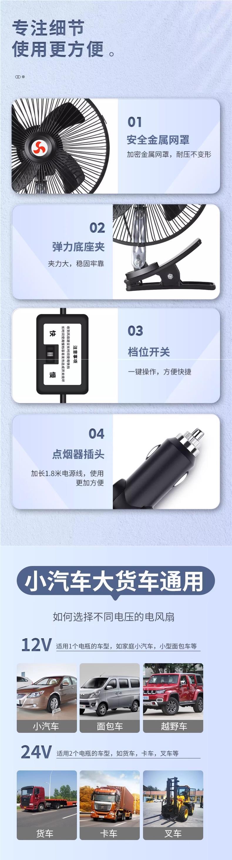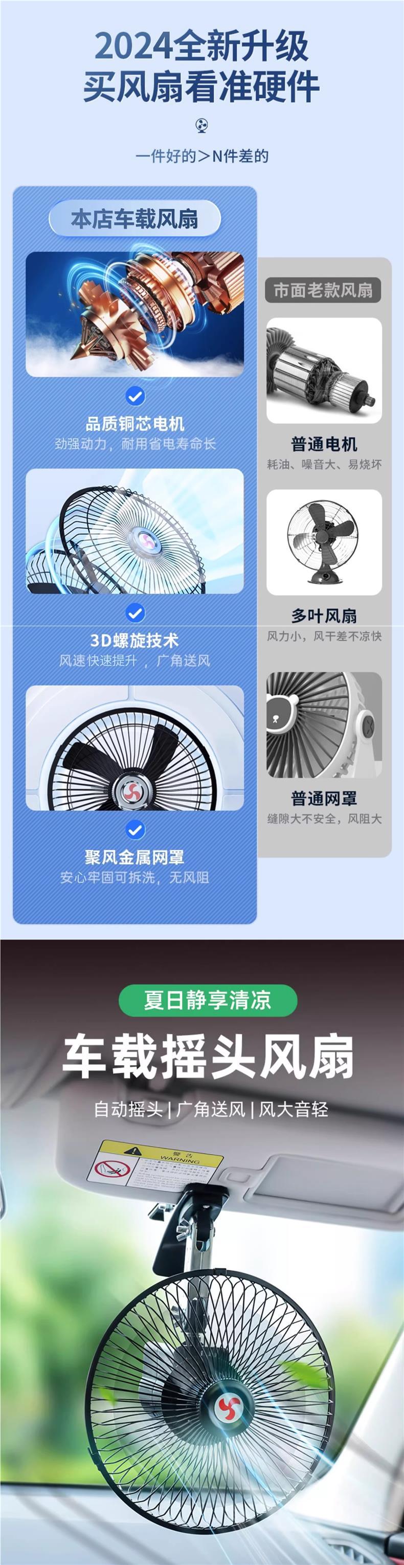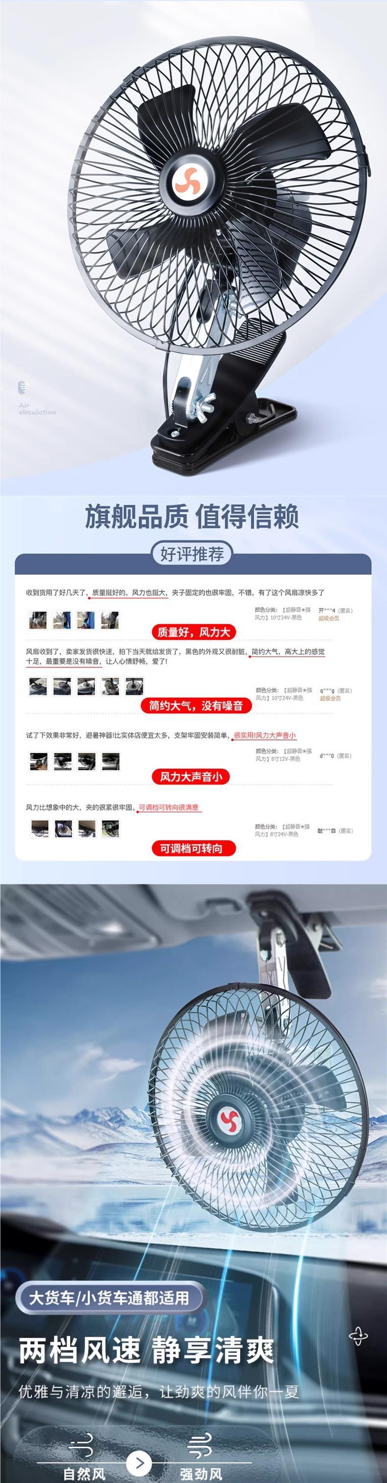 자동차 팬 24V 대형 트럭 12V 볼트 자동차 2024 신차 음소거 클립 팬 자동차스토어 가기