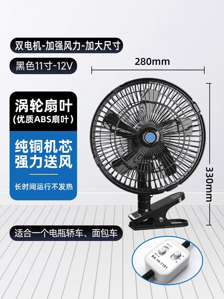 • [2024 신형 듀얼 모터] 11.5inch 블레이드 팬 블랙(12v) 클립 모델(흔들기)