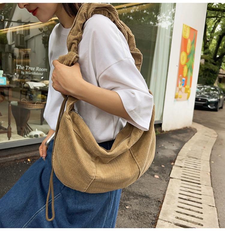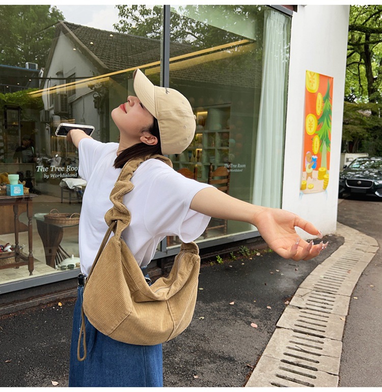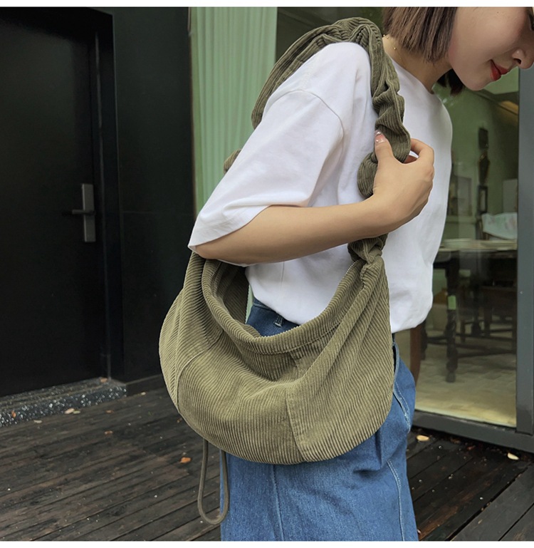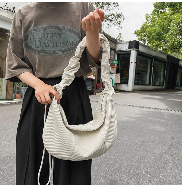 일본식 예술적 캔버스 만두 백 아카데믹 스타일 Ins 캐주얼 주름 어깨 가방 사이버 연예인 현악기 크로스 바디 백 여성용 가방스토어 가기