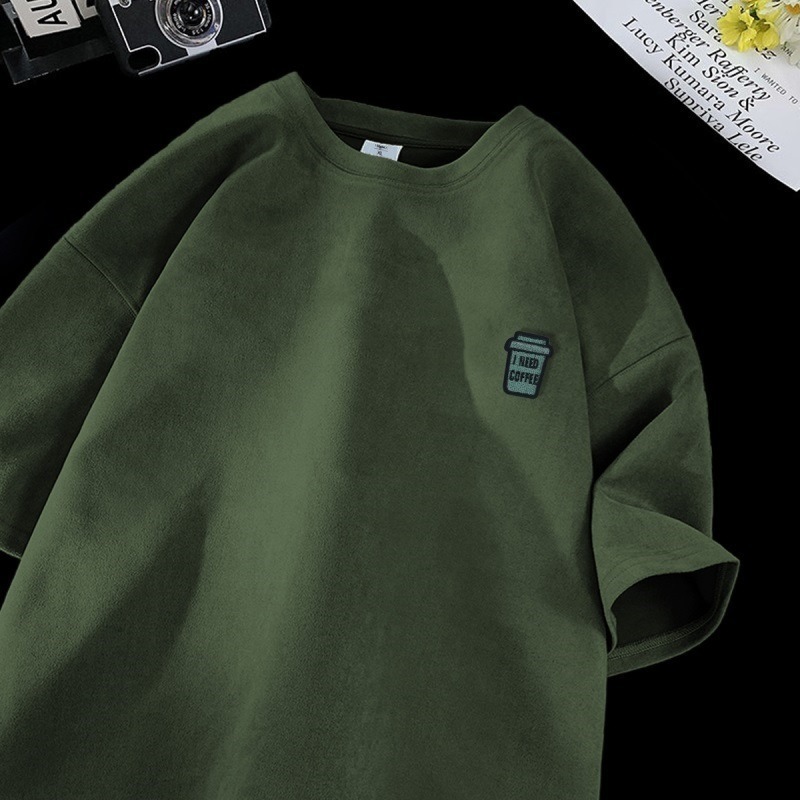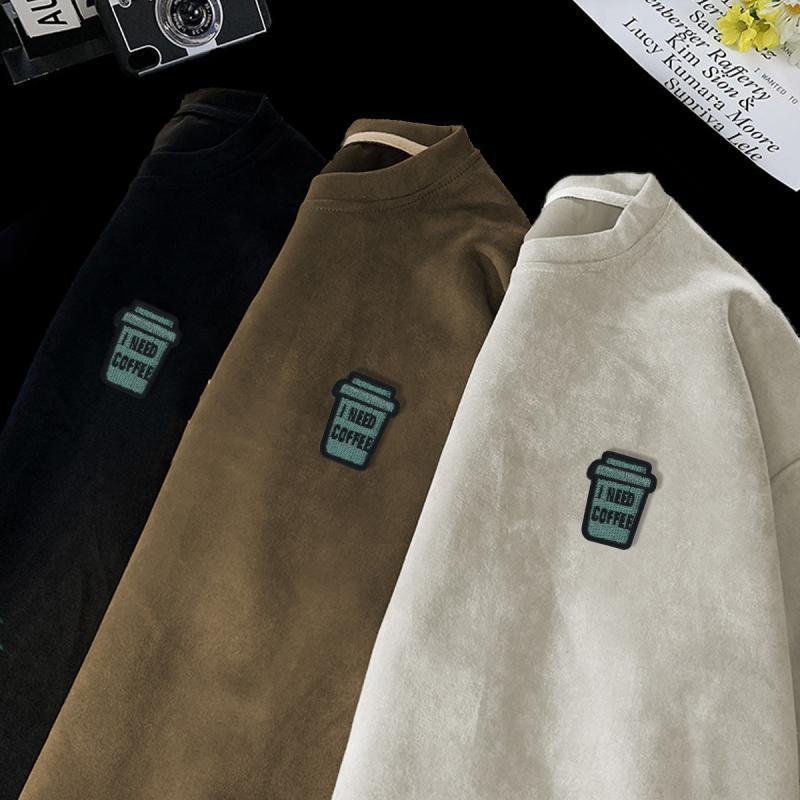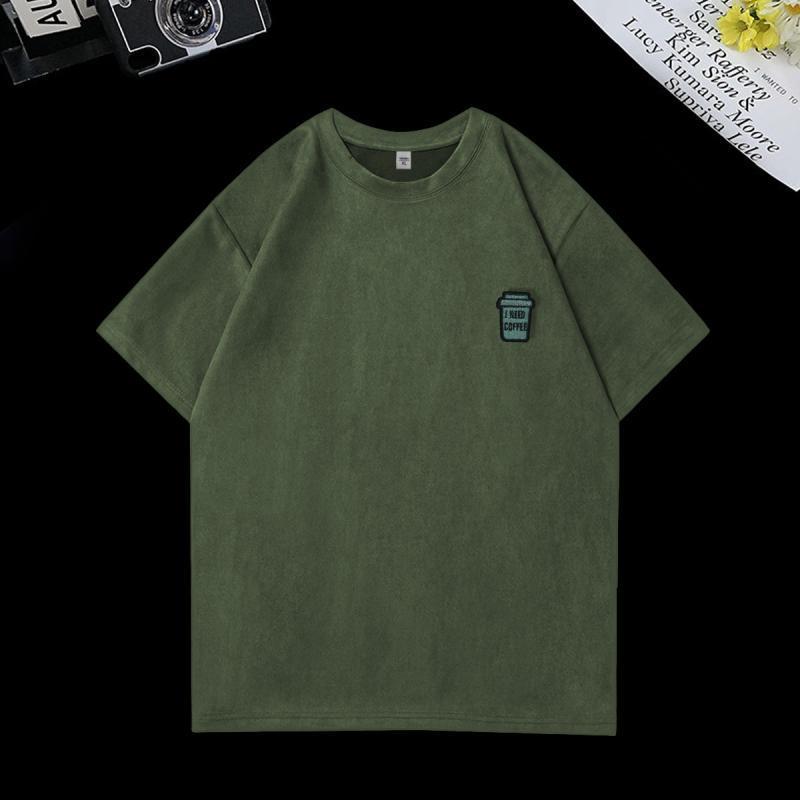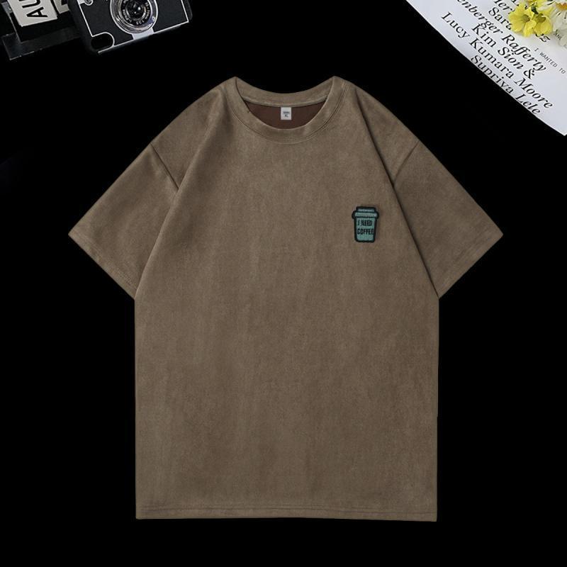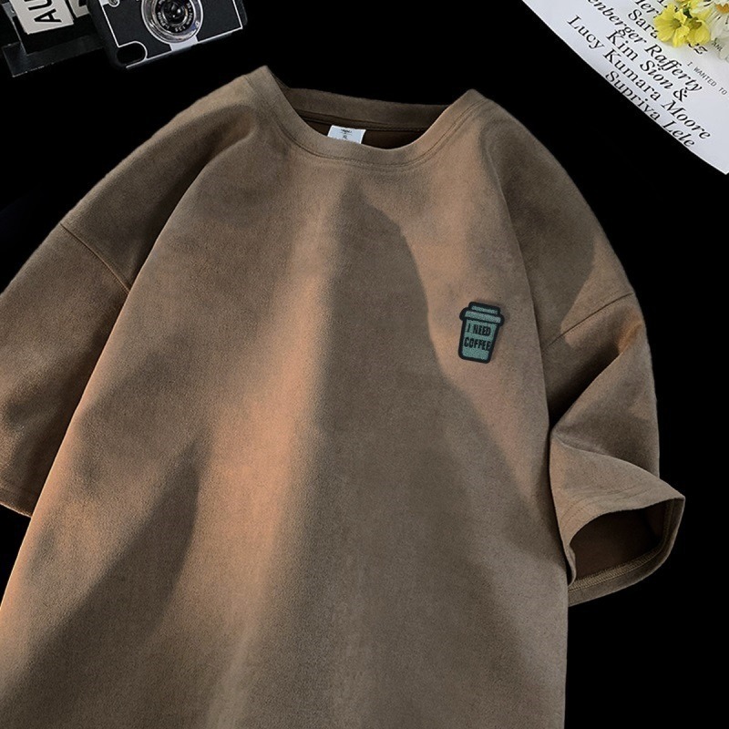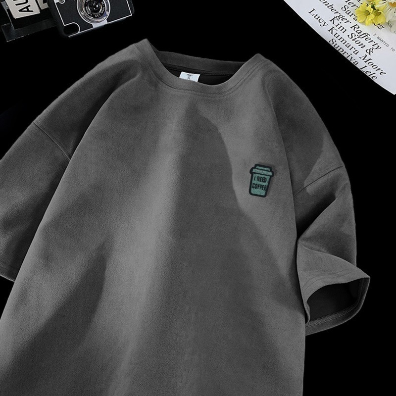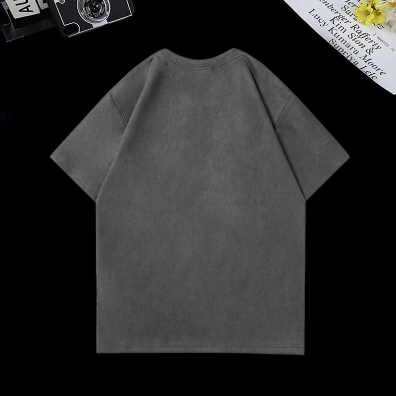 스웨이드 반팔 티셔츠 남성 여름 새로운 디자인 센스 니쉬 트렌디 브랜드 플러스 사이즈 캐주얼 헤비 반소매 티셔츠스토어 가기