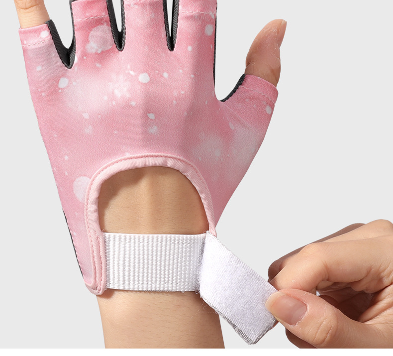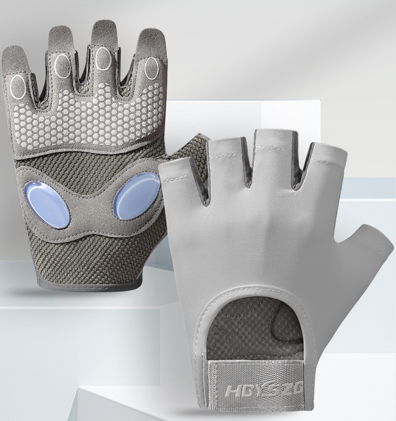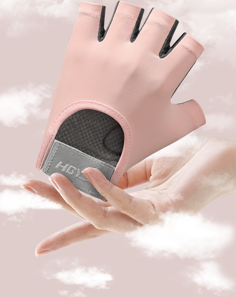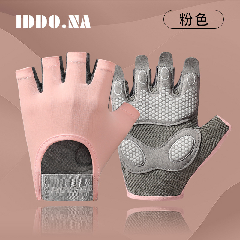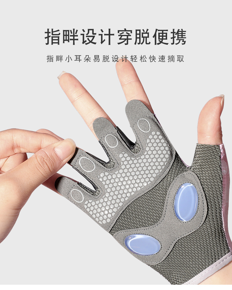 스포츠 및 피트니스 하프 핑거 장갑 여성의 두꺼운 팜 패드 실리콘 충격 흡수 팜 보호 장비 요가 통기성 착용 방지 로프 건너 뛰기
