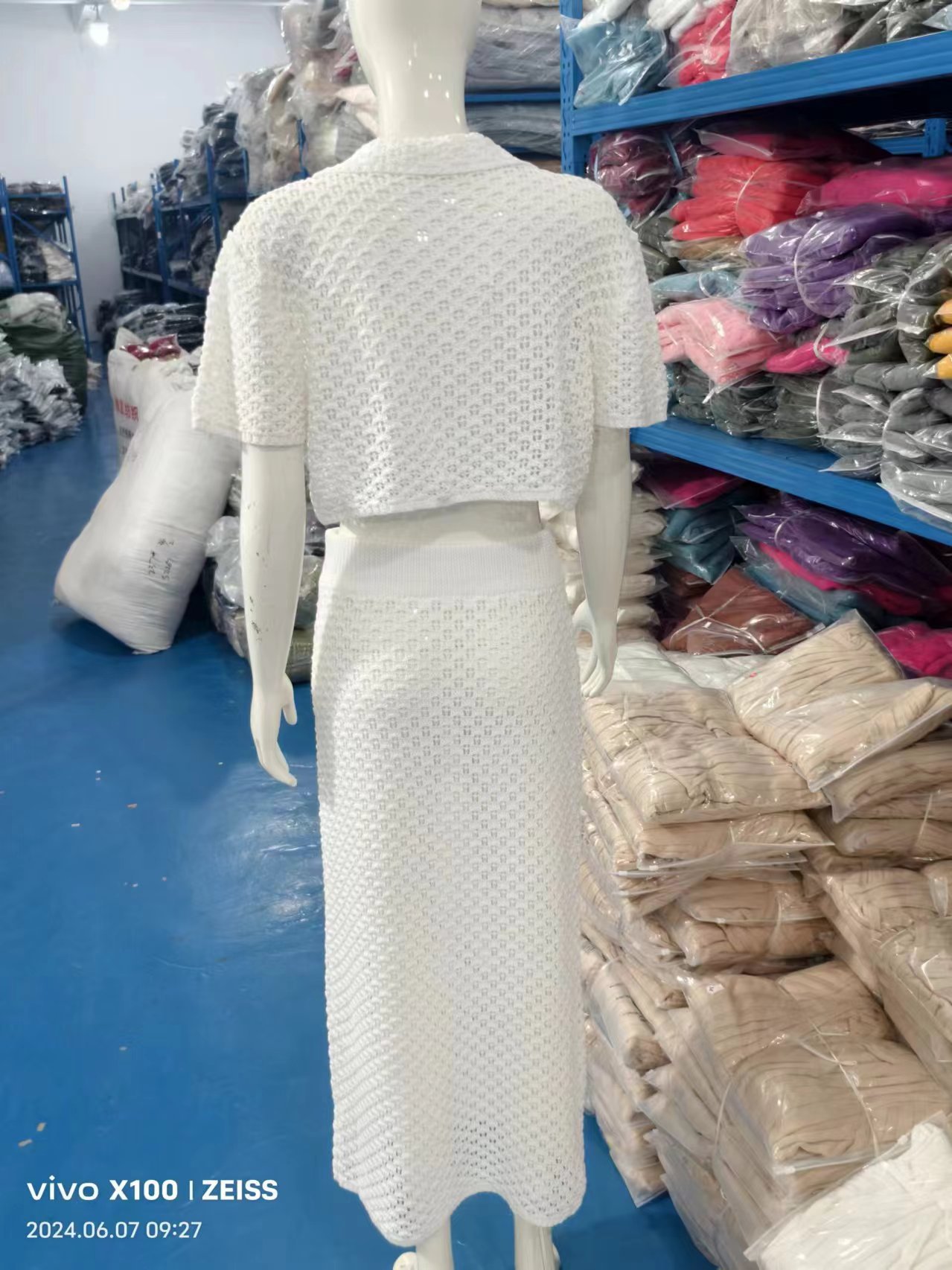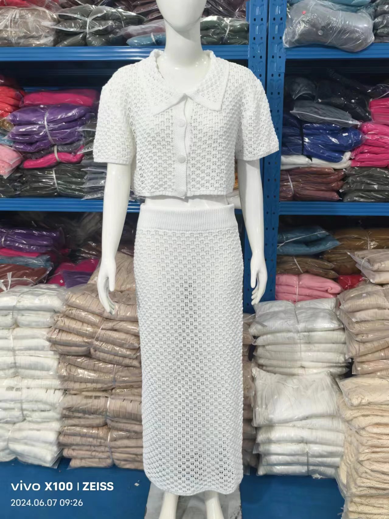 2024 새로운 니트 크로 셰 원피스 멀티 컬러 카디건 버클 스커트 올 매치 세트