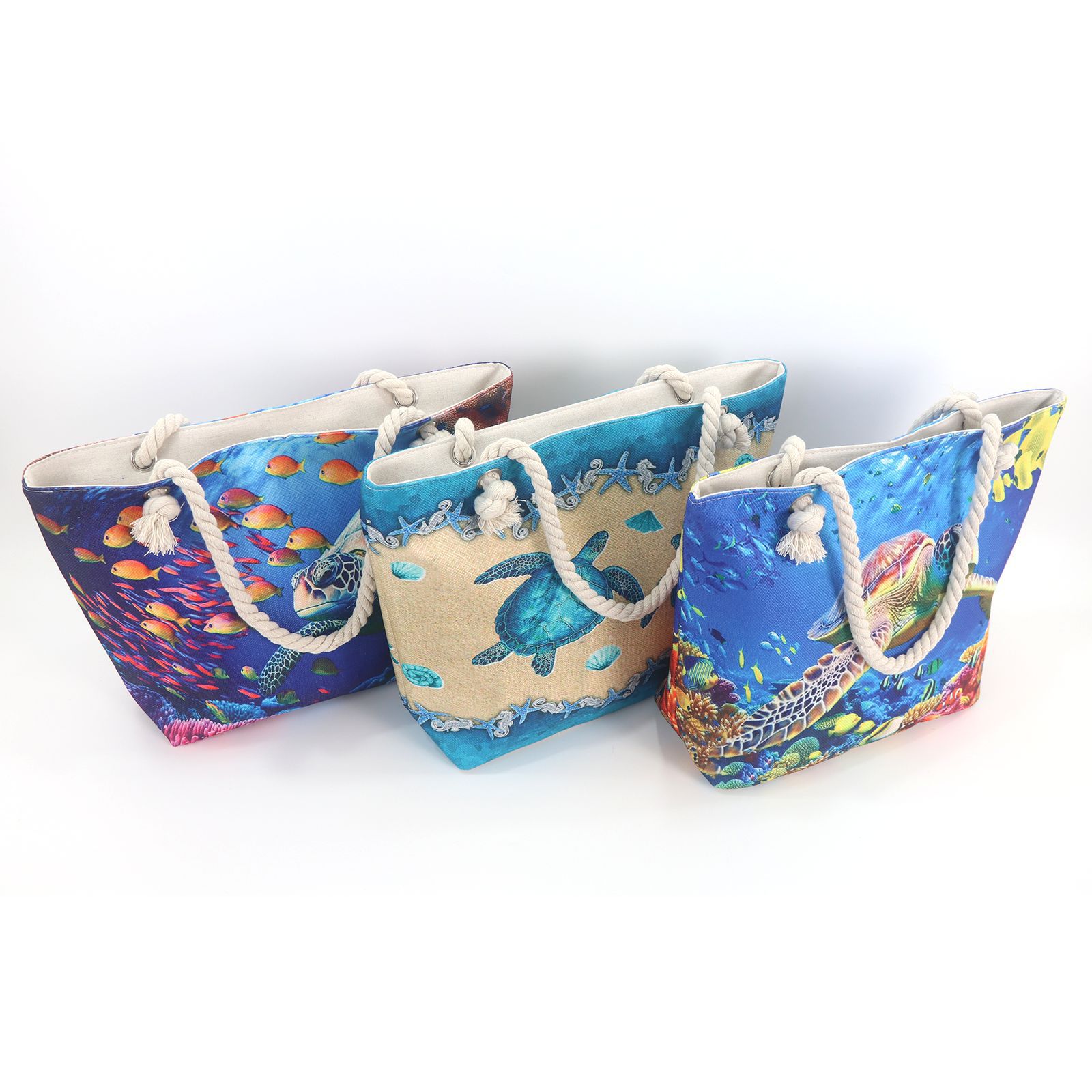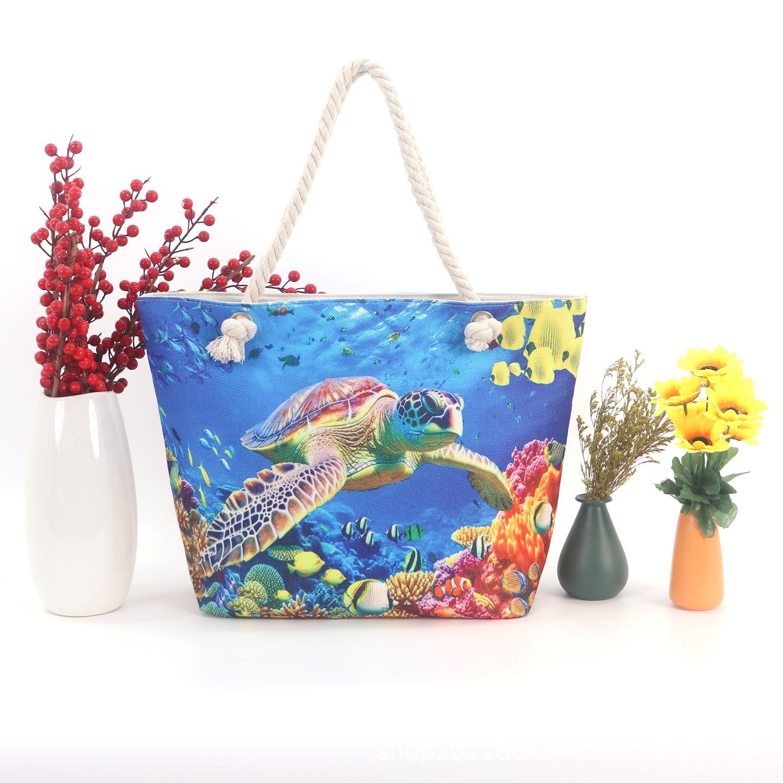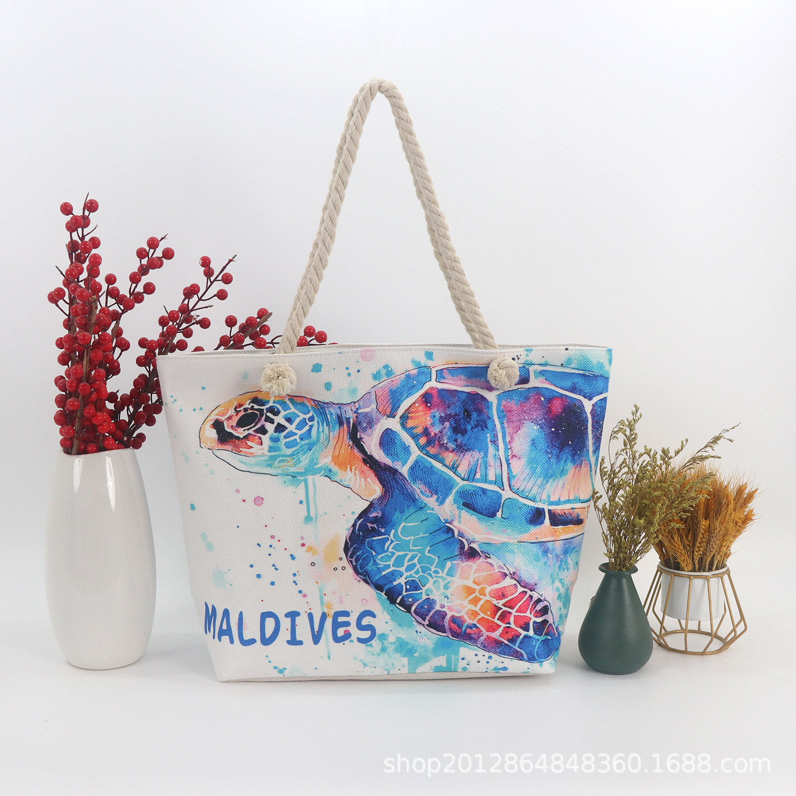 해양생물 프린트 숄더백 여성용 대용량 휴대용 캔버스백 레이지 스타일 문학적 해변 가방 해양풍스토어 가기