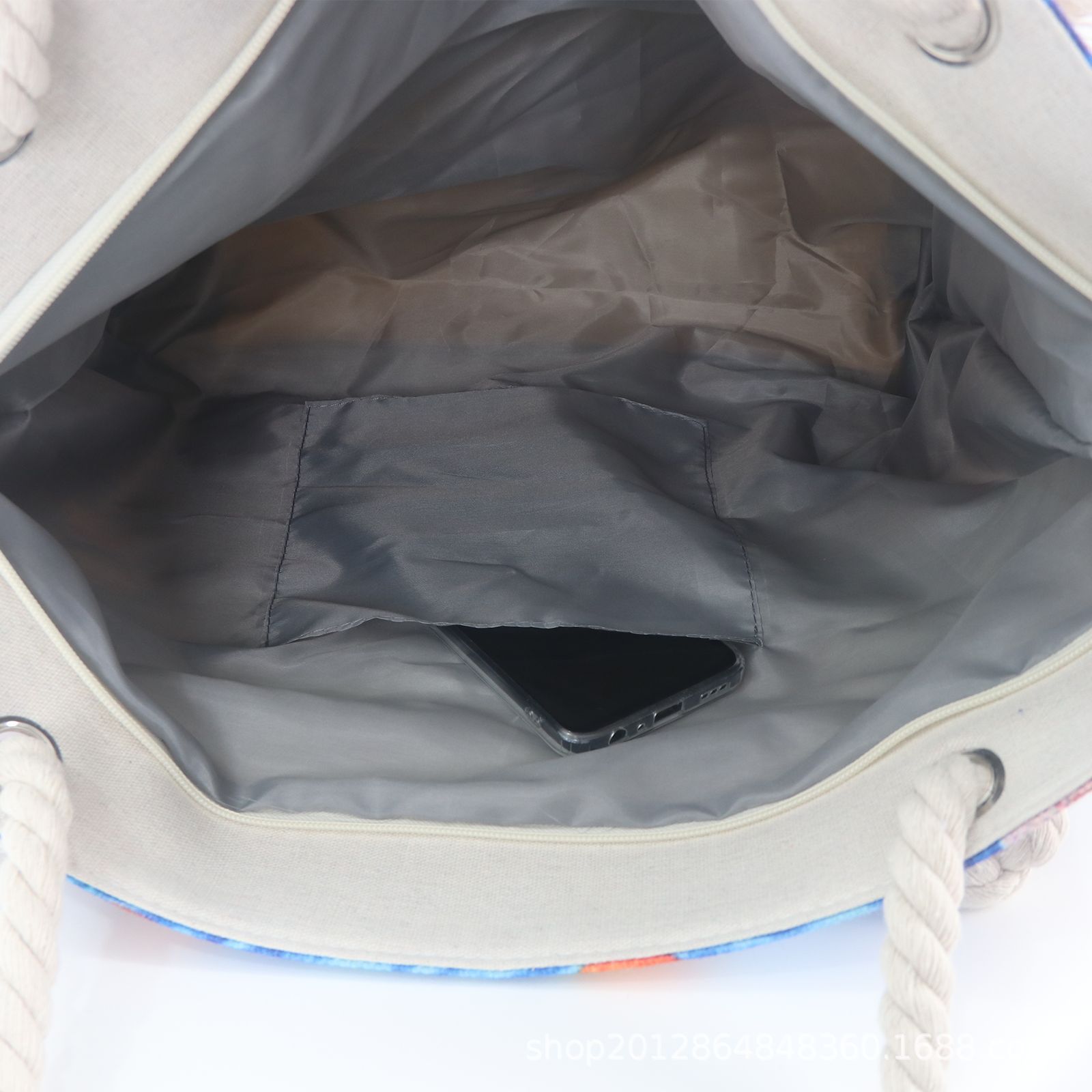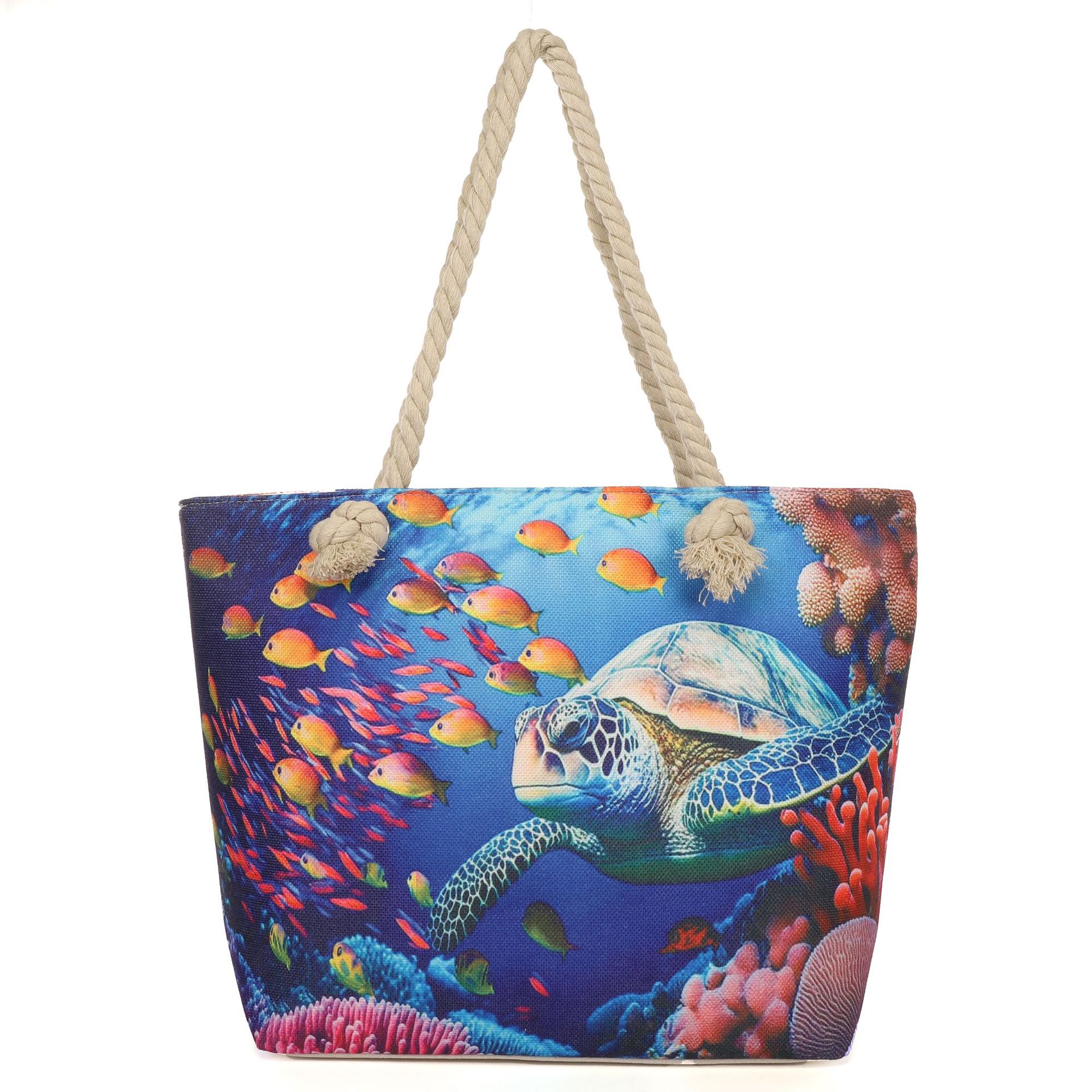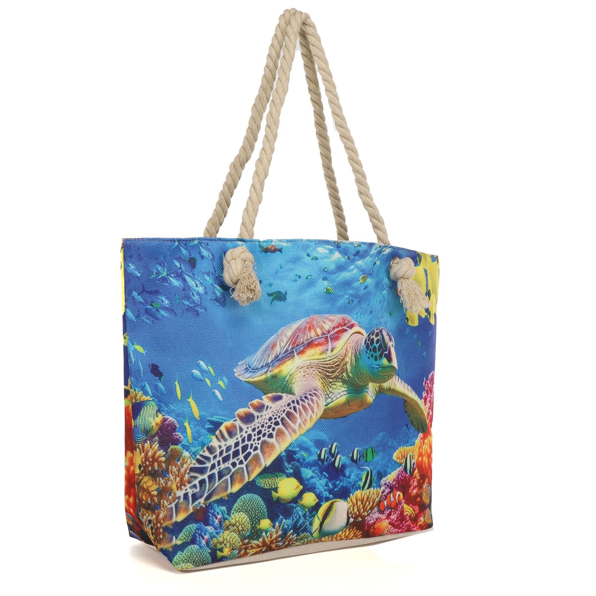 해양생물 프린트 숄더백 여성용 대용량 휴대용 캔버스백 레이지 스타일 문학적 해변 가방 해양풍스토어 가기