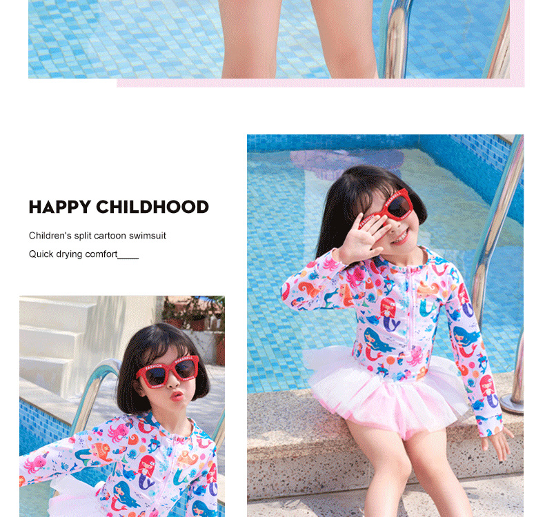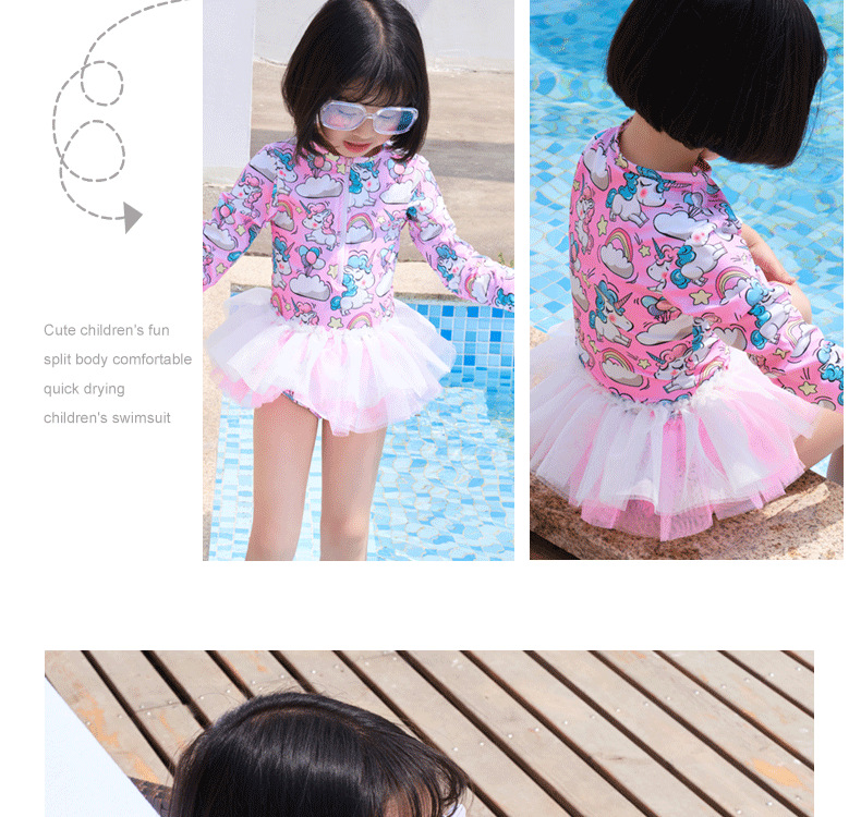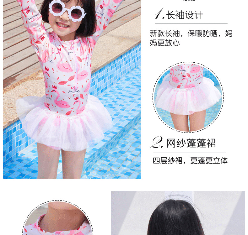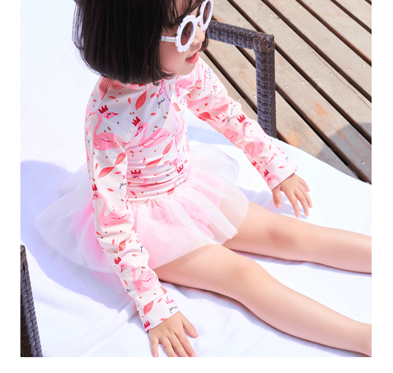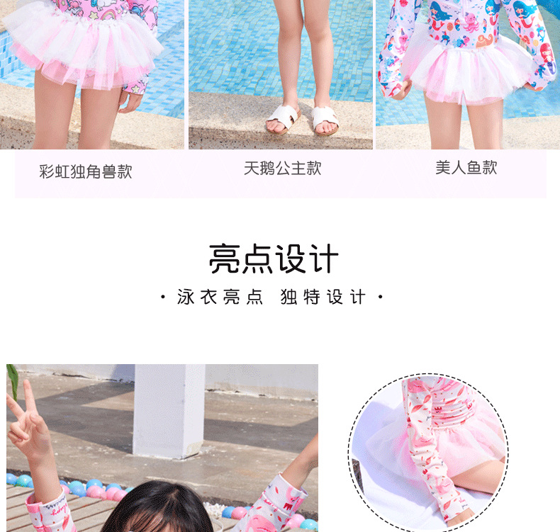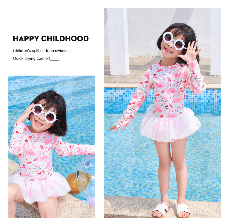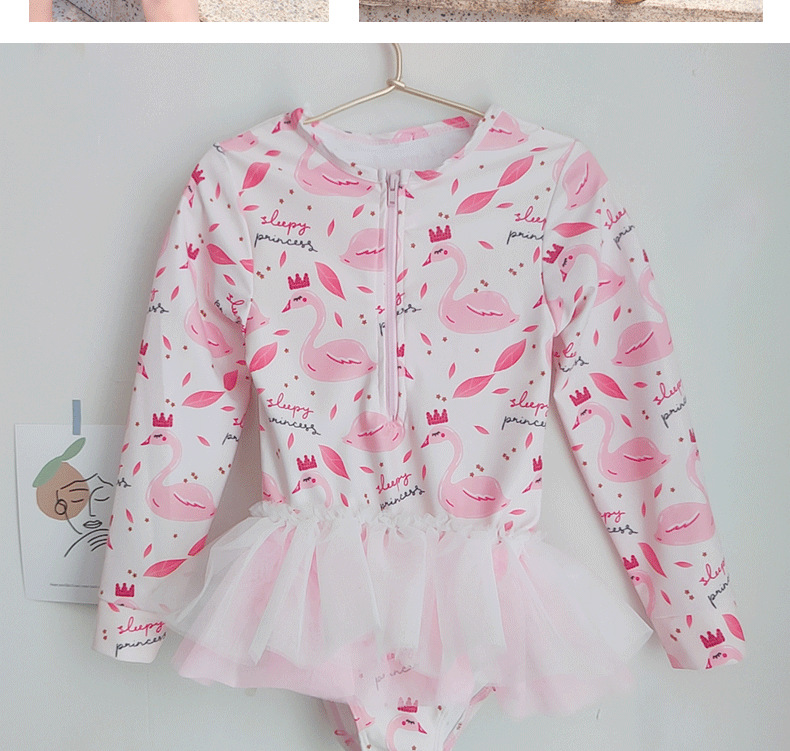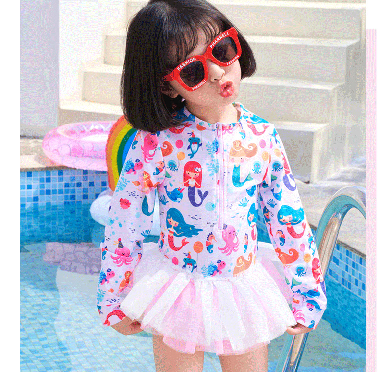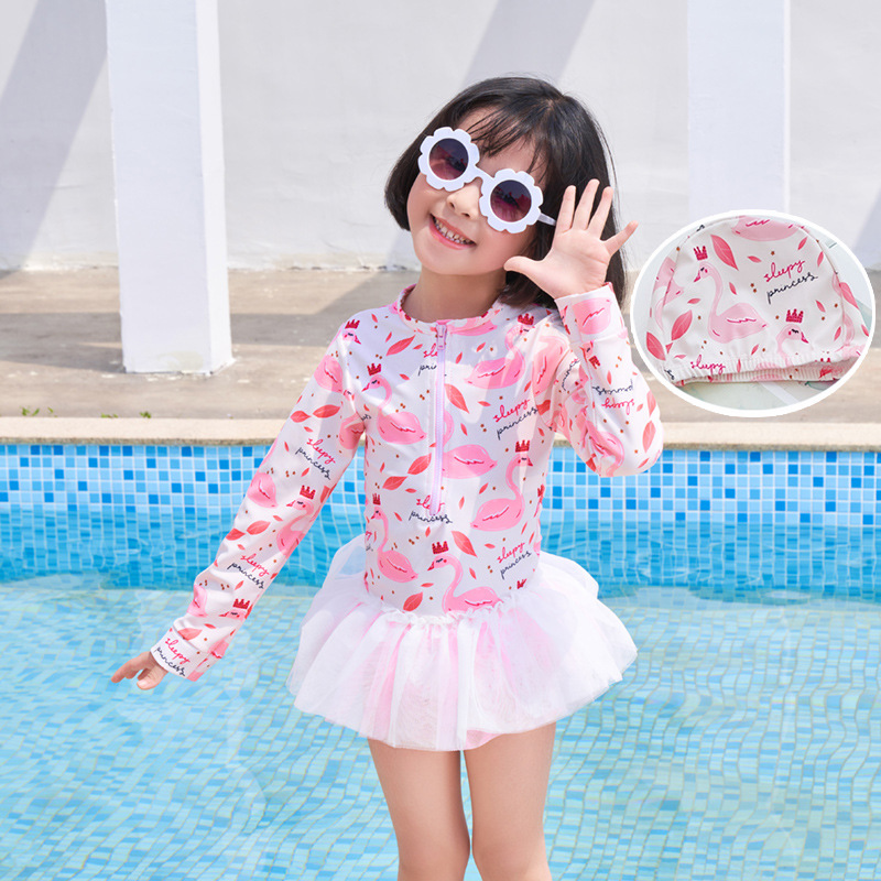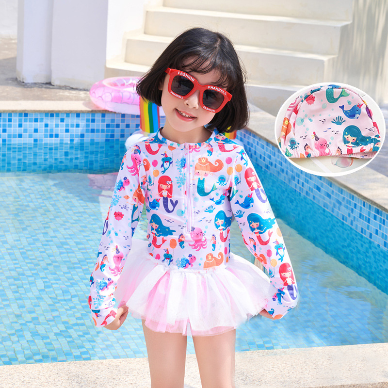 어린이 수영복 여자 아기 원피스 레이스 베일 원피스 공주 중소 어린이 수영복 긴팔 여자 선 스크린 수영복