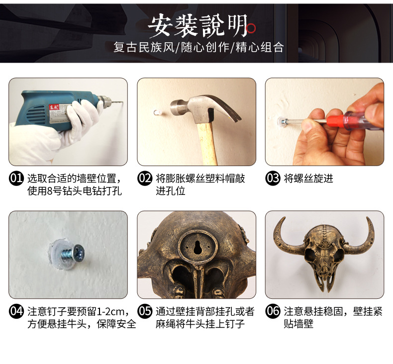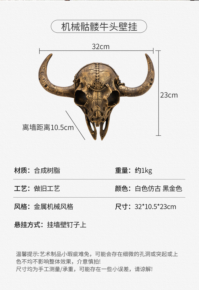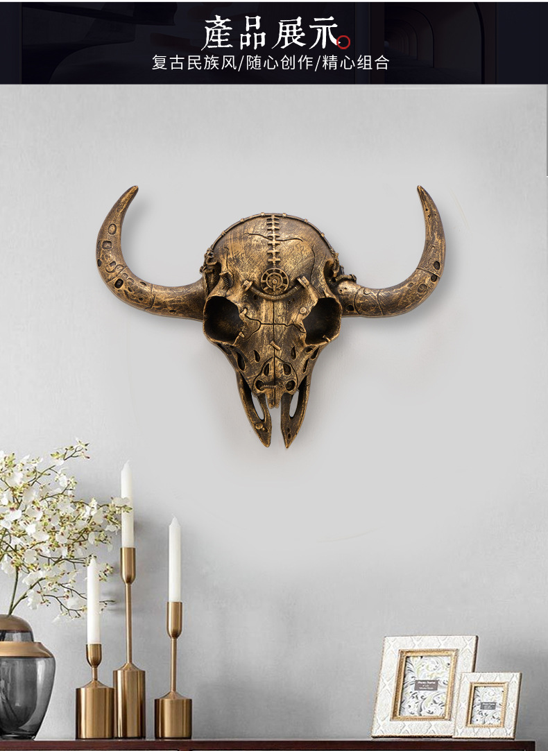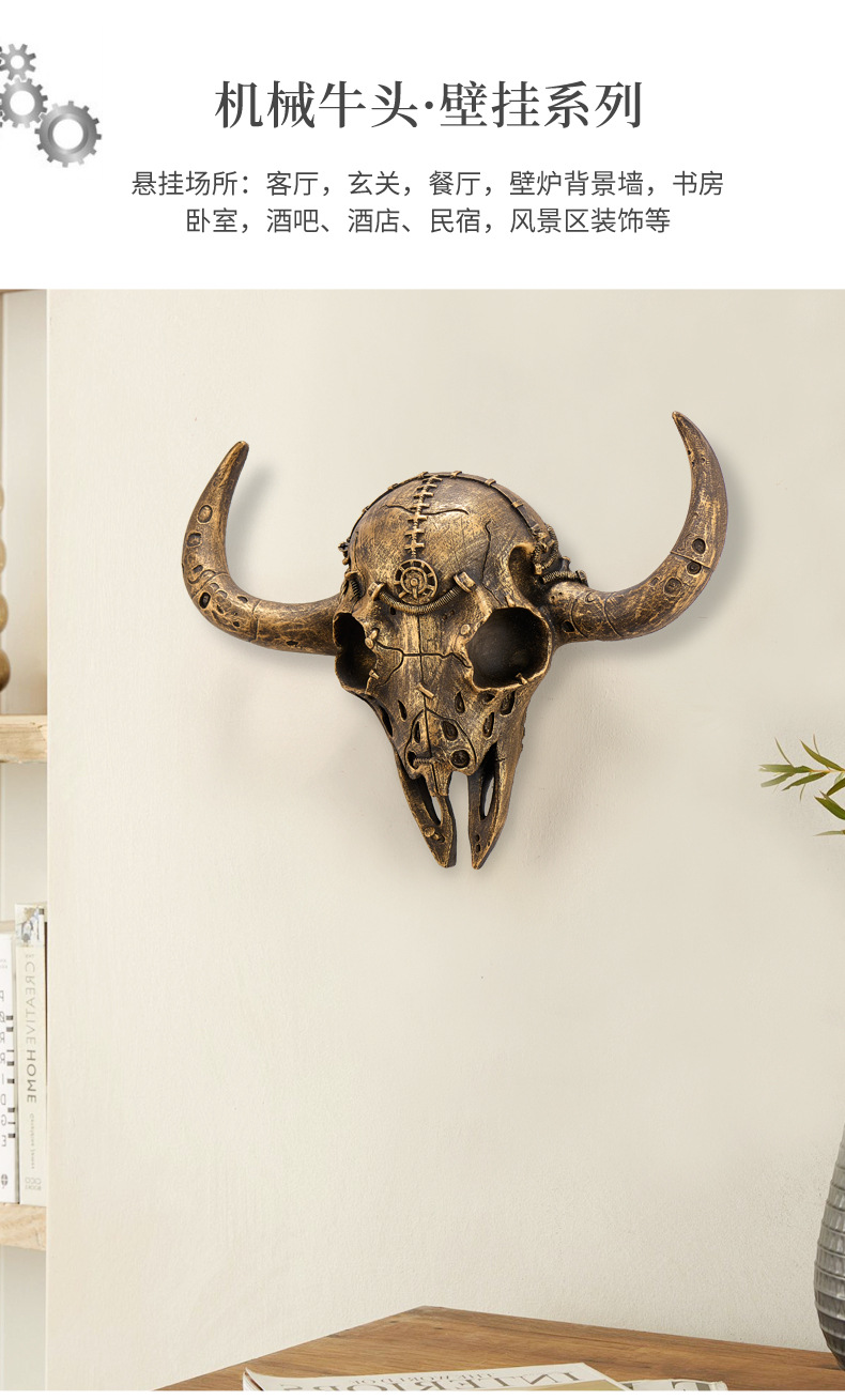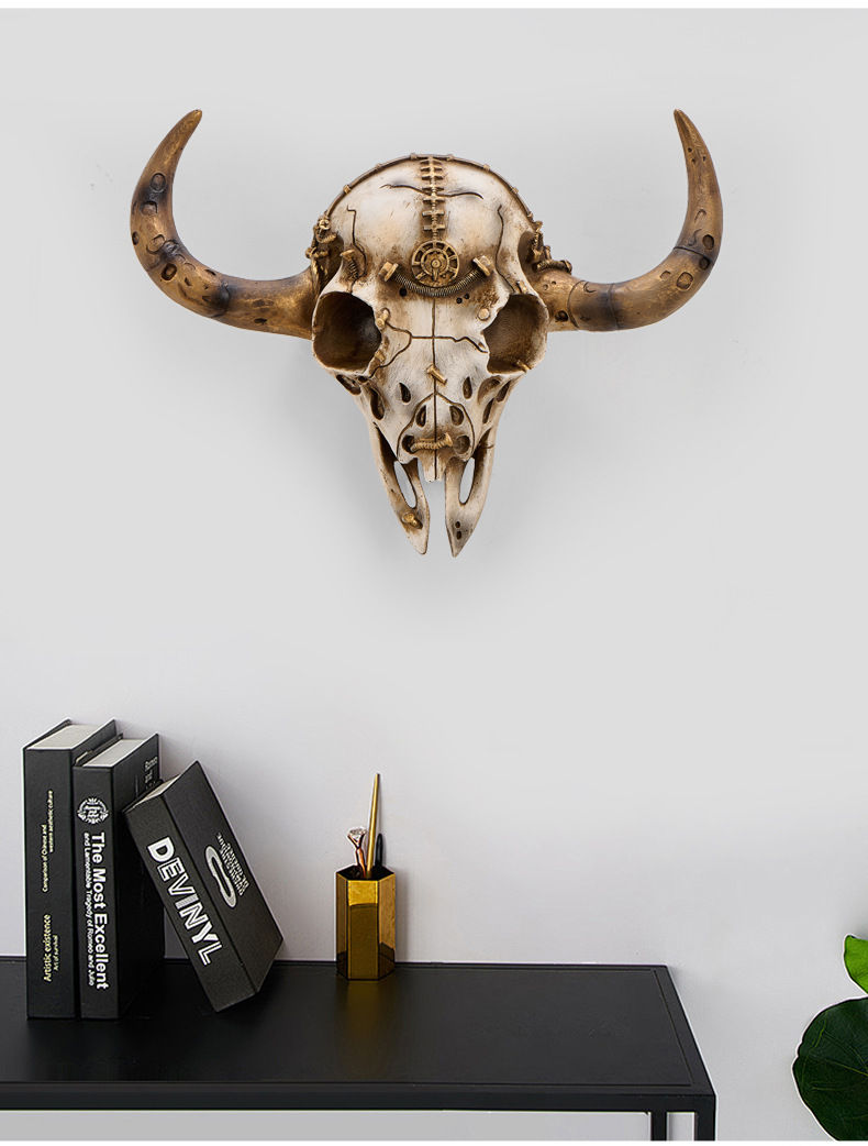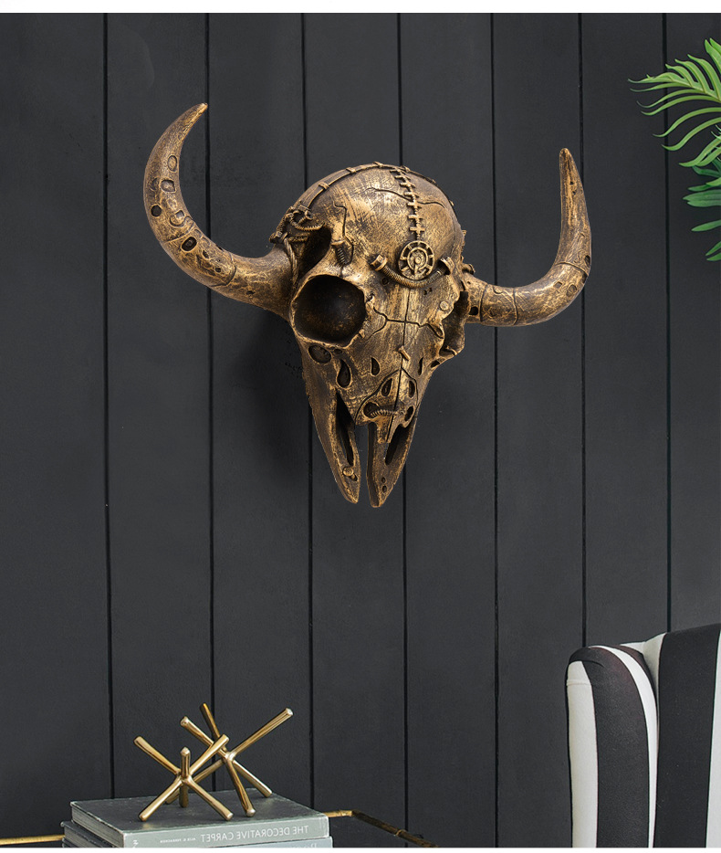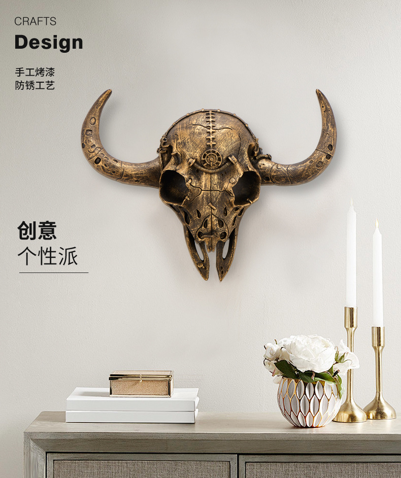국경 간 산업 스타일 해골 황소 머리 벽걸이 포스트 모던 크리 에이 티브 벽 장식 펜던트 크툴루 수지 공예품스토어 가기