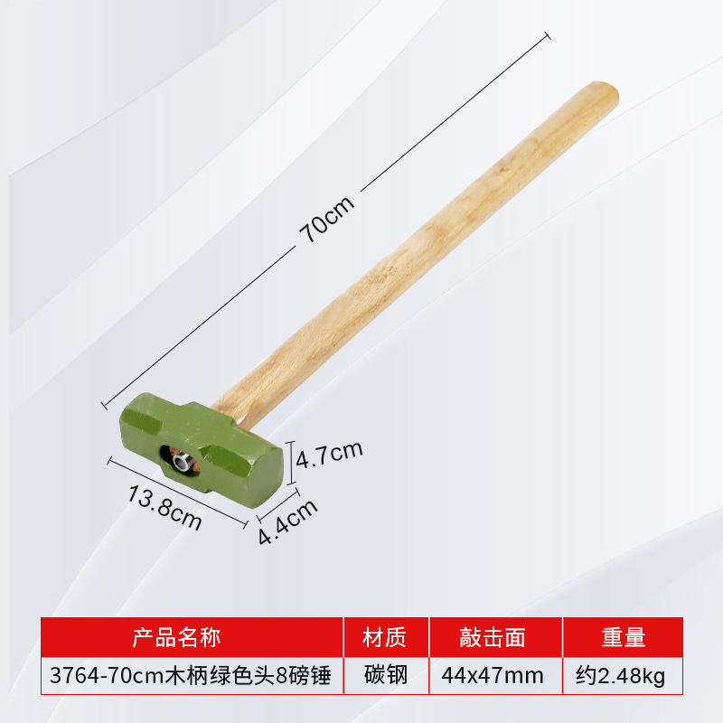 • 3764-70cm 나무 손잡이 녹색 머리 8 파운드 해머