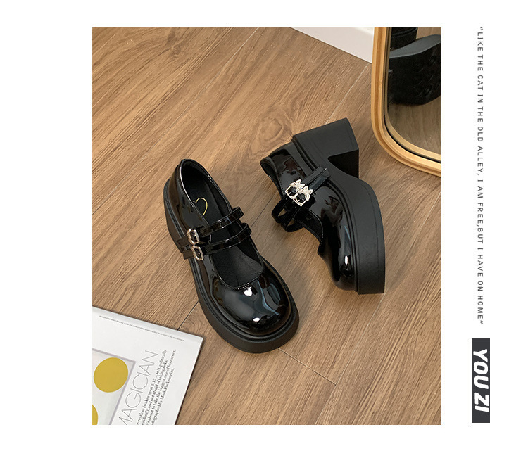 프랑스 스타일 메리 제인 작은 가죽 신발 여성 여름 2024 새로운 올매치 한 단어 버클 스트랩 두꺼운 바닥 두꺼운 힐 하이힐 싱글 레이어 신발