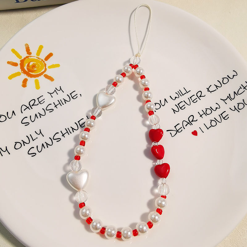 • [빨간색과 흰색 색상 일치 사랑 구슬] 끈