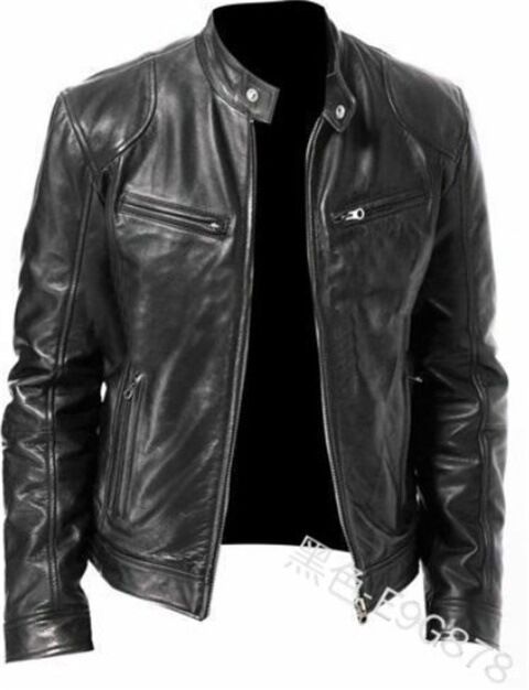 봄가을 비즈니스 신사용 따뜻한 지퍼 가죽 자켓, 포켓 장식 PU 가죽 코트, 스탠드 칼라 슬림핏 지퍼 가죽 자켓스토어 가기