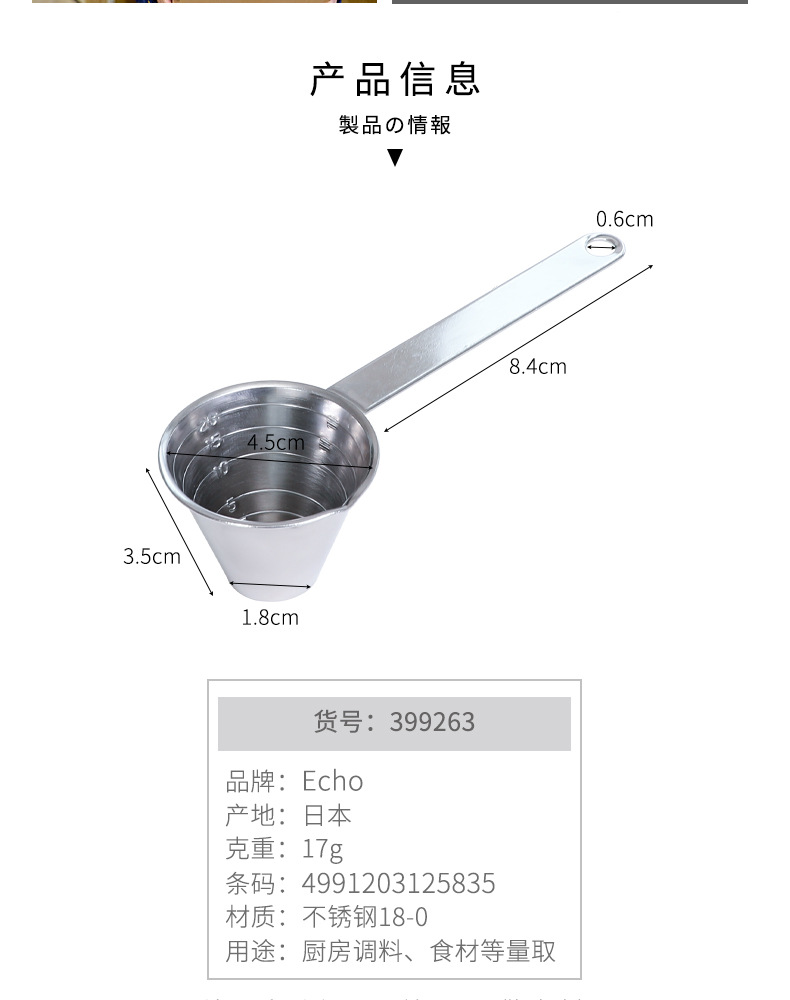 일본 수입 측정 숟가락 스테인레스 스틸 스케일 측정 컵 조미료 스푼 베이킹 양적 게이지 요리 스케일 숟가락 가볍고 내구성