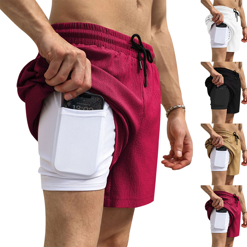 2025 크로스 보더 아메리칸 여름 남성 캐주얼 스포츠 반바지 남성 7부 바지 속건성 안감 더블 레이어 우븐 반바지스토어 가기