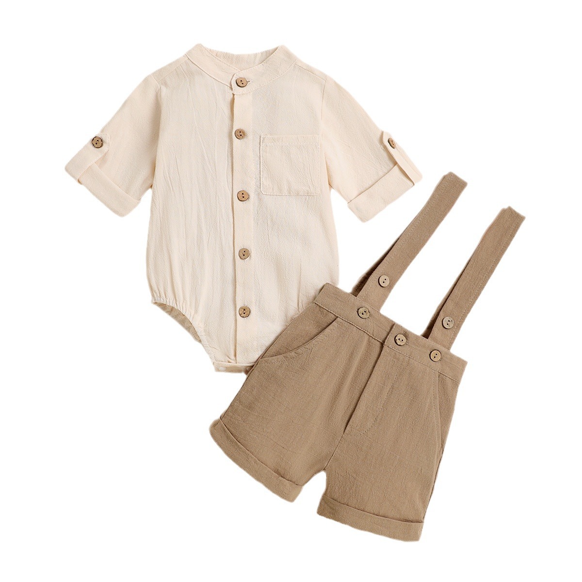 국경 간 소년의 여름 반소매 셔츠 세트 면 카키 투피스 세트