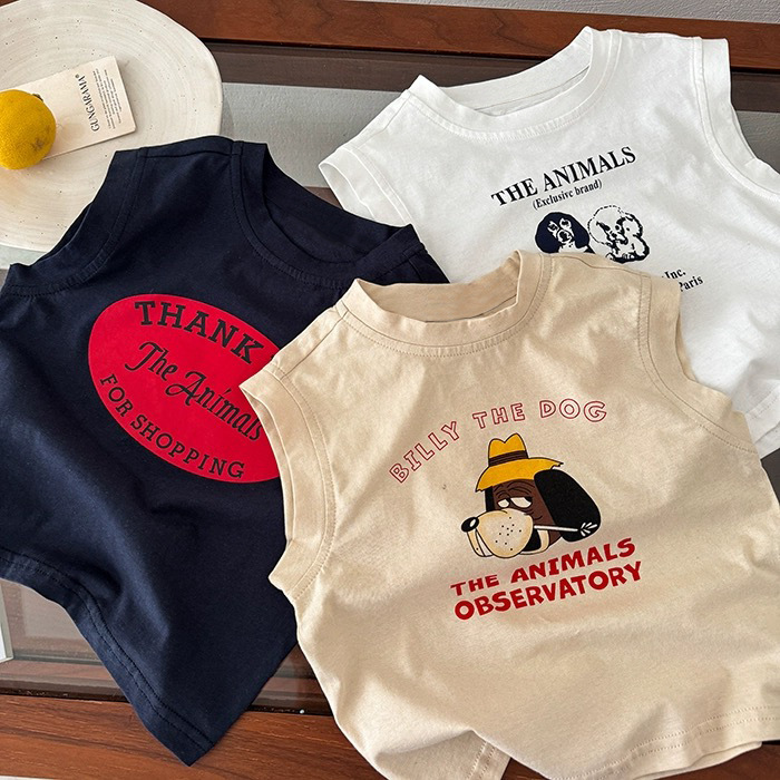 면 작은 조끼 어린이 여름 새로운 서양 스타일 탑 만화 인쇄 아기 아이들의 민소매 티셔츠스토어 가기