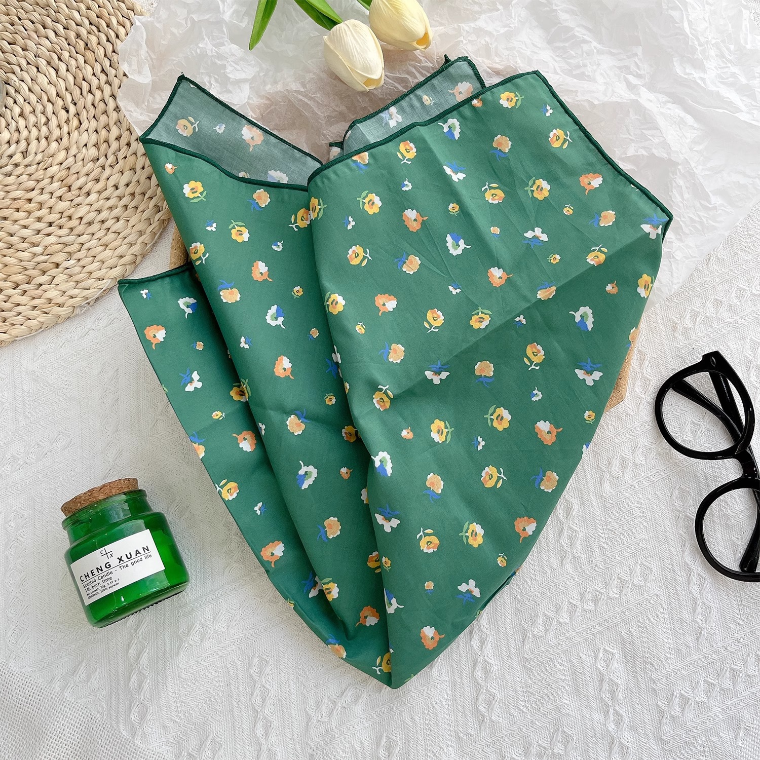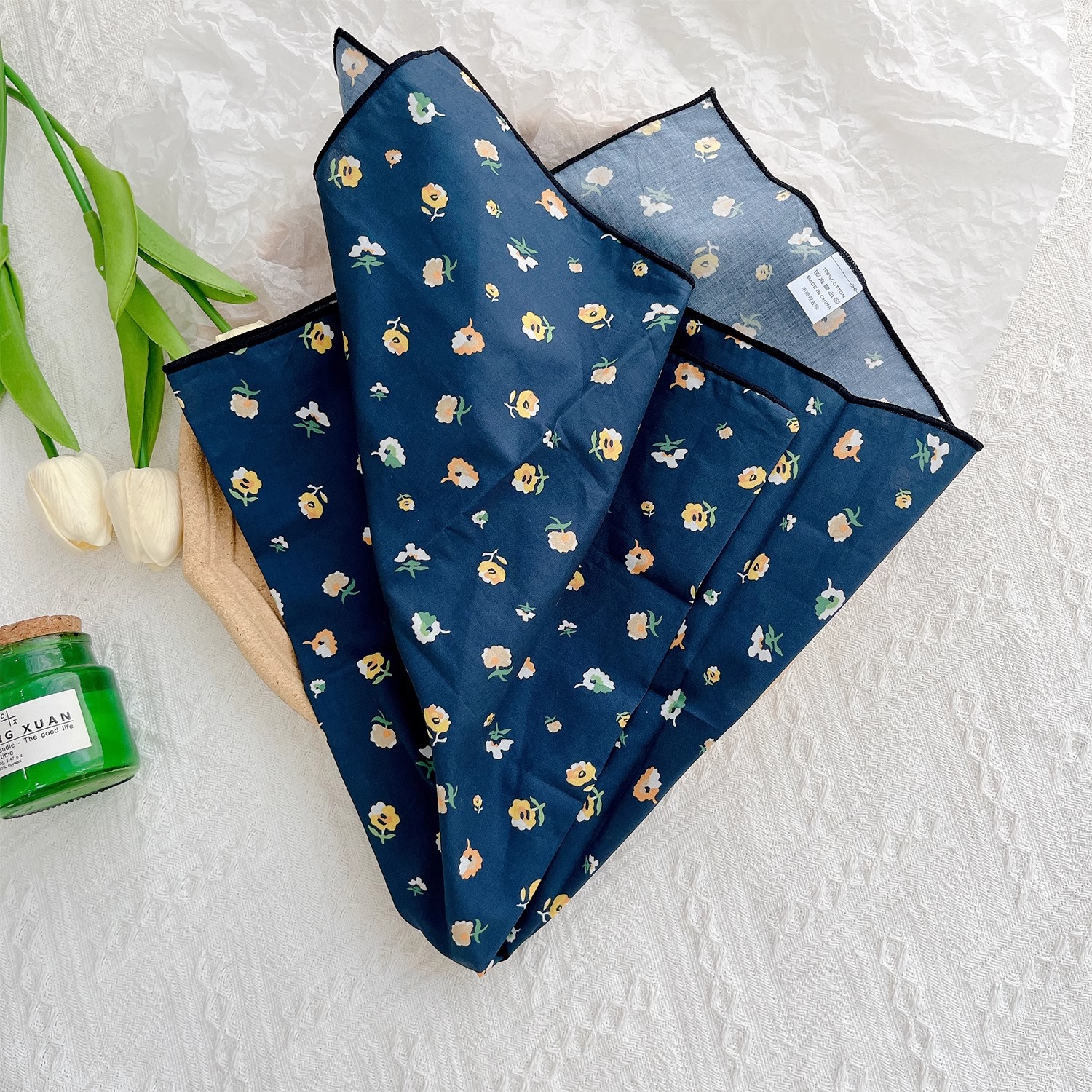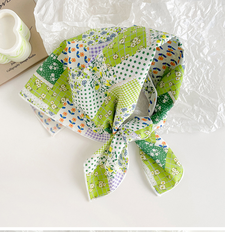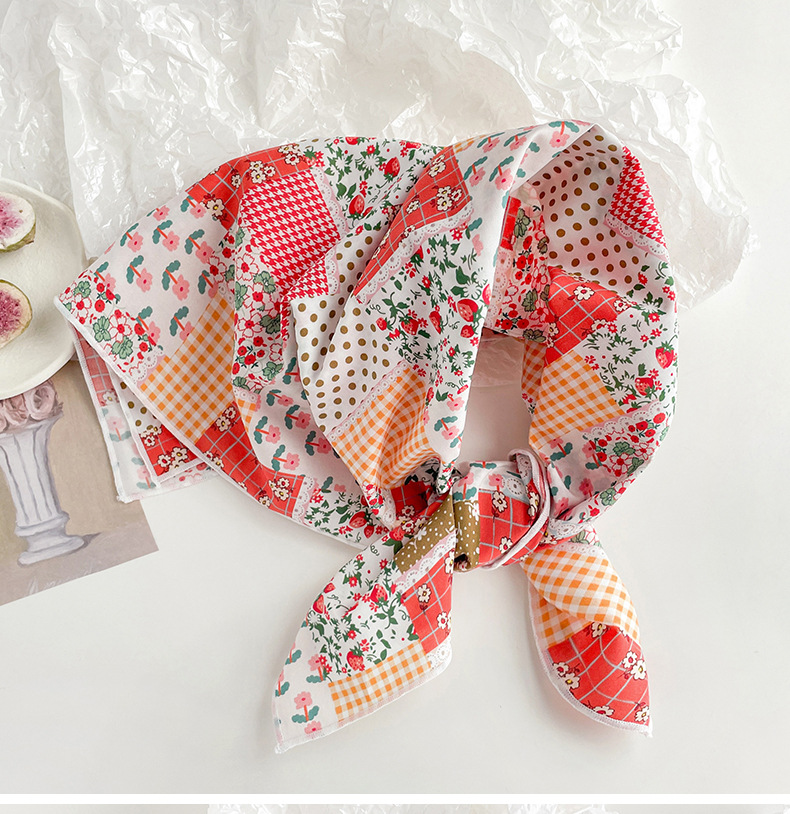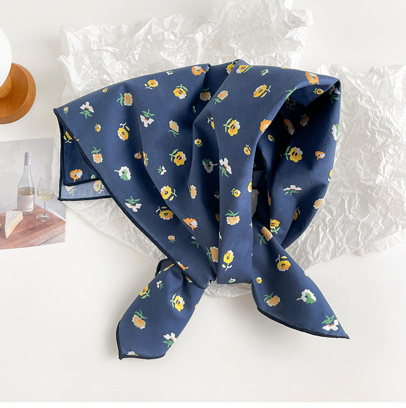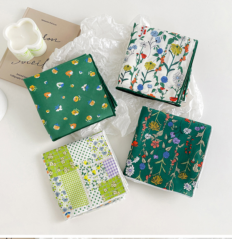 작은 꽃무늬 한국 스타일 봄 여름 신상 순면 작은 사각 스카프, 여성용 머리 스카프, 목 스카프, 얇은 스카프