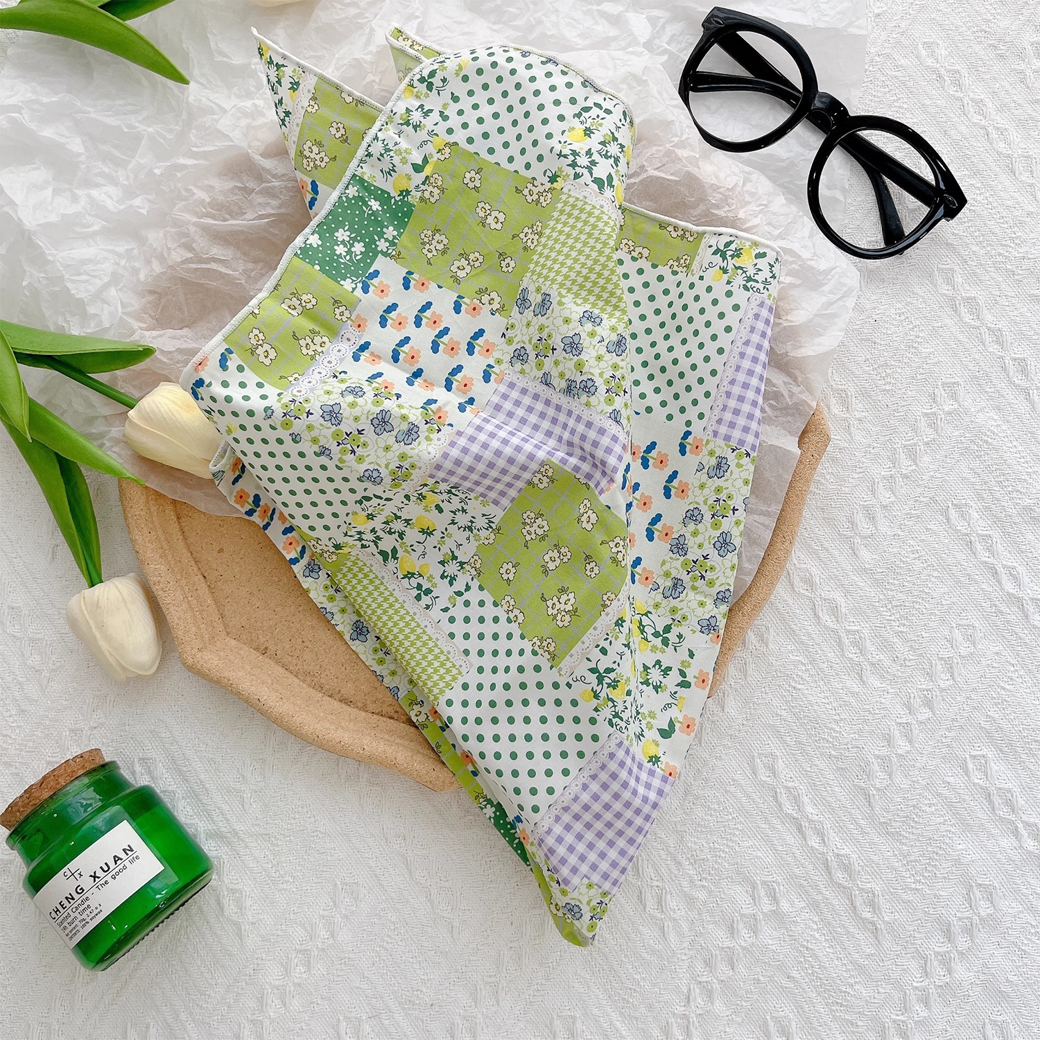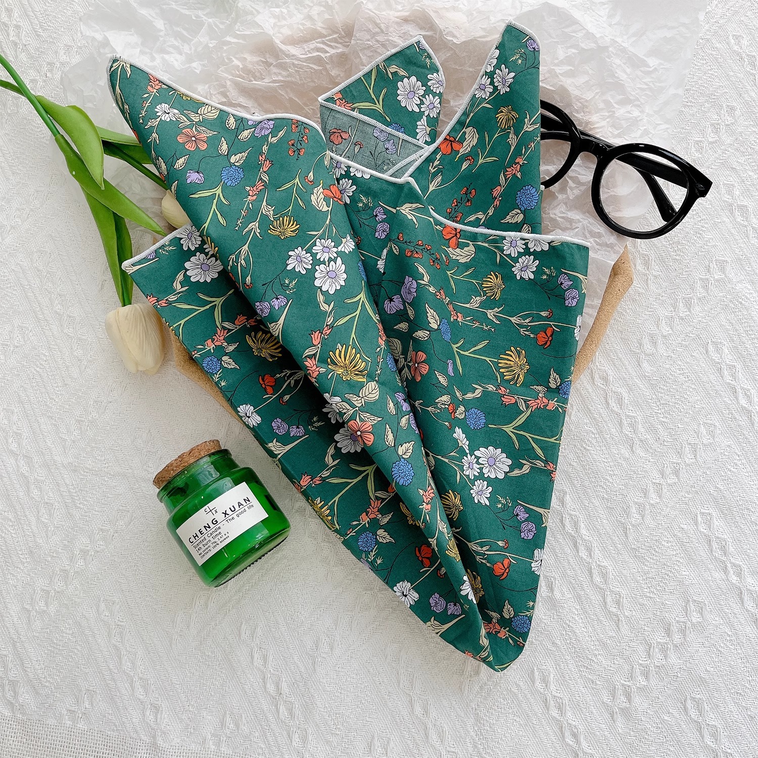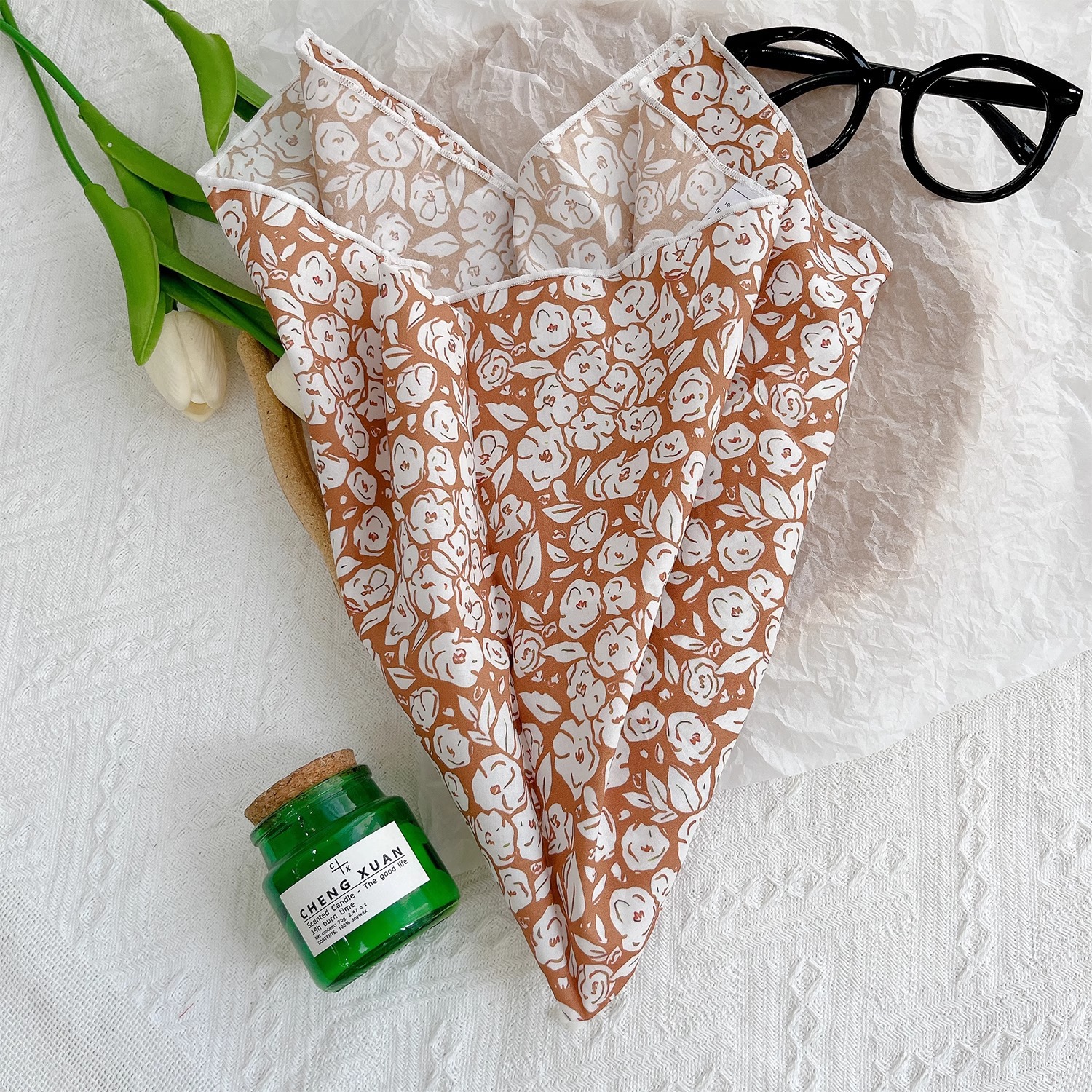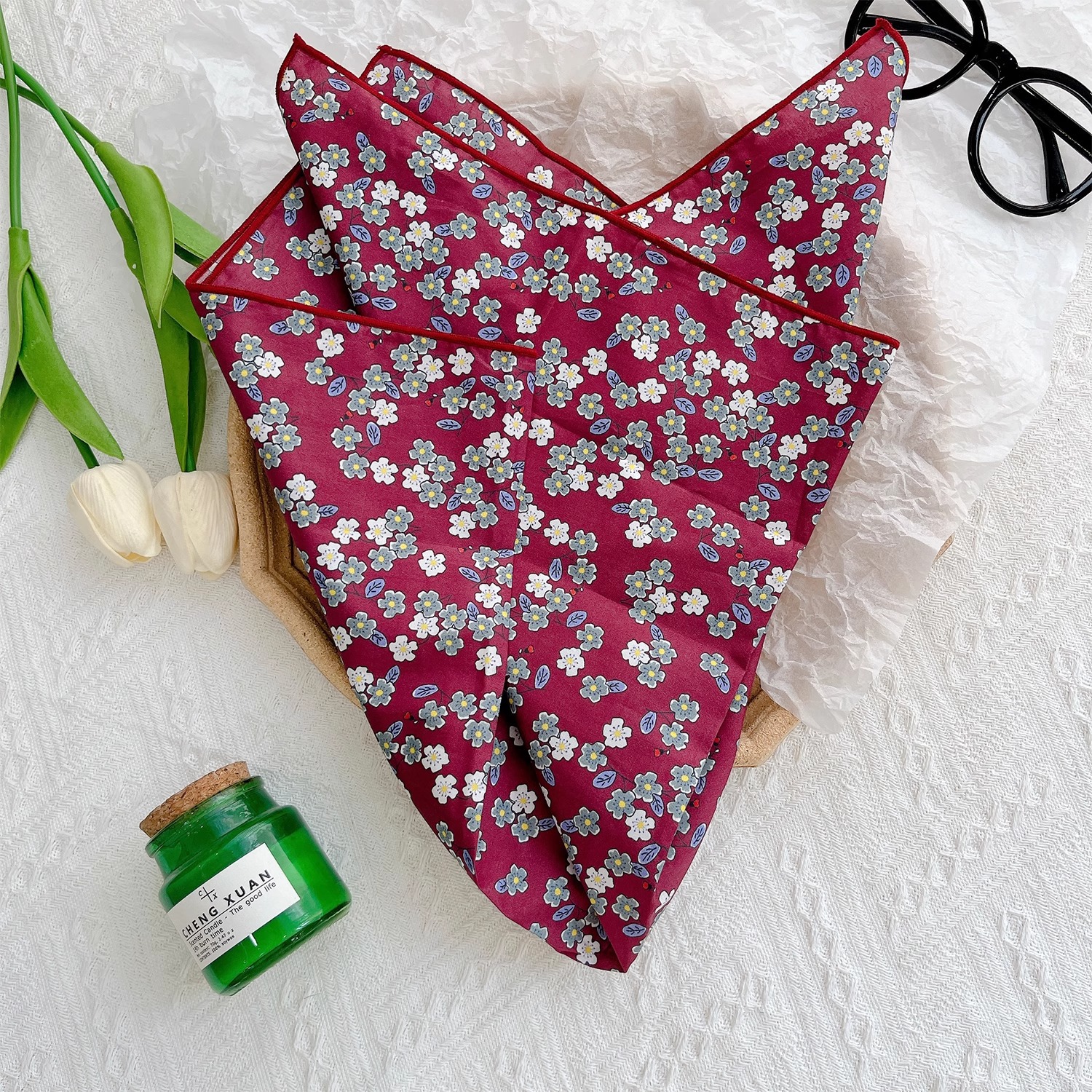 작은 꽃무늬 한국 스타일 봄 여름 신상 순면 작은 사각 스카프, 여성용 머리 스카프, 목 스카프, 얇은 스카프